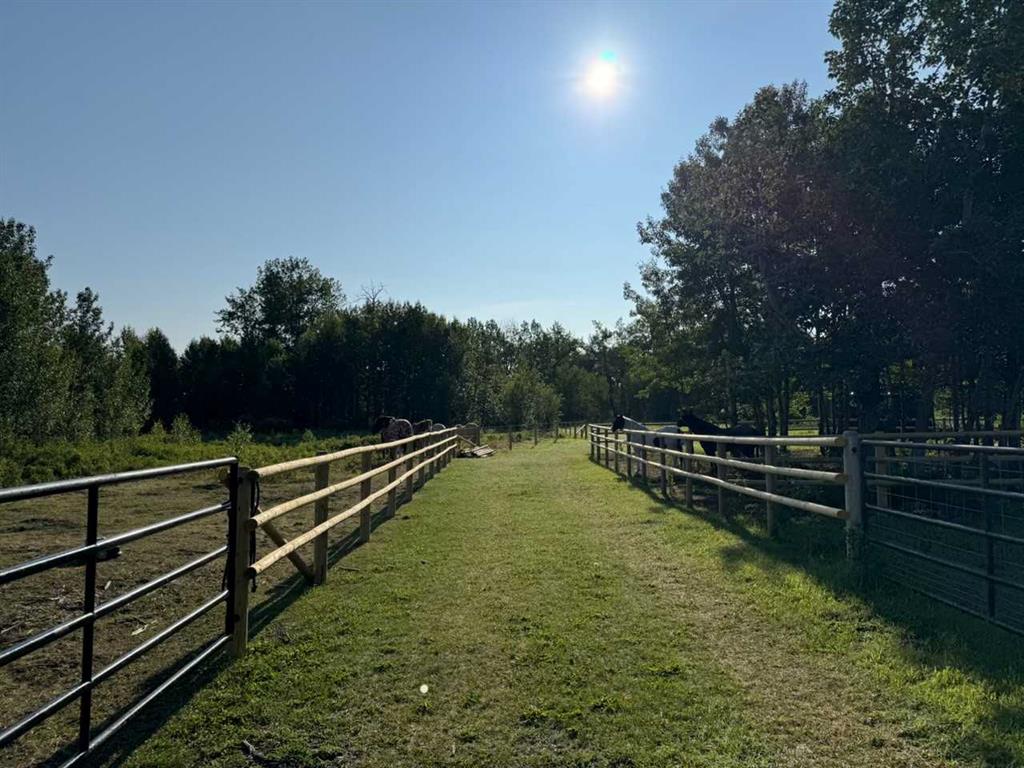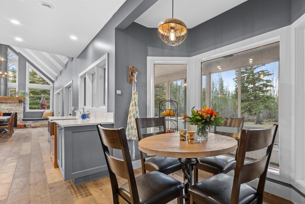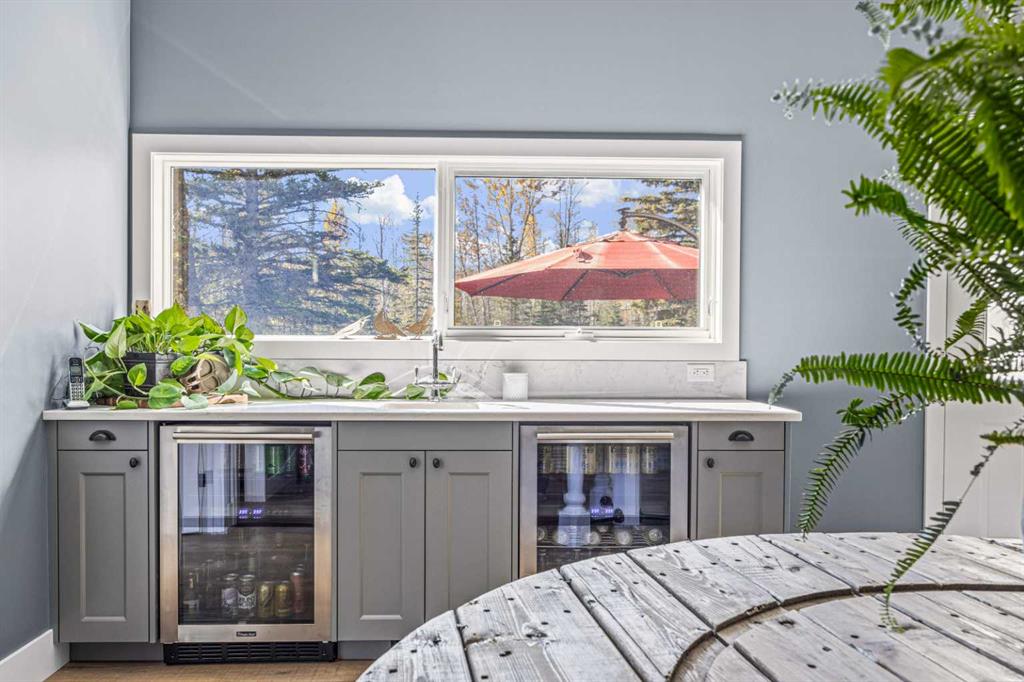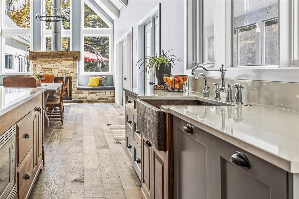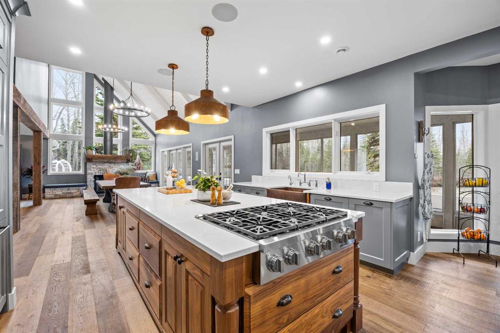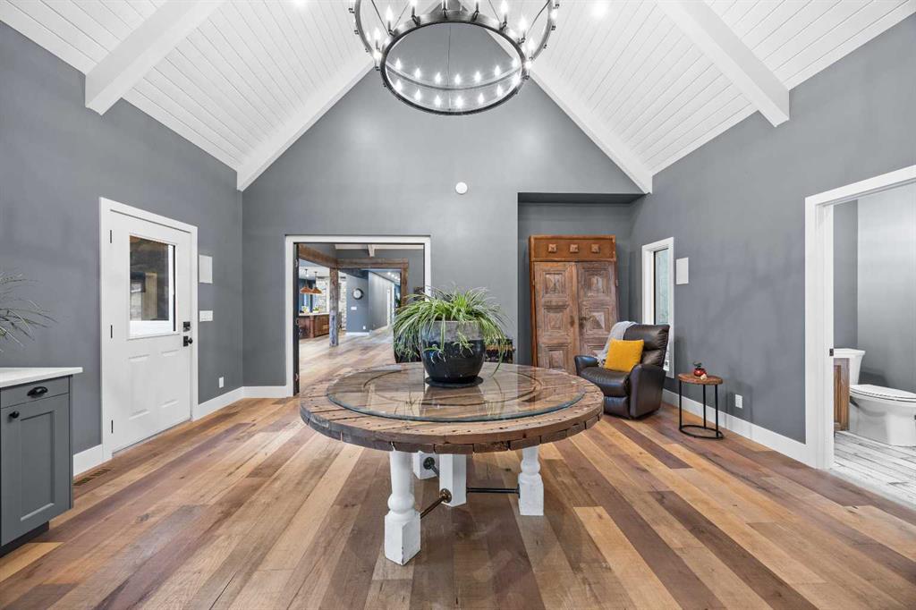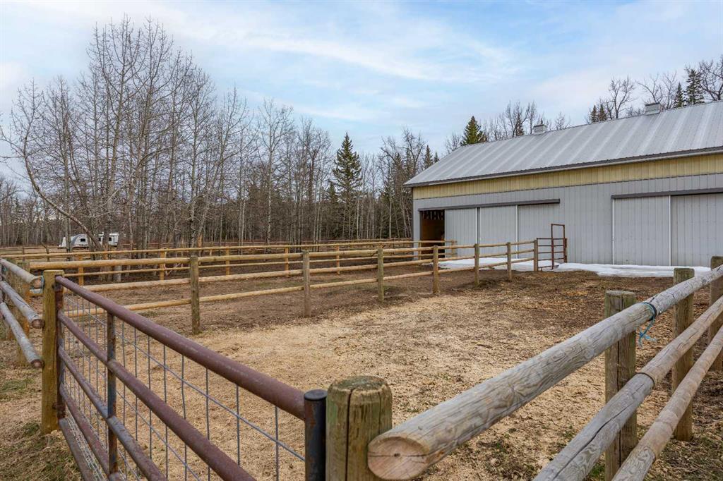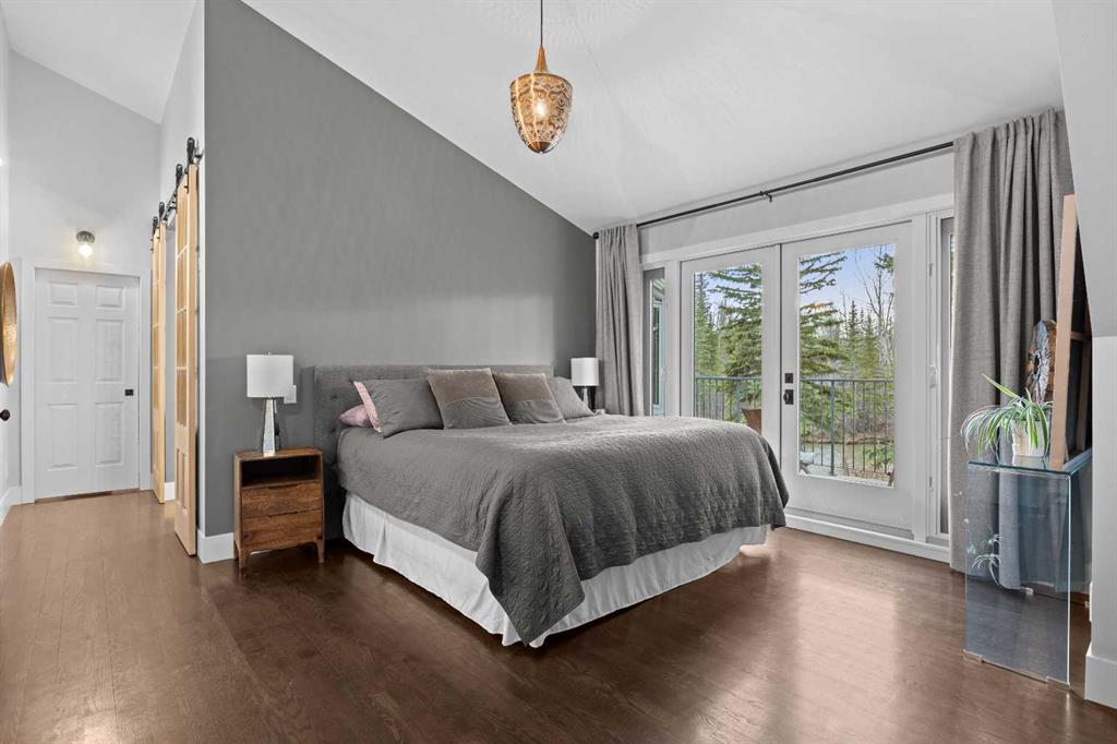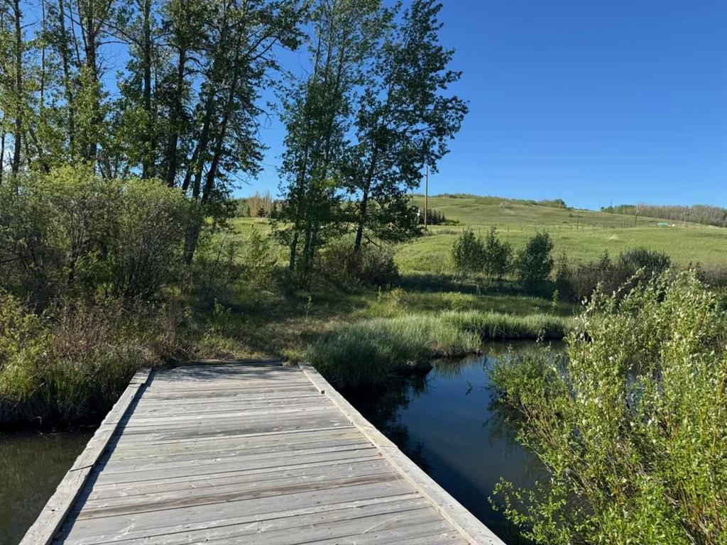 This exquisite home, extensively renovated in 2022, is situated on almost 22 acres of scenic, treed land with Three Point Creek beautifully flowing throughout the property. This sprawling home offers approximately 2,919 sq. ft. on the main level and an additional 1,440 sq. ft. on the upper level, with a total of five bedrooms and six bathrooms. The quality craftsmanship of this gorgeous modern farmhouse is evident from the moment you enter. Imported reclaimed wood beams complement the wide plank hardwood floors, vaulted white wood ceilings, and custom millwork. The open concept floor plan basks in natural light and features spacious areas for entertaining friends and family, with two wood burning fireplaces. Every culinary enthusiast’s dream, the incredible kitchen leaves nothing to be desired with 2 full size Bosch refrigerator/freezers, Dacor dual wall ovens, Dacor 6-burner gas range, Miele dishwasher, copper farmhouse sink and a large butler’s pantry with yet another full size Bosch refrigerator/freezer. Through the double doors to the South Wing is an impressive vaulted family room, full bathroom, wet bar, and 2 bedrooms. This space is perfect for multi-generational living. Completing the main floor is a quiet den with an elevator to the Primary Suite above, another full bathroom with shower off the mudroom, powder room, dry bar, main floor laundry and a spacious, screened back porch. On the upper level, the tranquil primary bedroom overlooks the creek with a private upper deck, and features a luxurious ensuite with claw foot tub, steam shower, dual vanities, and walk-in closet. Two additional bedrooms, one with ensuite bathroom with steam shower, another full bathroom with steam shower and second laundry room are also on this level. Other features of this home include built-in Sonos sound system (indoor & outdoor), elevator, Murphy bed, security cameras, two RO water filter systems, high speed internet & cell phone booster. This property is fully set up for equestrian or hobby farm use and is currently operating as a horse boarding facility, with easy access for trailers on paved roads. Features include a 5-stall, drive-through barn with waterers and attached paddocks. In fact, the property offers 10 large paddocks, round pen, outdoor riding arena, two large Quonsets (one fully insulated with spray foam and concrete floor), dog run (currently used as a goat run), and a fully insulated chicken coop with power. A separate well is at the barn also. Whether you are exploring the paths via horseback, wading in the creek, or living in the luxurious home, there are so many unique areas to enjoy. Conveniently located close to Millarville and a 20 minute drive to Calgary, you have the very best of living in nature coupled with easy access to all amenities.