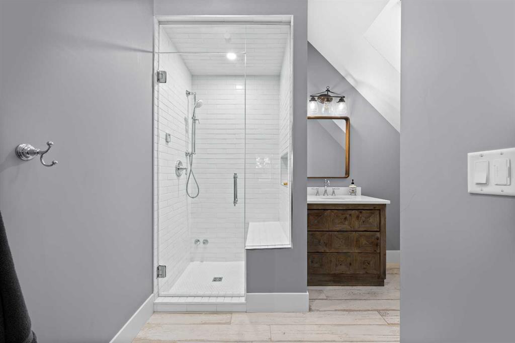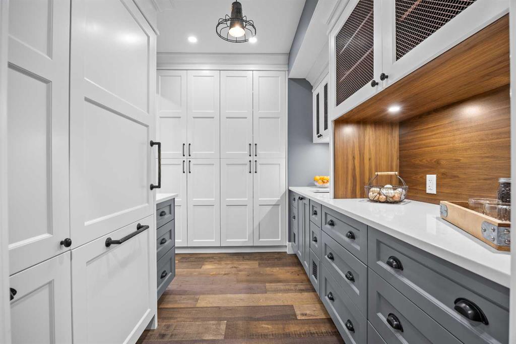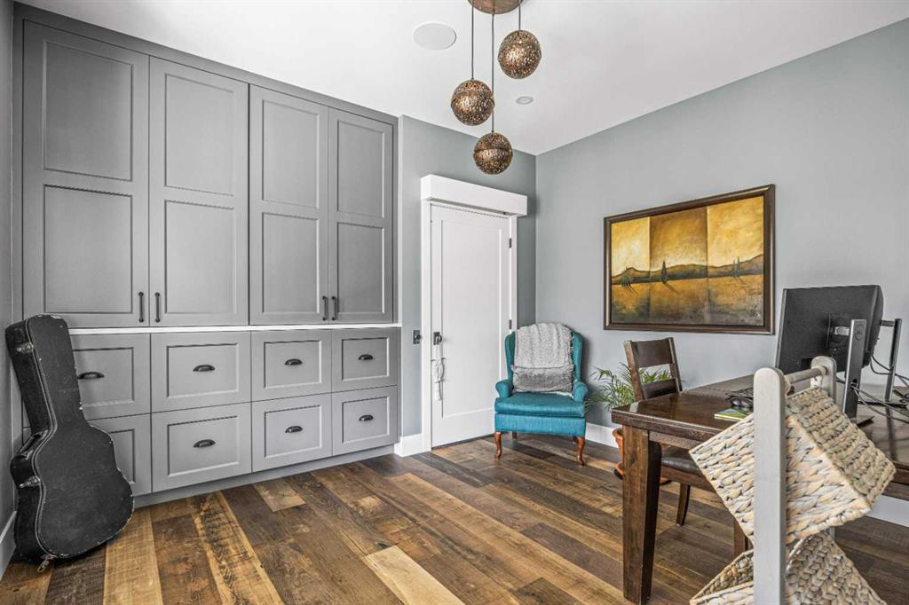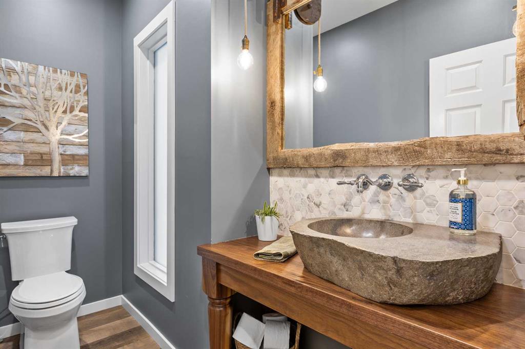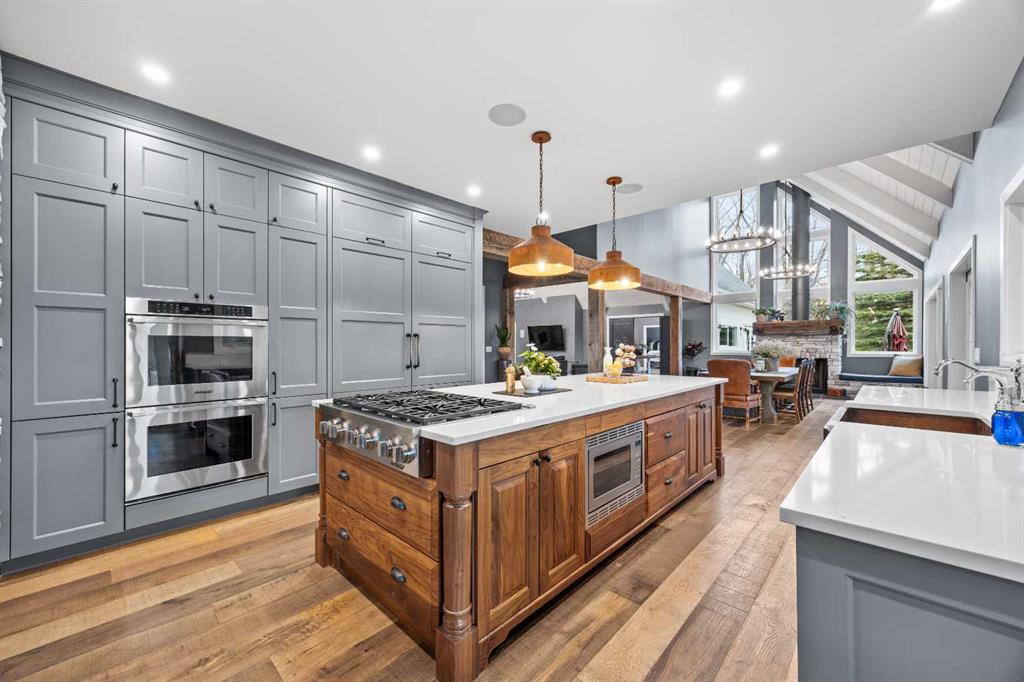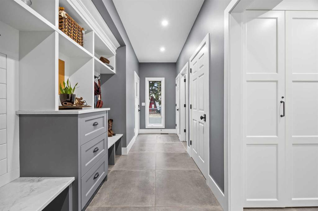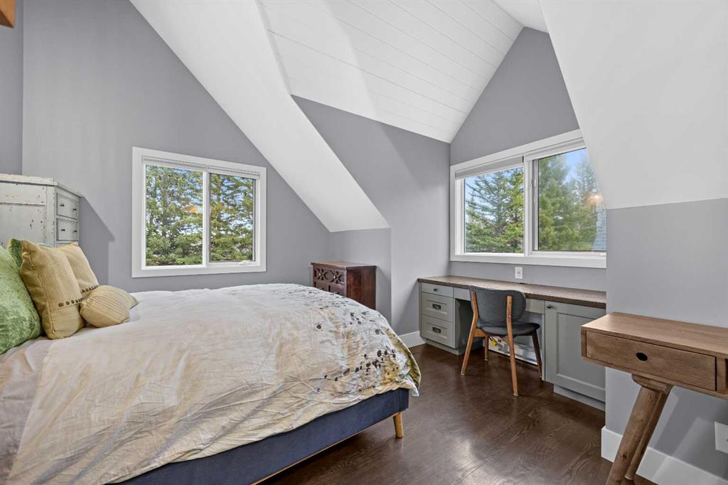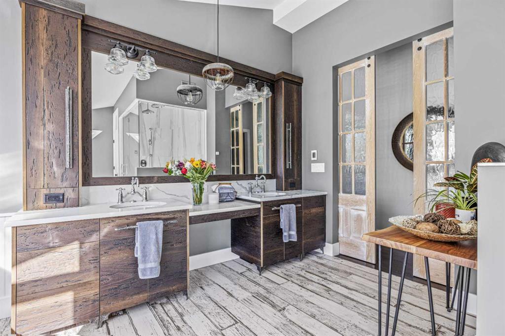 This exquisite home, extensively renovated in 2022, is situated on almost 22 acres of scenic, treed land with Three Point Creek beautifully flowing throughout the property. This sprawling home offers approximately 2,919 sq. ft. on the main level and an additional 1,440 sq. ft. on the upper level, with a total of five bedrooms and six bathrooms. The quality craftsmanship of this gorgeous modern farmhouse is evident from the moment you enter. Imported reclaimed wood beams complement the wide plank hardwood floors, vaulted white wood ceilings, and custom millwork. The open concept floor plan basks in natural light and features spacious areas for entertaining friends and family, with two wood burning fireplaces. Every culinary enthusiast’s dream, the incredible kitchen leaves nothing to be desired with 2 full size Bosch refrigerator/freezers, Dacor dual wall ovens, Dacor 6-burner gas range, Miele dishwasher, copper farmhouse sink and a large butler’s pantry with yet another full size Bosch refrigerator/freezer. Through the double doors to the South Wing is an impressive vaulted family room, full bathroom, wet bar, and 2 bedrooms. This space is perfect for multi-generational living. Completing the main floor is a quiet den with an elevator to the Primary Suite above, another full bathroom with shower off the mudroom, powder room, dry bar, main floor laundry and a spacious, screened back porch. On the upper level, the tranquil primary bedroom overlooks the creek with a private upper deck, and features a luxurious ensuite with claw foot tub, steam shower, dual vanities, and walk-in closet. Two additional bedrooms, one with ensuite bathroom with steam shower, another full bathroom with steam shower and second laundry room are also on this level. Other features of this home include built-in Sonos sound system (indoor & outdoor), elevator, Murphy bed, security cameras, two RO water filter systems, high speed internet & cell phone booster. This property is fully set up for equestrian or hobby farm use and is currently operating as a horse boarding facility, with easy access for trailers on paved roads. Features include a 5-stall, drive-through barn with waterers and attached paddocks. In fact, the property offers 10 large paddocks, round pen, outdoor riding arena, two large Quonsets (one fully insulated with spray foam and concrete floor), dog run (currently used as a goat run), and a fully insulated chicken coop with power. A separate well is at the barn also. Whether you are exploring the paths via horseback, wading in the creek, or living in the luxurious home, there are so many unique areas to enjoy. Conveniently located close to Millarville and a 20 minute drive to Calgary, you have the very best of living in nature coupled with easy access to all amenities.