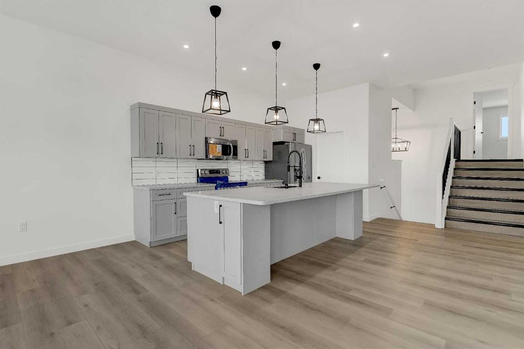 This 2040 sq/ft modified bilevel has a wide open floor plan with plenty of room for the whole family. Kitchen has a large island, granite counter tops, grey cabinets, stainless appliances, and a walk in pantry. Living room has fireplace and large windows for plenty of natural light. Master bedroom over the garage has a 5 piece ensuite and massive walk in closet. A three piece bathroom, and 2 large bedrooms complete the main floor. There is no shortage of closets and storage in this home. The triple car garage measures 36 feet wide and 26 feet deep. Located in Whispering ridge close to Schools, playgrounds, shopping and the new Hospital.