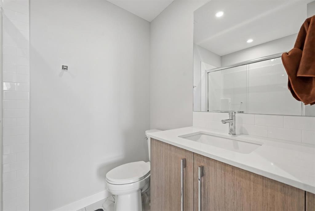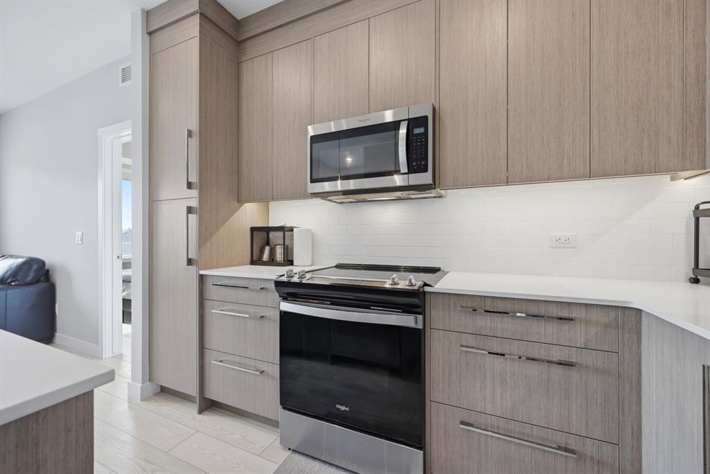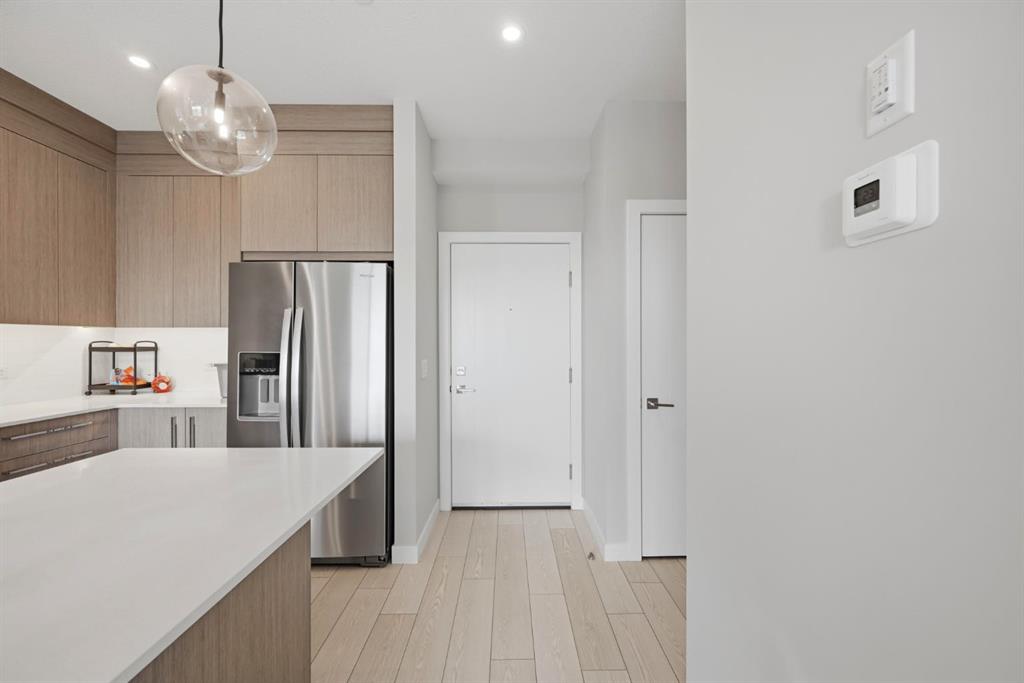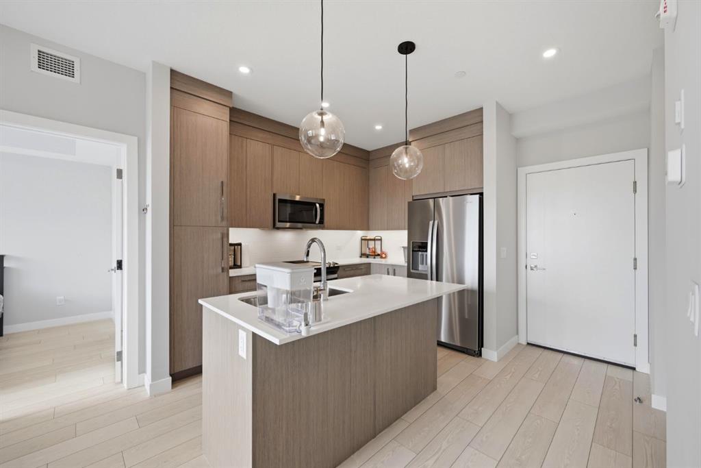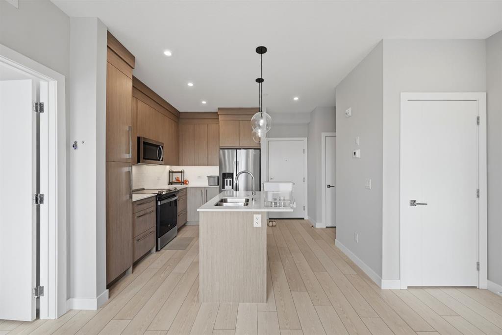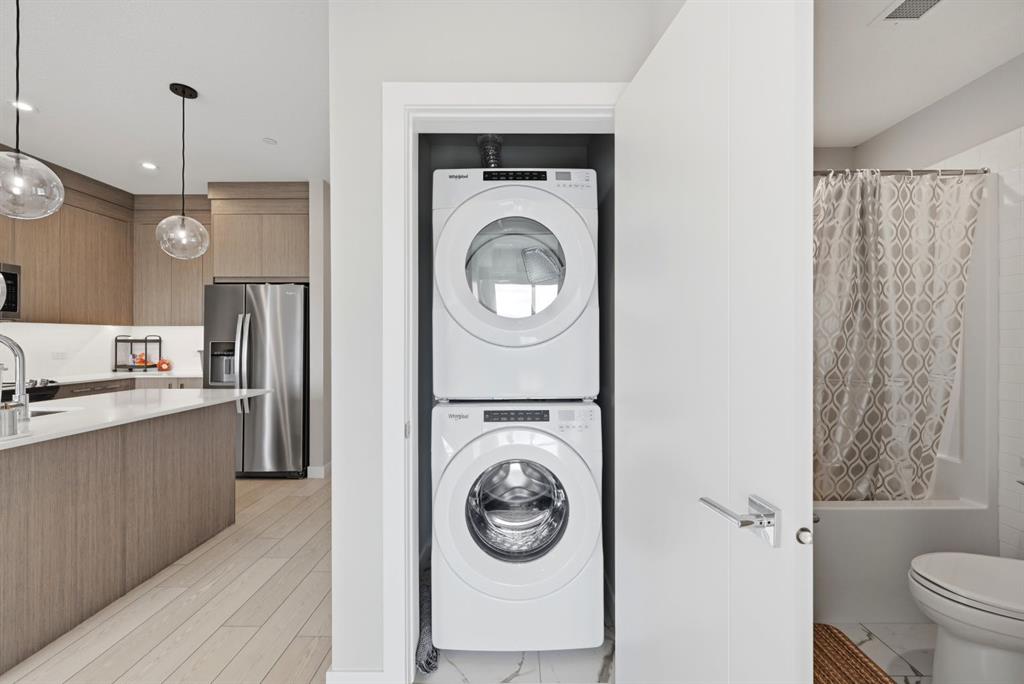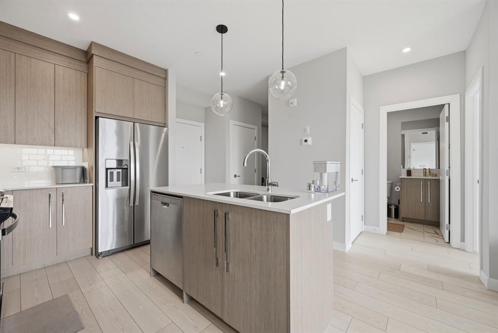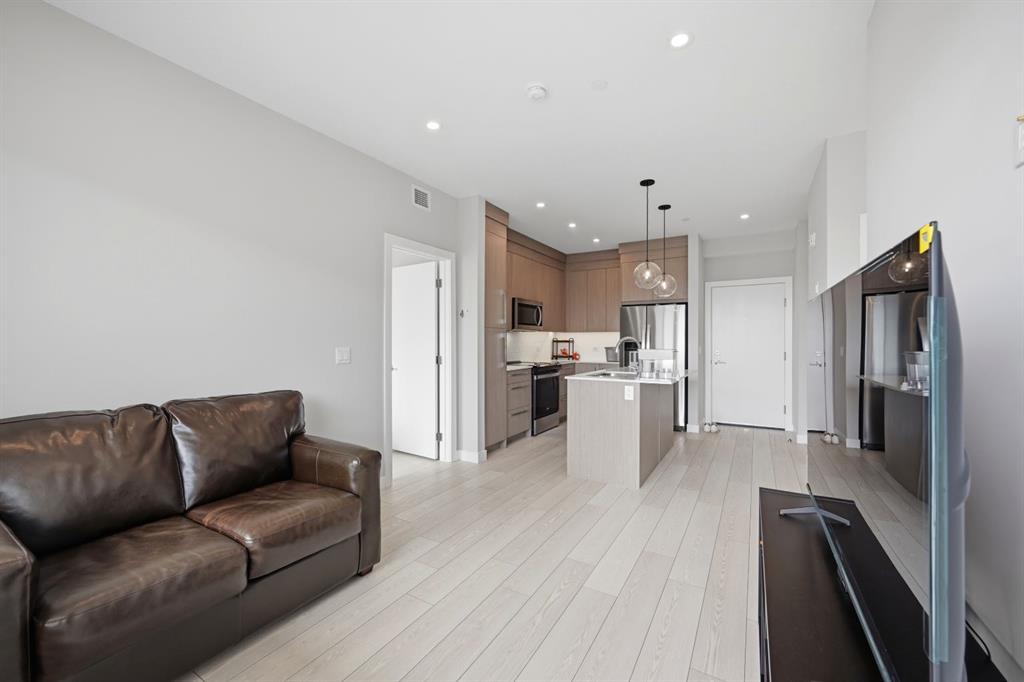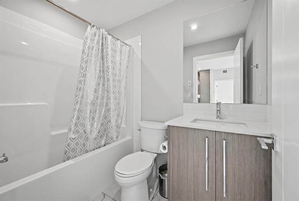 This bright 4th-floor corner unit offers 2 bedrooms, a dedicated office/flex space, 2 full bathrooms, and a south-facing balcony, all flooded with natural light through expansive windows. Elegant LVP flooring runs throughout the open-concept layout, where the contemporary kitchen with quartz counters flows into the living and dining area. The primary bedroom features a private 3-piece ensuite, while a generous second bedroom, 4-piece main bath, and in-suite laundry complete the functional floorplan. Residents enjoy access to a fitness centre and owner's lounge, with CrossIron Mills, Costco, YYC Airport, Stoney Trail, and Métis Trail all within a 15-minute drive of Cityscape, one of northeast Calgary's fastest-growing communities. A turn-key, tenant-occupied opportunity in a well-appointed building.