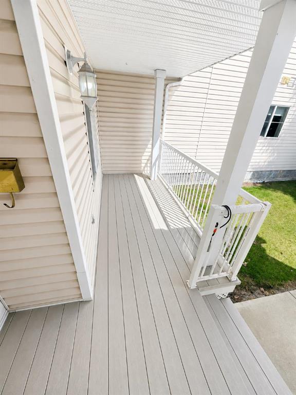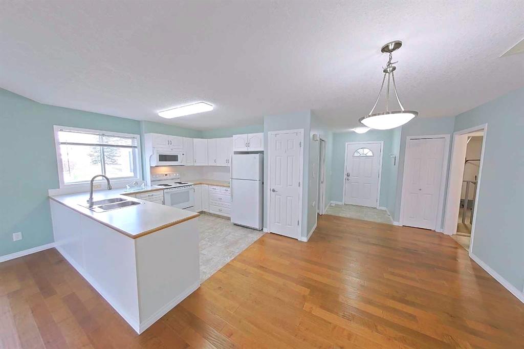 Welcome to 60+ adult living at Fletcher Village in Old Town Airdrie! This spacious, bright, and open 2-bedroom condo offers comfort, convenience, and a strong sense of community. Enjoy the inviting front porch, perfect for relaxing in the shade, along with a front-attached insulated garage and an extra-long driveway that provides ample parking for you and your guests. Inside, the home features extensive hardwood flooring and a large kitchen with a generous peninsula and added pantry storage with a built-in spice rack. The open-concept living room is highlighted by vaulted ceilings and a cozy gas fireplace—an ideal space to unwind on cool Alberta evenings. A practical and well-designed laundry/mud room offers additional storage and provides convenient direct access to the attached garage—perfect for everyday ease and seasonal transitions. Just a few steps away, the primary bedroom includes a large walk-in closet and easy access to a well-appointed bathroom featuring a spacious walk-in shower with a built-in seat. The second bedroom is versatile, complete with a Murphy bed—perfect for guests or a home office/den. Step out the back door to your private patio space, and take advantage of the nearby community amenities just across the parking lot. Residents enjoy access to a common area featuring games, craft rooms, a woodworking shop, and more—encouraging an active and social lifestyle. A wonderful opportunity to enjoy comfortable, low-maintenance living in a welcoming 60+ community!