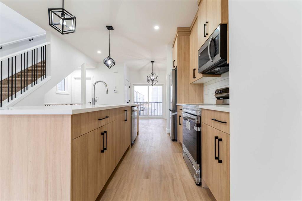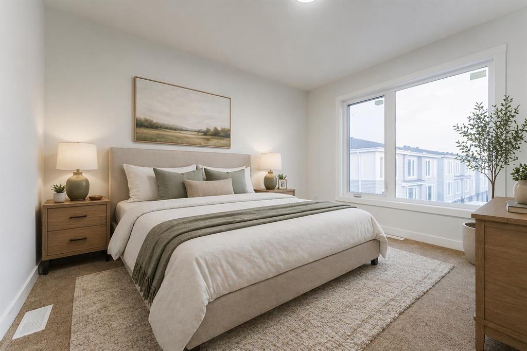 **First-time home buyer GST Rebate Available**. Show Home For Sale | 4 beds | 3.5 bath | Single Car Garage Attached Experience the ideal mix of comfort, style, and convenience in this stunning townhome in Saddlepeace (Saddleridge NE). The bright main floor offers an open-concept layout with a modern kitchen featuring quartz countertops, stainless steel appliances, full-height cabinets, and a large island. Upstairs includes 3 spacious bedrooms, a primary suite with a walk-in closet and ensuite, plus convenient laundry. The ground-level 4th bedroom comes with its own ensuite and separate laundry—perfect for extended family or rental income. An attached garage adds extra convenience. Located close to shopping, schools, parks, transit, and the Sikh Temple, with easy access to Stoney Trail and Metis Trail. Only 5 minutes to Calgary International Airport and 15 minutes to CrossIron Mills. Schedule your private viewing today!