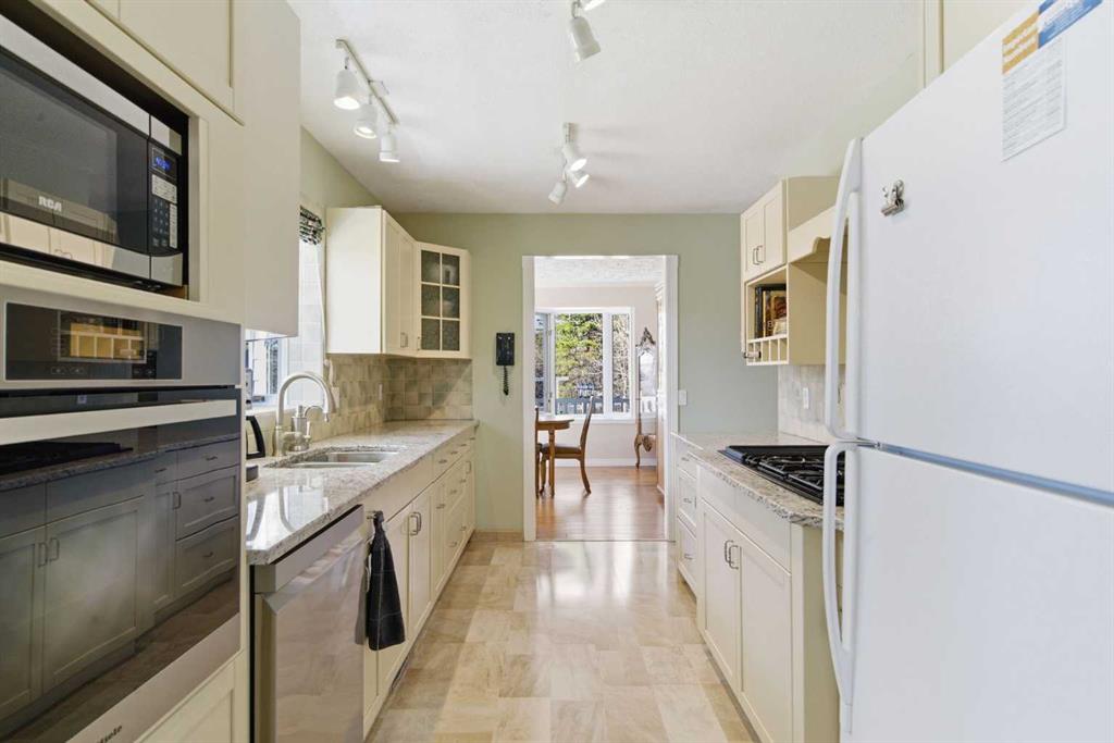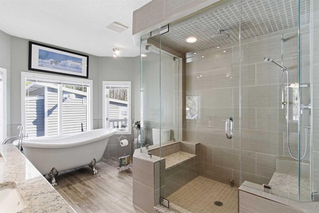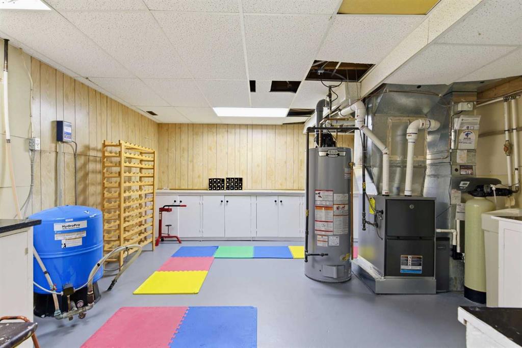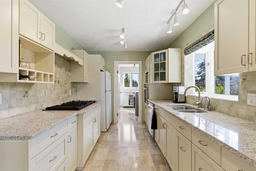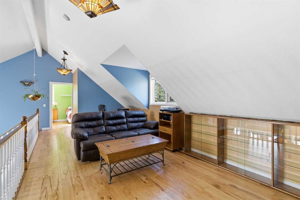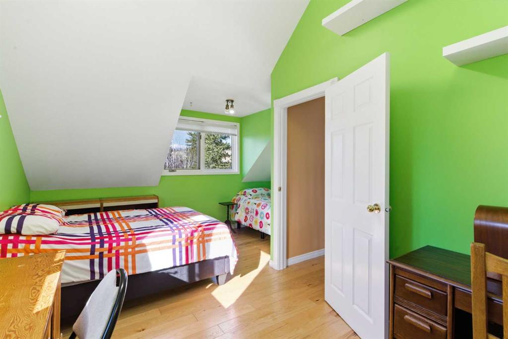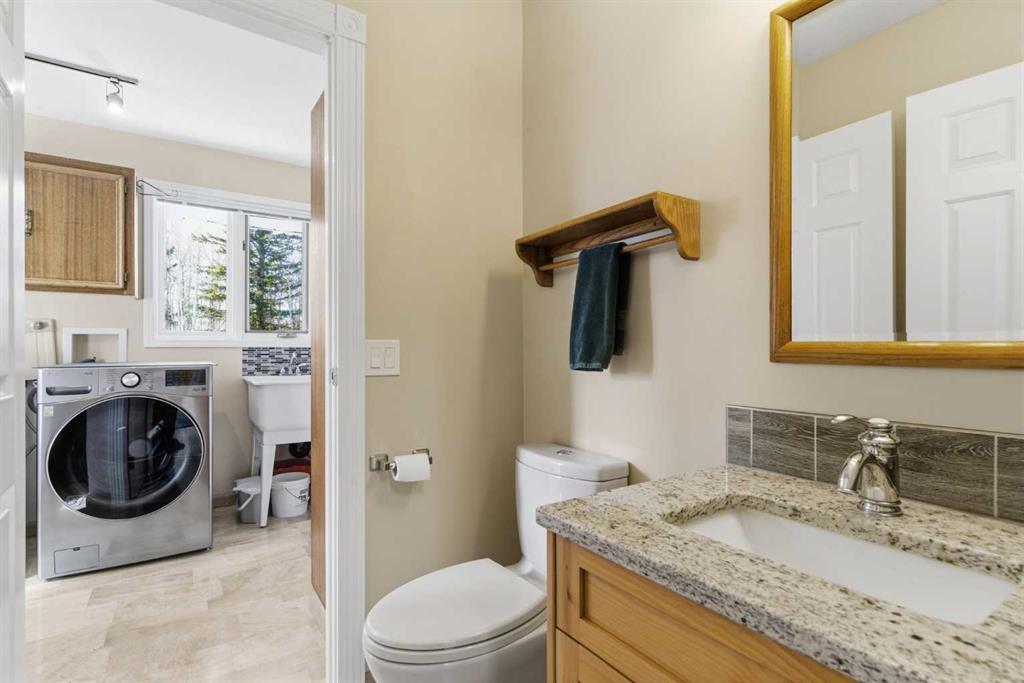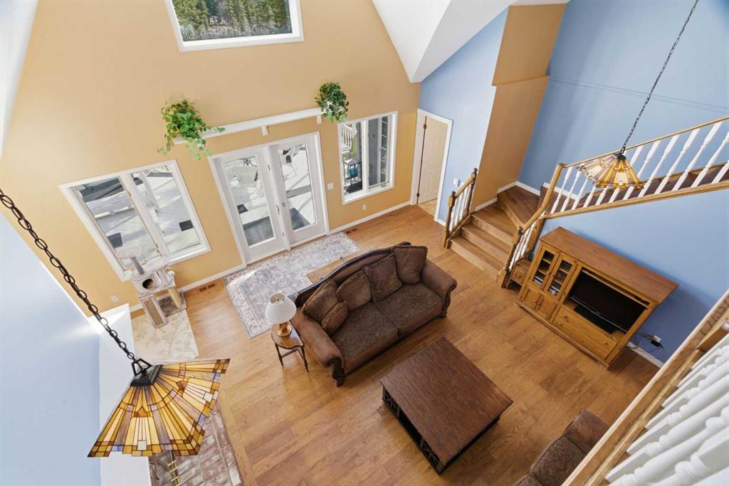 This beautiful Victorian style 1 & ½ storey home was built in 1989 and sits on 20 acres with trees & pasture land. It was updated in 2012 with interlocking metal roof (with transferable 50 year warranty) and Hardy board siding in 2022 on both the house and detached triple garage. The covered deck wraps around most of the house. The large fenced in yard (1 acre) is perfect for keeping young children and dogs close by. This fenced in yard includes a hot tub, pond, green house (c/w power & heat) & garden. The entrance features double French doors with a closet & ceramic tile flooring leading into the huge living room. This room boasts a vaulted ceiling, brick surround wood burning fireplace with mantle, a cozy alcove on the north side with 2 bay windows & picture windows & double doors leading to the deck on the south side. Off the living room is a bright inviting solarium with 4 skylights and a sliding glass door to the deck on the south side. On the west side of the house is an updated kitchen with cream cabinets, granite countertops, tile backsplash & a deep bay window over the double kitchen sink. There is a reverse osmosis system on the kitchen sink faucet. The appliances include a refrigerator, the oven & microwave are both built in, the dishwasher (new in 2025), the gas stove top with 4 burners & grill has a downdraft fan. Off the kitchen is a formal dining room with a bay window & built-in china cabinet. The laundry room presents upper cabinet storage, a pantry, laundry tub & washer and dryer (new in 2024). The spacious primary bedroom is on the main level with a linen closet & 5 piece ensuite. The ensuite has a double sink vanity with granite countertops, a free standing claw foot tub, large steam shower, plus both a storage & walk-in closet. The main level boasts stained Hickory hardwood floors, ceramic tile & Pergo laminate flooring. The upper level has 2 extensive bedroom with large closets c/w organizers. The bonus area has built-in shelving. A 3 piece bathroom completes this level. The flooring in natural stained Hickory hardwood & ceramic tile. The basement is insulated & drywalled. It is partially finished with a huge rec room area with built-in storage, dry bar & storage room. The workshop & utility rooms both include built-in shelving. The furnace & hot water tank were new Oct ’25. The 32’ x 24’ 3 car detached garage is insulated & drywalled. The double garage door has a remote opener. The 40’ x 30’ barn is insulated & plywood paneled with tack room, 3 full sized stalls, storage & utility room (c/w hot water tank & heater). The barn is on it’s own well. The panels & water troughs are included. Only 15 minutes from Cochrane on paved roads. A beautiful & serene property to call home.