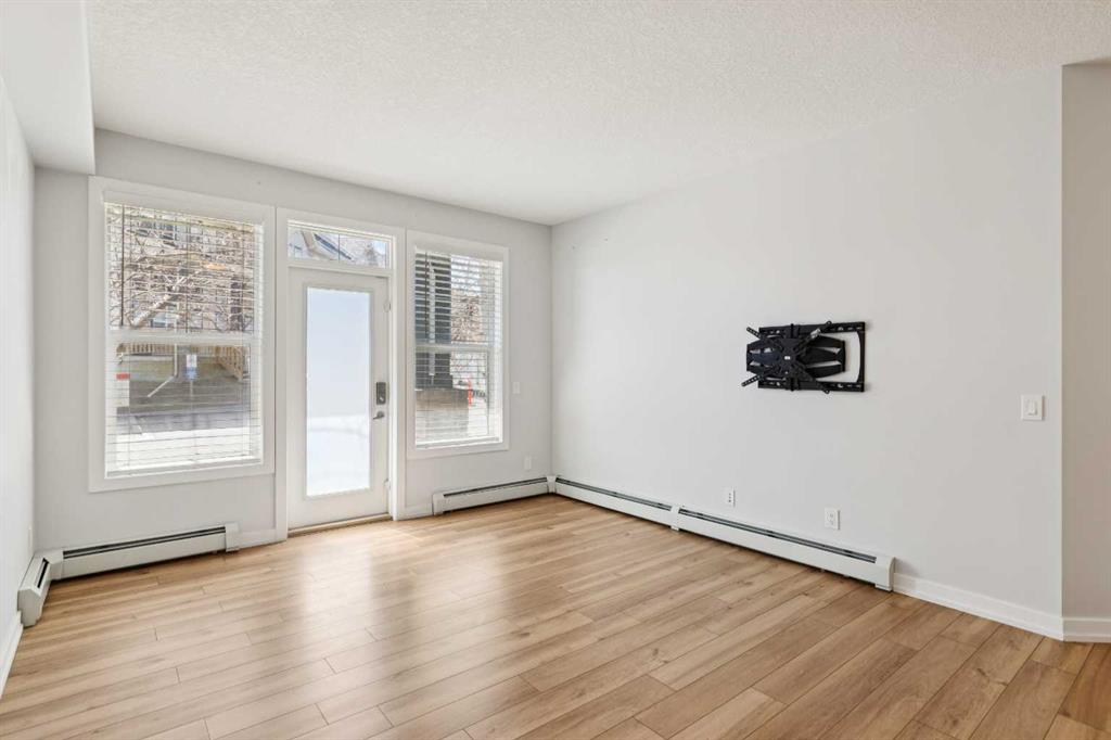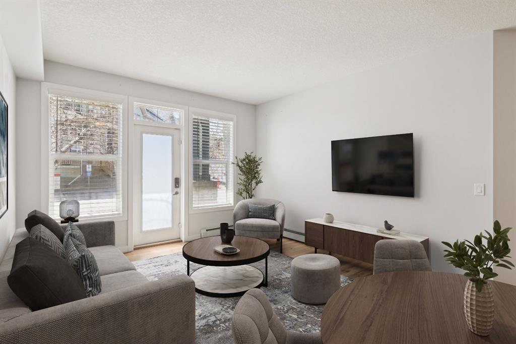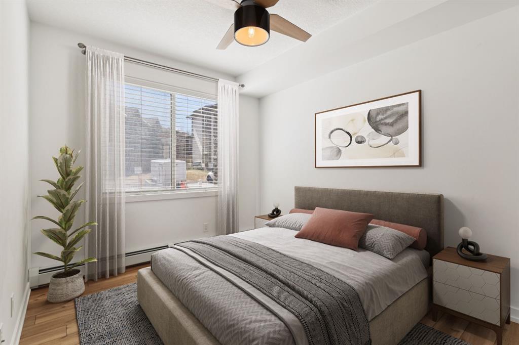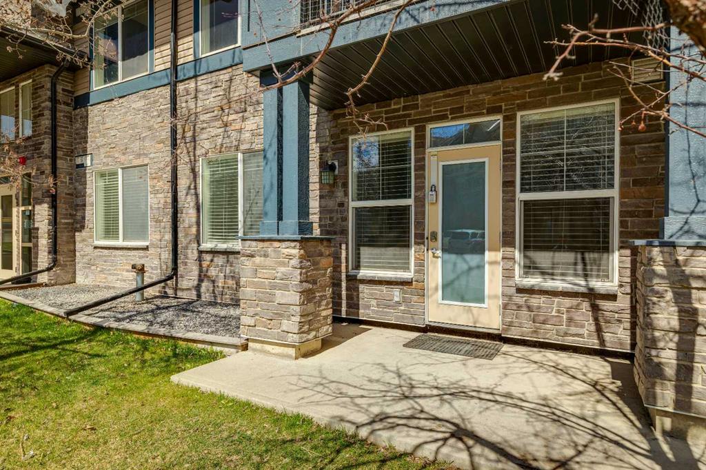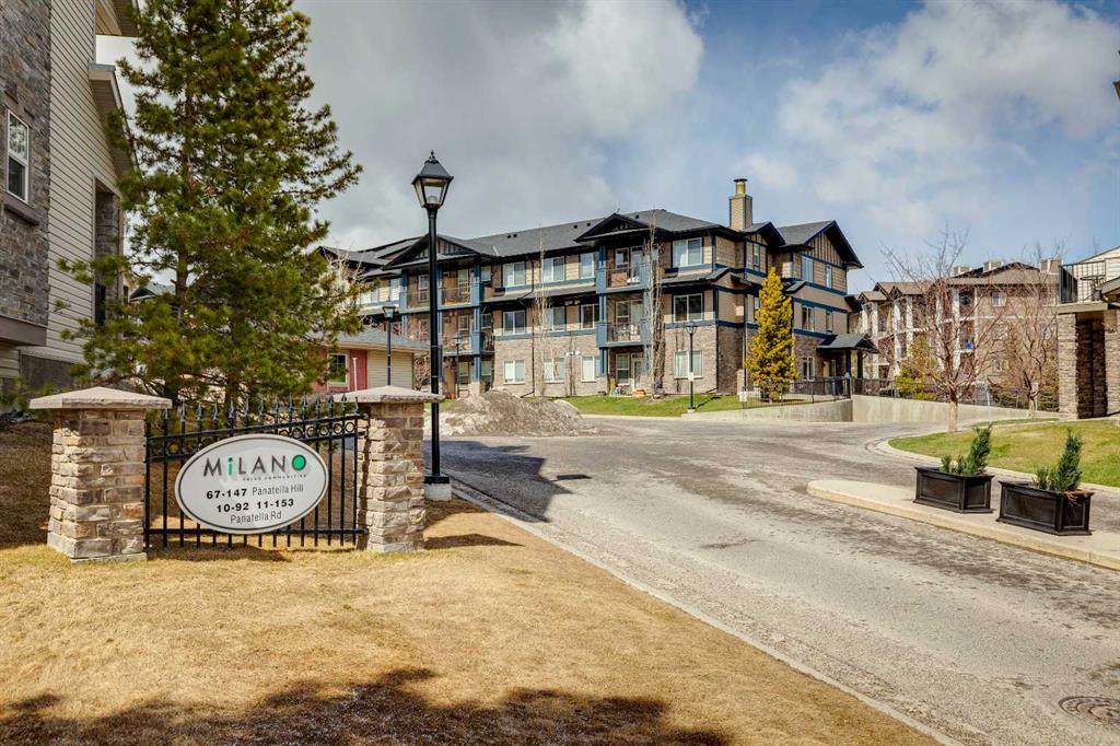Welcome to Unit 112 - 10 Panatella Road NW. This inviting layout main floor unit really stands out in the highly sought-after Milano complex. Located on the ground floor, this beautifully maintained condo offers both style and functionality with thoughtful updates throughout. The kitchen is a true highlight, featuring sleek quartz countertops, crisp white cabinetry, and stainless steel appliances—perfect for both everyday living and entertaining. The open-concept design is enhanced by stunning flooring that flows seamlessly through the main living spaces, while the bathrooms are finished with durable tile. Natural light fills the unit, creating a warm and welcoming atmosphere. Step outside to your private patio, an ideal space to unwind, soak up the sun, or enjoy summer BBQs. The spacious primary bedroom includes a walk-in closet and a full ensuite, offering comfort and convenience. Additional features include in-suite laundry, ample storage, and a dedicated storage locker conveniently located next to your titled underground parking stall. Situated close to shopping, dining, transit, and everyday amenities, this home offers the perfect balance of comfort, style, and location—an exceptional opportunity for any buyer.