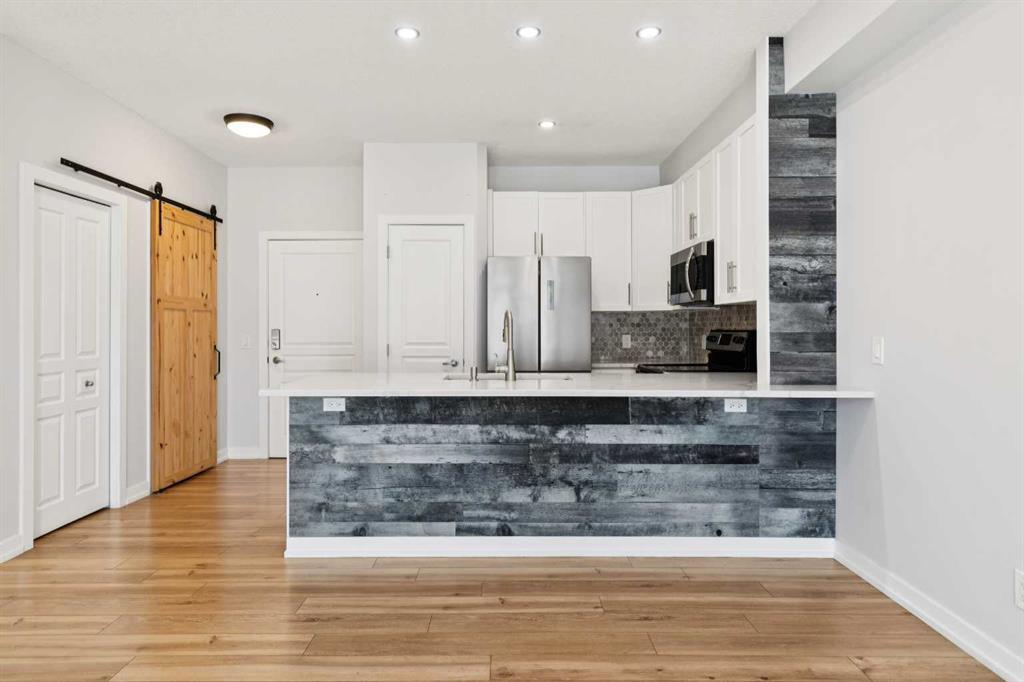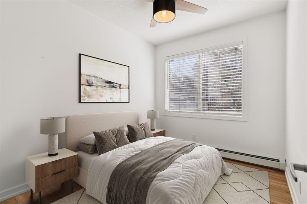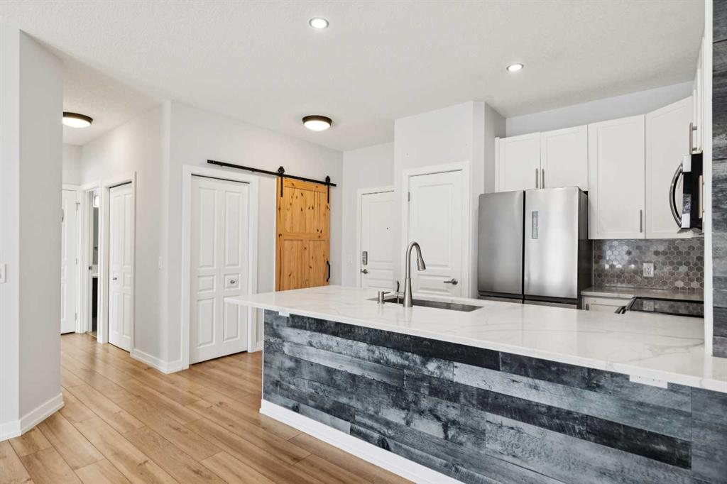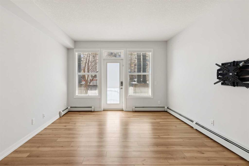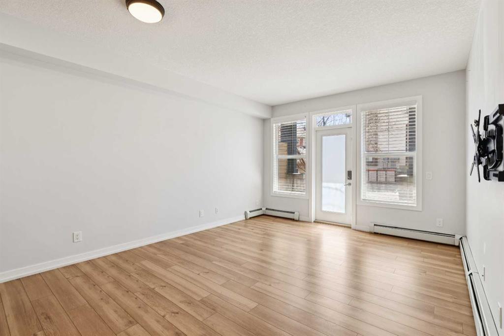 Welcome to Unit 112 - 10 Panatella Road NW. This inviting layout main floor unit really stands out in the highly sought-after Milano complex. Located on the ground floor, this beautifully maintained condo offers both style and functionality with thoughtful updates throughout. The kitchen is a true highlight, featuring sleek quartz countertops, crisp white cabinetry, and stainless steel appliances—perfect for both everyday living and entertaining. The open-concept design is enhanced by stunning flooring that flows seamlessly through the main living spaces, while the bathrooms are finished with durable tile. Natural light fills the unit, creating a warm and welcoming atmosphere. Step outside to your private patio, an ideal space to unwind, soak up the sun, or enjoy summer BBQs. The spacious primary bedroom includes a walk-in closet and a full ensuite, offering comfort and convenience. Additional features include in-suite laundry, ample storage, and a dedicated storage locker conveniently located next to your titled underground parking stall. Situated close to shopping, dining, transit, and everyday amenities, this home offers the perfect balance of comfort, style, and location—an exceptional opportunity for any buyer.