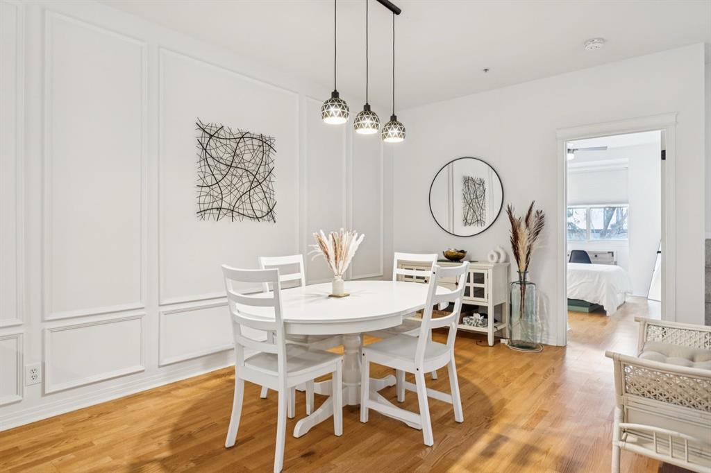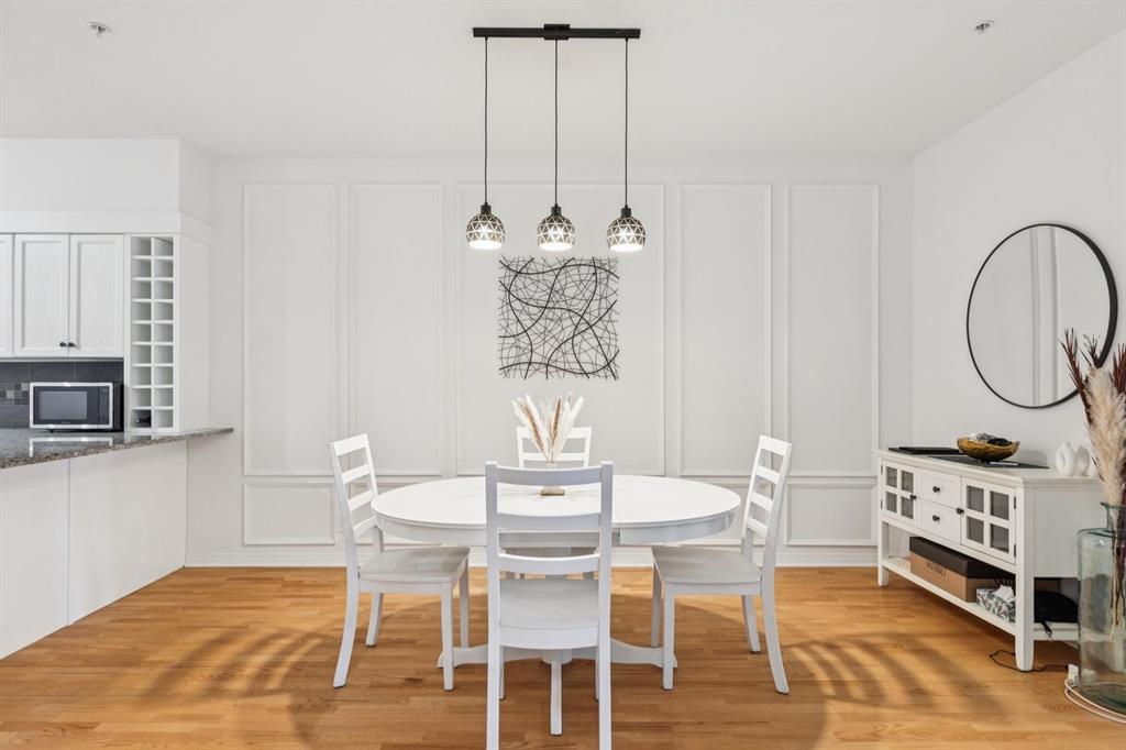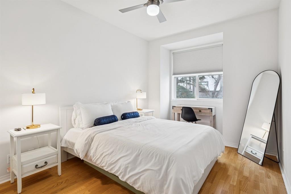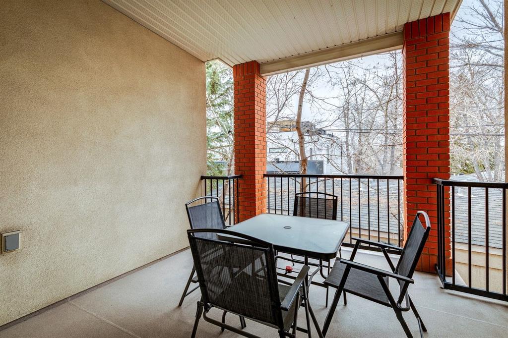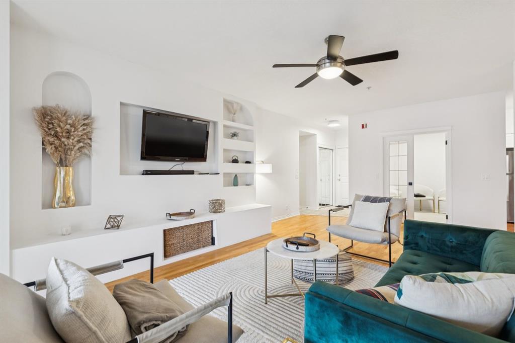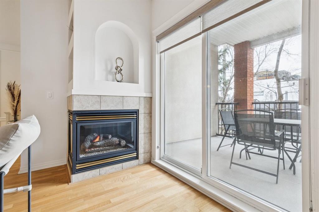 A thoughtfully curated interior that feels both elevated and inviting in West Hillhurst. Welcome to your new home at The Manors, where timeless design meets modern comfort. This beautifully updated 1,287 sq ft condo offers 2 bedrooms, 2 full bathrooms plus a den, and titled underground parking. The open concept layout seamlessly connects the kitchen, dining, and living spaces, creating the perfect setting for everyday living and effortless entertaining. The living room is anchored by a cozy two sided gas fireplace, while a stunning custom feature wall with integrated built in shelving adds architectural interest and a calm, refined ambiance to the space. The kitchen has been tastefully refreshed with a new fridge and dishwasher, complementing the existing granite countertops. Fresh paint, along with updated hardware and lighting throughout, offers a clean and modern aesthetic. The adjacent dining area flows beautifully for hosting or quiet evenings at home, complete with a striking new light fixture. Retreat to the spacious primary bedroom, featuring a walk in closet and private ensuite. A generous second bedroom and versatile den provide flexible space for a home office, guests, or creative pursuits. Additional upgrades include built in closet systems and a stylishly refreshed laundry room with striking black and white vintage inspired tile flooring. Step outside to your private balcony, perfect for morning coffee, evening wine, or summer barbecues. This unit also includes in suite laundry, a titled underground heated parking stall, a dedicated storage space, and access to building amenities including a car wash bay. Ideally located close to shopping, restaurants, parks, and everyday conveniences, The Manors offers a balanced lifestyle of comfort, style, and accessibility. A move in ready opportunity with meaningful upgrades throughout, this is one you won’t want to miss. Love what you see? This unit can be sold partially furnished.