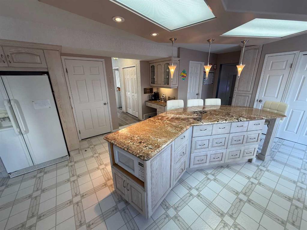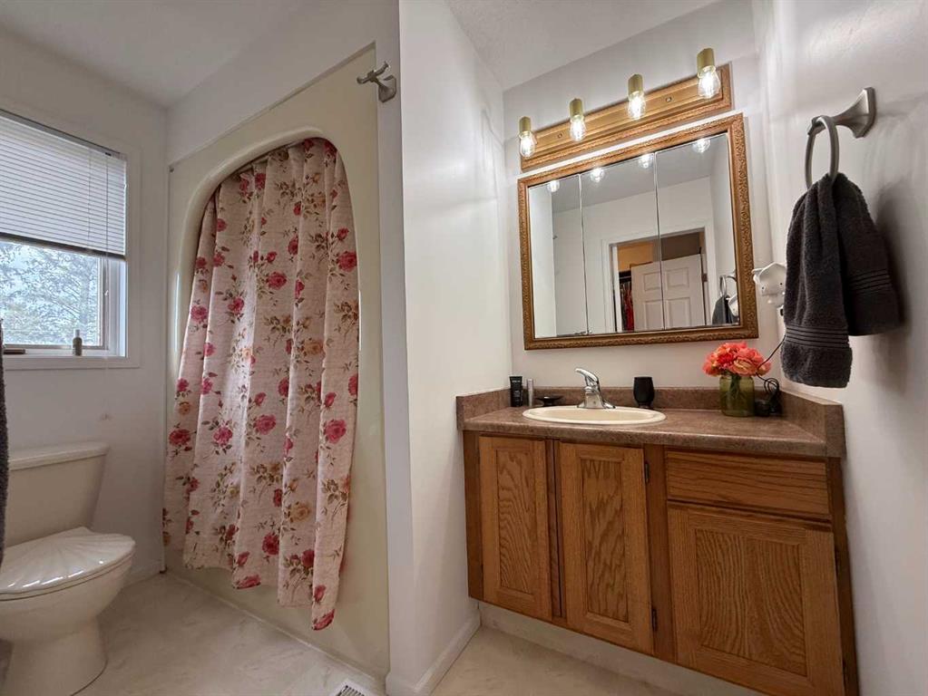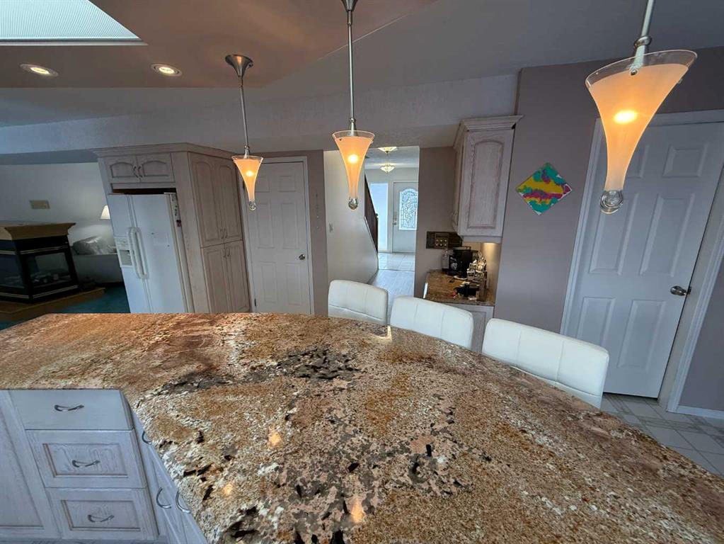 Welcome to 104 Mistaya Road, a hidden gem nestled on a cozy cul-de-sac in Hinton’s desirable Valley District. This charming and spacious home offers character, comfort, and versatility — perfect for families or those looking for income potential. The main floor features a bright and open layout with a large kitchen complete with a breakfast bar island, stone countertops, and ample cabinetry. The dining and living areas flow seamlessly together, divided only by a stunning three-sided gas fireplace that adds warmth and elegance. A sunken family room provides the perfect space for gatherings and offers direct access to the backyard oasis, which includes a covered gazebo-style deck, a patio, and beautifully landscaped grounds. This level also includes a bedroom (or office), a three-piece bathroom, and main-floor laundry for added convenience. Upstairs, the home offers a unique double-primary layout, creating flexible living options. The current owners have utilized one of the spacious bedrooms as a licensed Airbnb suite, featuring a private exterior entrance via an upper-level deck and stairs, a walk-in closet, den area, and a luxurious ensuite. The second bedroom on this level is equally generous in size and has access to a large four-piece bathroom. The partially developed basement includes multiple storage areas and a large open space currently used as a family room, with windows already in place offering the potential to add additional bedrooms or customize the space to suit your needs. Additional features include an attached double garage with main-level access, beautiful landscaping, and a peaceful cul-de-sac location. With its thoughtful design and income potential, this charming home in Hinton’s Valley District is truly a must-see.