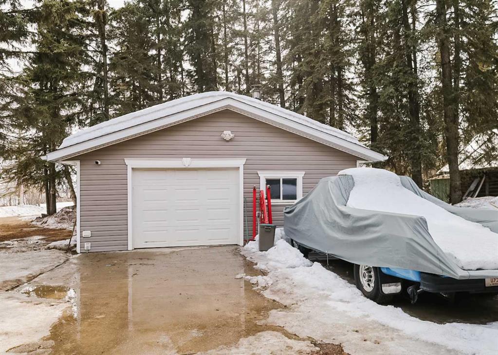 Welcome to this picturesque 4.67-acre acreage, where privacy and natural beauty come together in perfect harmony. Surrounded by stunning mature trees, this property offers a peaceful, park-like setting with plenty of space to relax, explore, and enjoy country living at its finest. The charming 1,265 sq. ft. home features 4 bedrooms and 2.5 bathrooms, making it ideal for families or those looking for extra space. Inside, you’ll find a warm and inviting layout with comfortable living areas and plenty of natural light throughout. This home has seen numerous important upgrades, including newer windows, siding, and shingles, ensuring both curb appeal and long-term durability. Mechanical updates include a newer furnace and hot water tank, providing added peace of mind for years to come. The property is serviced by a reliable well with excellent water quality. Outside, the 26’ x 24’ detached garage offers ample space for parking, storage, or a workshop. The expansive yard is beautifully treed, creating a private oasis with room for gardening, recreation, or simply enjoying the tranquility of rural life. If you’ve been searching for a well-maintained acreage with mature landscaping, functional upgrades, and a serene setting, this property is a must-see.