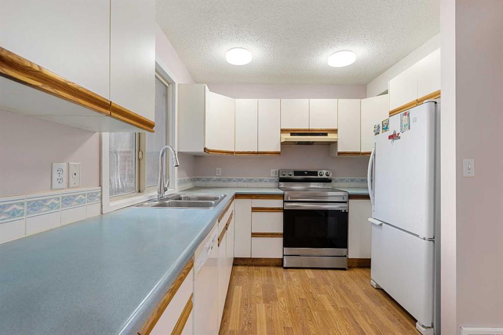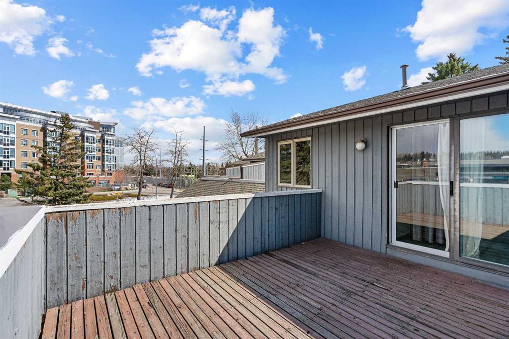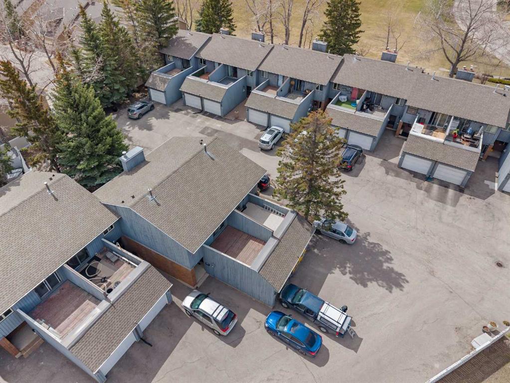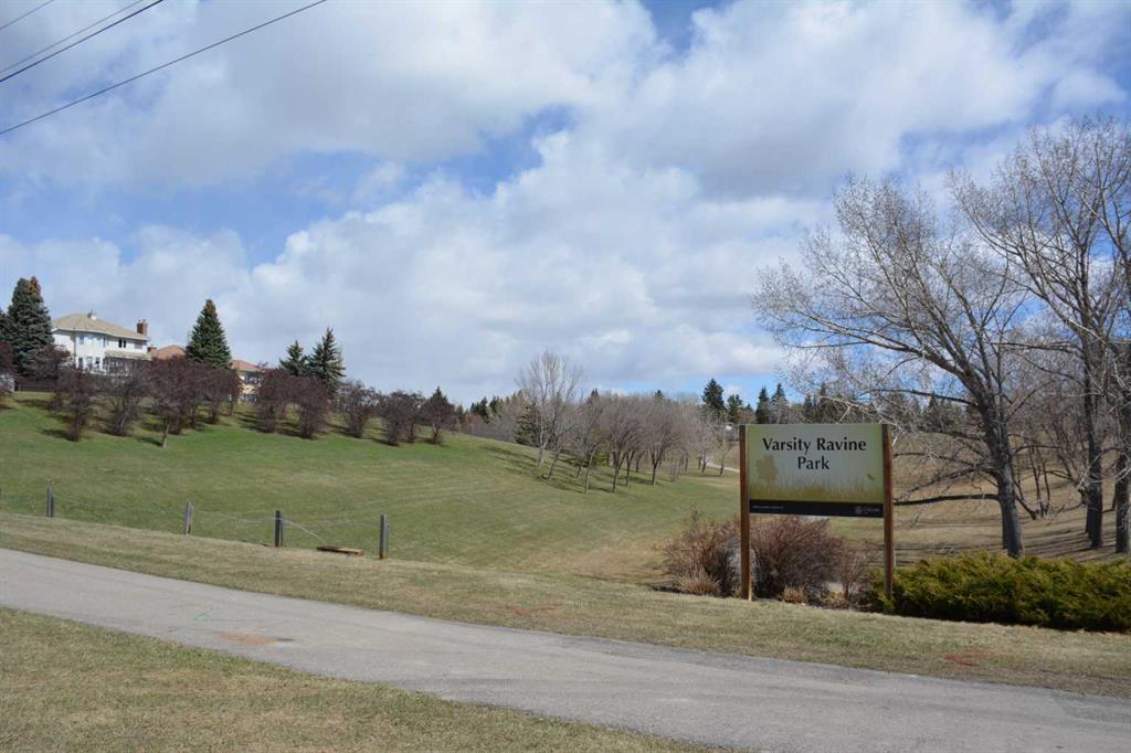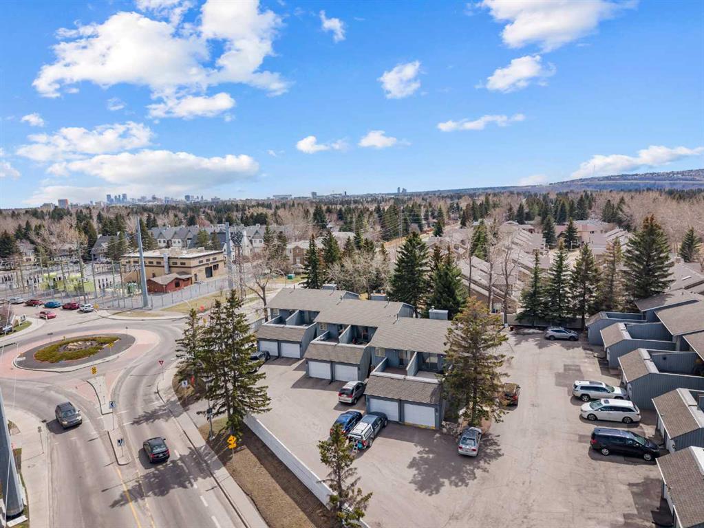 A unique design in VARSITY ACRES, awesome LOCATION (WALK TO Dalhousie LRT, FEW TRAIN STATIONS TO THE U OF C), Walk to Shopping, Sir Winston Churchill High School, VERY LOW CONDO FEES, and an ATTATCHED SINGLE GARAGE make this Varsity townhome a standout for first-time buyers, a young family, or as a rental property. A covered front porch is a welcome feature from the elements. Here is your chance at this unique property and to live in one of Calgary's most desired communities, that is close to Nose Hill Park, Foothills Hospital, Albert’s Children's hospital, and Market Mall. UPGRADES INCLUDE (As of APRIL 24, 2026): ALL CEILING, WALLS, BASEBOARDS, FRONT DOOR, FIREPLACE MANTLE PAINTED, 4 NEW LIGHT FIXTURES. ALSO, NEWER WINDOWS (KITCHEN, 2 BEDROOMS, AND MASTER (3 PANE), VINYL PLANKS 2 BEDROOMS, WASHER/DRYER 2023, FURNACE (AROUND 2016)) ***MAIN FLOOR*** A spacious foyer with big closets opens to the kitchen, which features a spacious layout with plentiful cabinetry and counter space. Natural light from the window over the sink is a fantastic element, and this room offers a great opportunity to update to your taste. An adjacent dining area is perfect for family dinners. In the living room, an actual wood-burning FIREPLACE and original hardwood floors add a wonderful character, and sliding glass doors to the deck flood the space with amazing sunshine from the south. ***UPPER FLOOR*** Upstairs, the primary bedroom has been refreshed with vinyl plank flooring. Large closets and cheater access to the main bathroom makes this feel like a self-contained retreat, and there is also a private vanity with a sink. There are two more bedrooms on this level, one of which includes a BALCONY. ***BASEMENT*** The Partly finished basement begins with a family room, the ideal hangout on movie night. The utility room also holds a laundry area with a newer washer and dryer and a huge amount of storage. A ROUGH-IN FOR A CENTRAL VAC is ready for your system. Plus, a COLD ROOM is fantastic for pantry items or a wine collection. Outside, the DECK enjoys the shade of a mature tree and has new steps. This unit really feels like it has its own yard. It’s one of only a few with south exposure, and the staggered orientation creates a nicely secluded spot just for you. ***THE AREA*** This home is in a self-managed complex with incredibly LOW CONDO FEES, and amazingly well-located in a hidden pocket of the community. Behind the societal complex, SOCCER, BASEBALL FIELDS and PARKS give it a lovely serene setting, and pathways wind throughout the neighbourhood as well. A longer adventure will take you to the golf course and extensive off leash parks that run along the Bow River. In the other direction, a huge array of amenities is available at Crow Square just across the street, or a 5 minute walk over to Dalhousie Station to find everything you could need. Commuters will love quick access to both Crowchild Trail and the LRT, while students will appreciate proximity to the University.