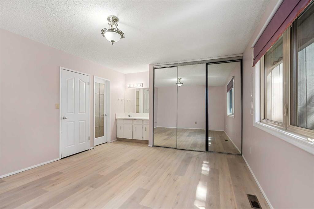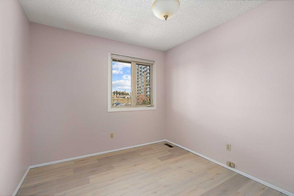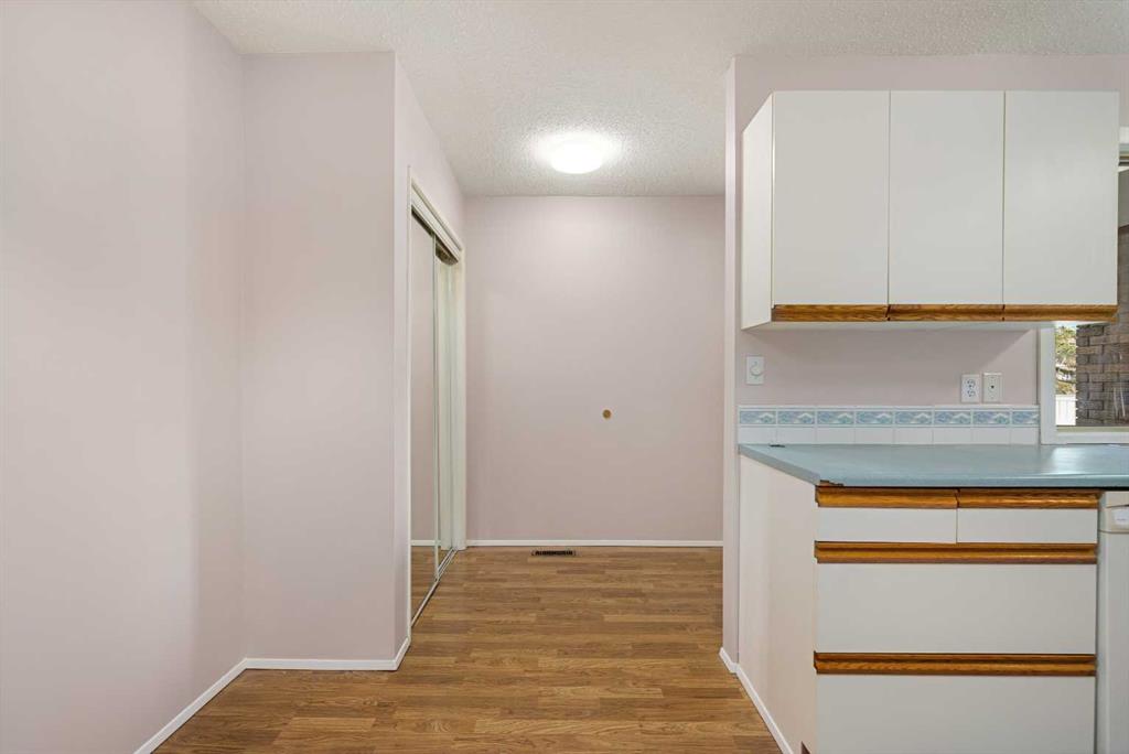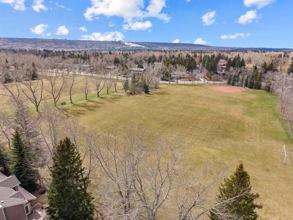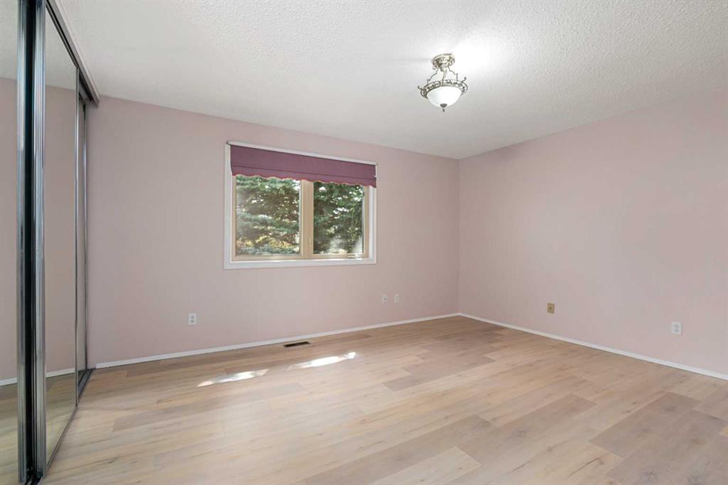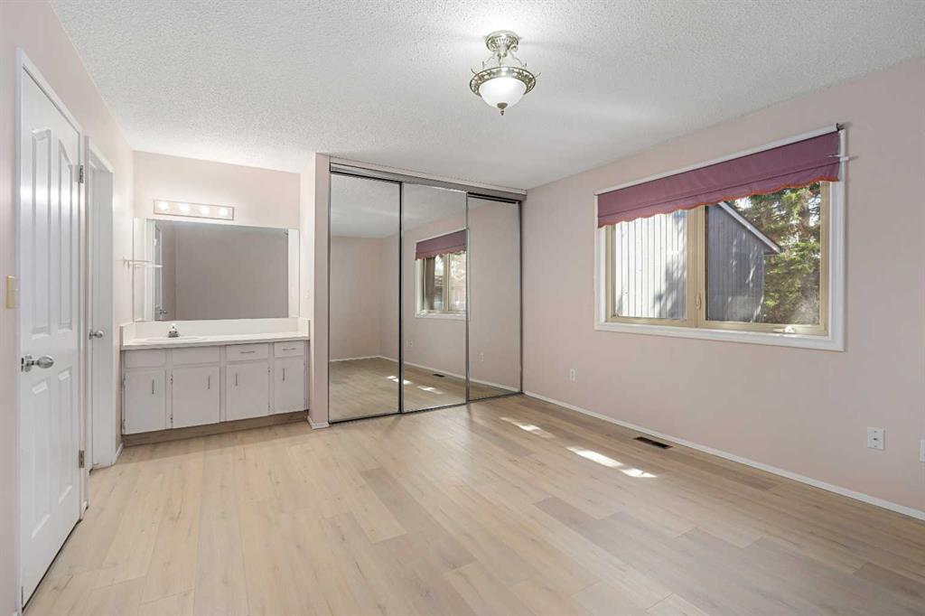 A unique design in VARSITY ACRES, awesome LOCATION (WALK TO Dalhousie LRT, FEW TRAIN STATIONS TO THE U OF C), Walk to Shopping, Sir Winston Churchill High School, VERY LOW CONDO FEES, and an ATTATCHED SINGLE GARAGE make this Varsity townhome a standout for first-time buyers, a young family, or as a rental property. A covered front porch is a welcome feature from the elements. Here is your chance at this unique property and to live in one of Calgary's most desired communities, that is close to Nose Hill Park, Foothills Hospital, Albert’s Children's hospital, and Market Mall. UPGRADES INCLUDE (As of APRIL 24, 2026): ALL CEILING, WALLS, BASEBOARDS, FRONT DOOR, FIREPLACE MANTLE PAINTED, 4 NEW LIGHT FIXTURES. ALSO, NEWER WINDOWS (KITCHEN, 2 BEDROOMS, AND MASTER (3 PANE), VINYL PLANKS 2 BEDROOMS, WASHER/DRYER 2023, FURNACE (AROUND 2016)) ***MAIN FLOOR*** A spacious foyer with big closets opens to the kitchen, which features a spacious layout with plentiful cabinetry and counter space. Natural light from the window over the sink is a fantastic element, and this room offers a great opportunity to update to your taste. An adjacent dining area is perfect for family dinners. In the living room, an actual wood-burning FIREPLACE and original hardwood floors add a wonderful character, and sliding glass doors to the deck flood the space with amazing sunshine from the south. ***UPPER FLOOR*** Upstairs, the primary bedroom has been refreshed with vinyl plank flooring. Large closets and cheater access to the main bathroom makes this feel like a self-contained retreat, and there is also a private vanity with a sink. There are two more bedrooms on this level, one of which includes a BALCONY. ***BASEMENT*** The Partly finished basement begins with a family room, the ideal hangout on movie night. The utility room also holds a laundry area with a newer washer and dryer and a huge amount of storage. A ROUGH-IN FOR A CENTRAL VAC is ready for your system. Plus, a COLD ROOM is fantastic for pantry items or a wine collection. Outside, the DECK enjoys the shade of a mature tree and has new steps. This unit really feels like it has its own yard. It’s one of only a few with south exposure, and the staggered orientation creates a nicely secluded spot just for you. ***THE AREA*** This home is in a self-managed complex with incredibly LOW CONDO FEES, and amazingly well-located in a hidden pocket of the community. Behind the societal complex, SOCCER, BASEBALL FIELDS and PARKS give it a lovely serene setting, and pathways wind throughout the neighbourhood as well. A longer adventure will take you to the golf course and extensive off leash parks that run along the Bow River. In the other direction, a huge array of amenities is available at Crow Square just across the street, or a 5 minute walk over to Dalhousie Station to find everything you could need. Commuters will love quick access to both Crowchild Trail and the LRT, while students will appreciate proximity to the University.