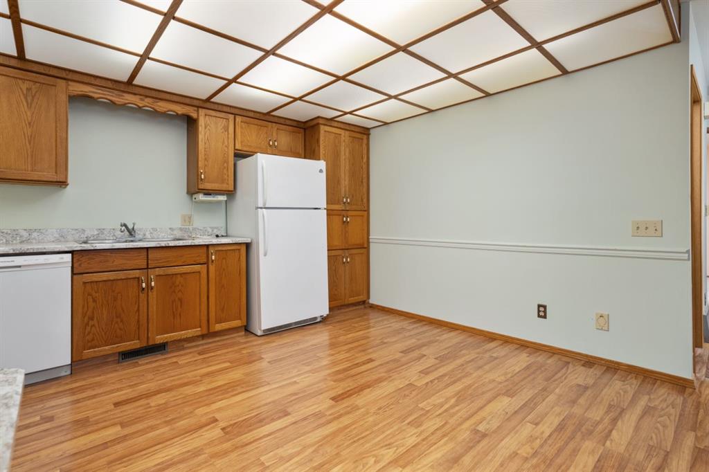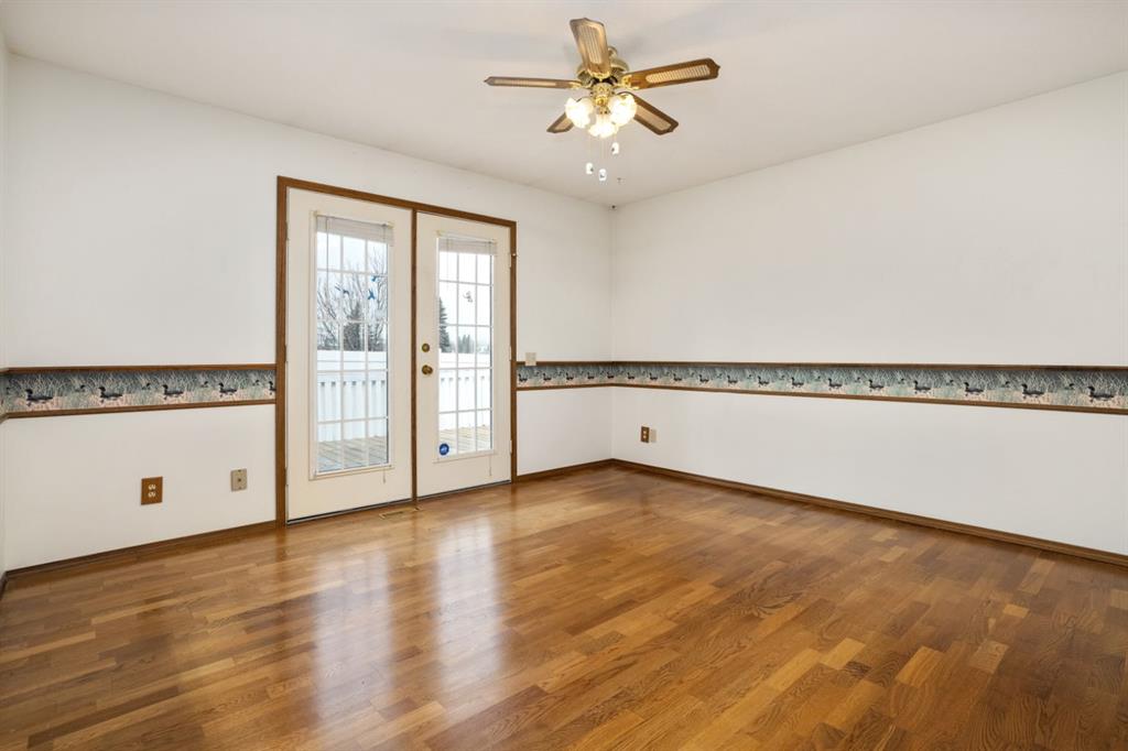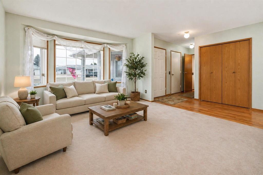 Welcome home to the quiet, highly sought-after cul-de-sac of Liberty Village, a wonderful community known for its peaceful atmosphere and friendly neighbours. Perfectly suited for retirement living, you’ll love being just steps from walking trails through a scenic wooded valley, as well as close to recreation facilities, community gardens! This bright and inviting zero step end-unit home offers an abundance of natural light, with large windows that fill the space from front to back. Featuring 3 bedrooms and a partially finished basement, there is room to relax, entertain, and host guests with ease. The main floor showcases a spacious kitchen with oak cabinetry, two comfortable living areas including a bright front living, dining room and a back bonus room off the deck with a wet bar for all your entertaining needs! The main level includes a spacious primary bedroom with generous closet space, along with two bathrooms and a functional laundry area. Thoughtfully designed for accessibility, the home includes a ramp, raised toilet, and grab bars in the shower, making it a practical and comfortable option. Downstairs, you’ll find two additional bedrooms, a 3-piece bathroom, and plenty of storage space. Step outside to enjoy the pie-shaped lot, offering extra yard space and a large deck perfect for quiet evenings or family gatherings. The backyard also includes three storage sheds and a low-maintenance vinyl back fence. Additional features include a single attached garage with direct entry into the home, plus convenient side door access. Set in a prime location with incredible neighbours, this is the kind of community where you’re warmly welcomed from day one and quickly feel right at home.