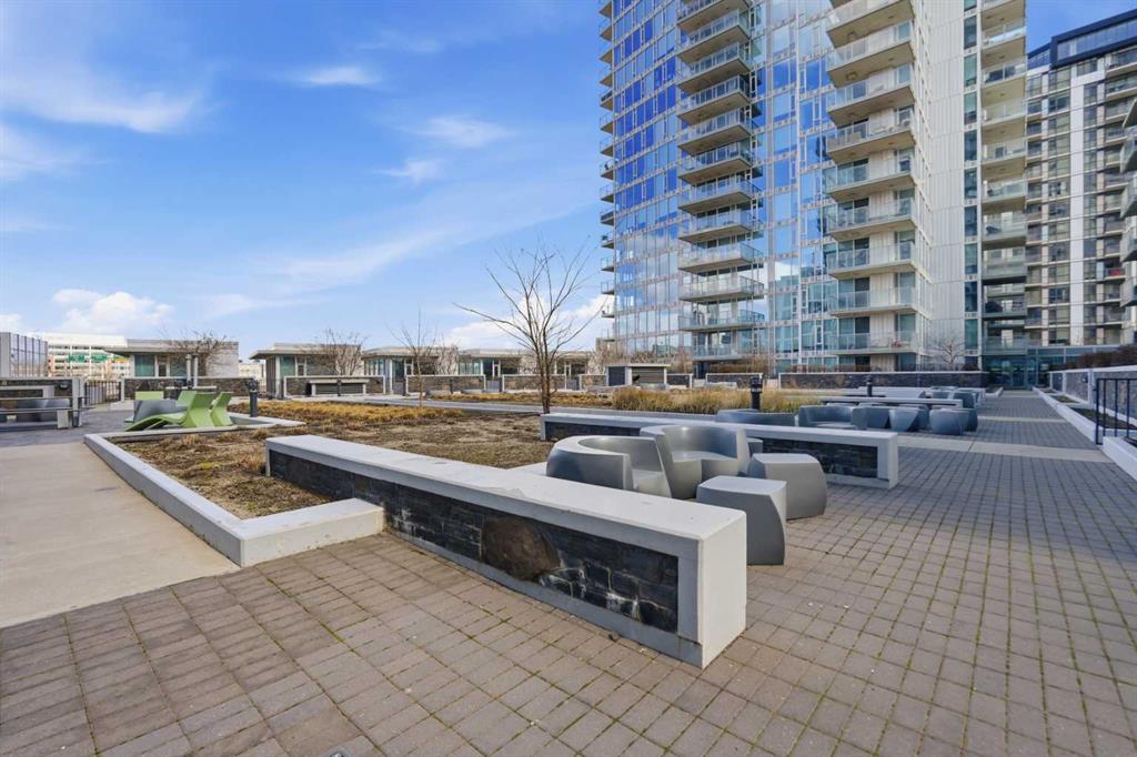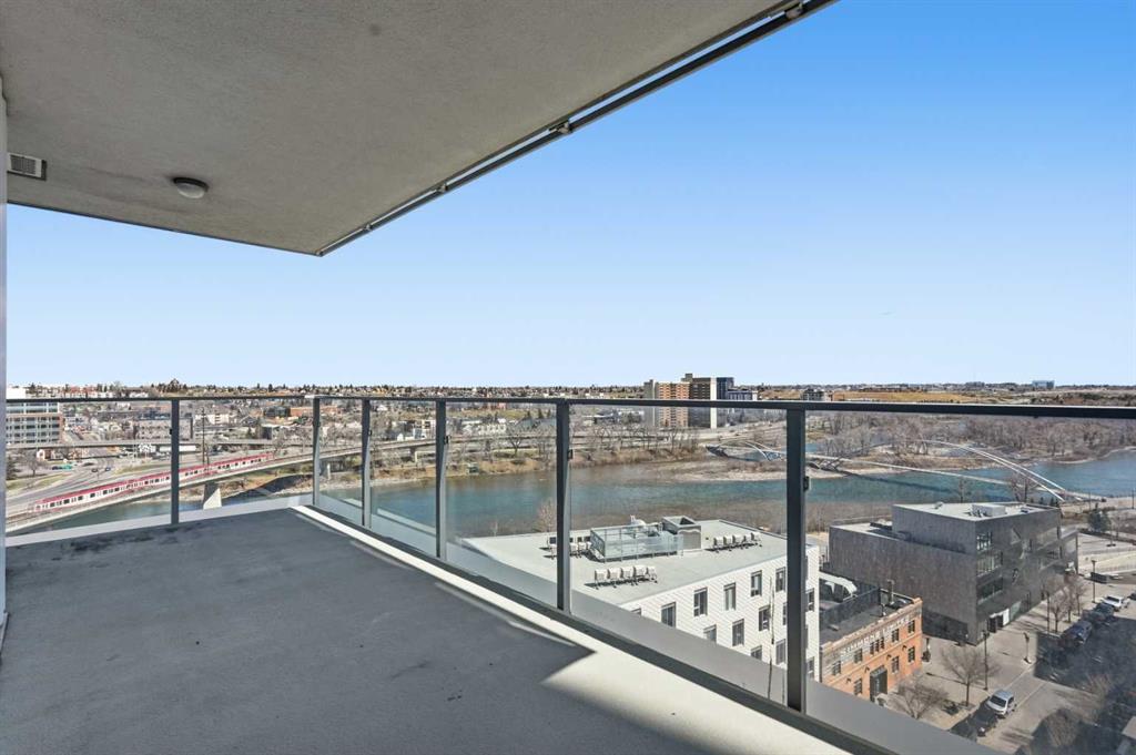 Welcome to Evolution in Calgary’s vibrant East Village. This well-appointed 2 bed, 2 bath + den unit which offers 1,097 sq. ft. of thoughtfully designed living space, featuring unobstructed NE river views from the 12th floor. Enjoy modern concrete construction, floor-to-ceiling windows, and a bright, open-concept layout that balances downtown convenience without compromising on space. The home showcases 2 spacious bedrooms, including a primary retreat with dual vanities and a luxurious glass shower and deep soaker tub. The versatile den is perfect for a home office or additional storage. Indoor and outdoor living spaces are ideal for entertaining, complemented by ample in-suite storage and laundry. Additional highlights include secure underground tandem parking, separate storage locker, and full building concierge services. Residents enjoy premium amenities such as a fitness centre, sauna/steam room, owners’ lounge, and a landscaped courtyard with BBQs. Located just steps from the Bow River pathway system, cafés, shops, the Central Library, Studio Bell, and downtown, this home offers the best of urban living in one of Calgary’s most walkable and sought-after communities.