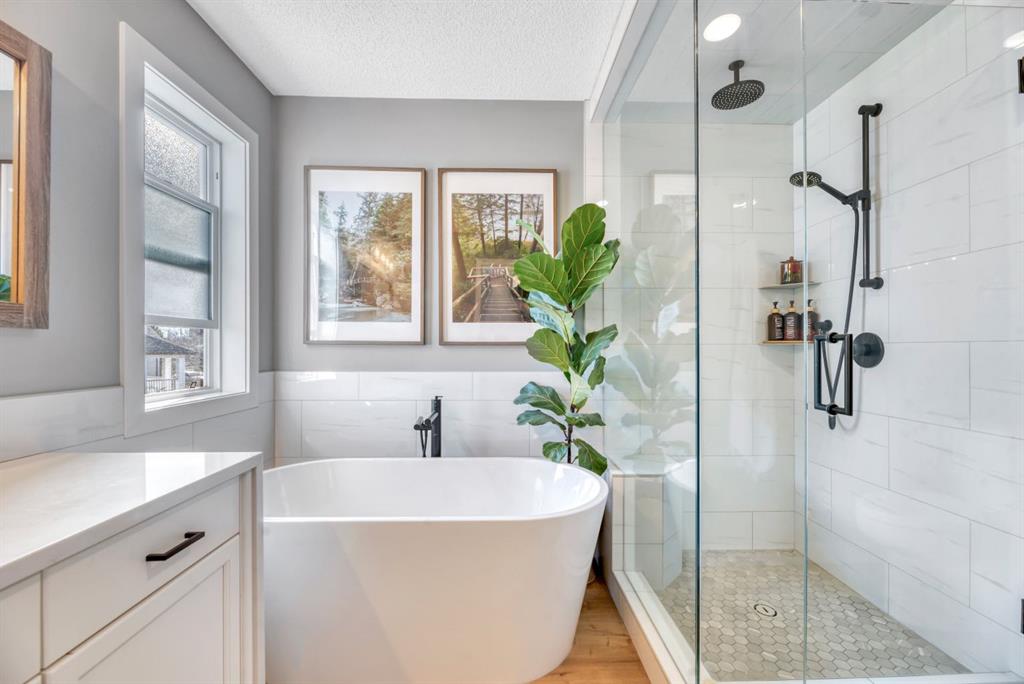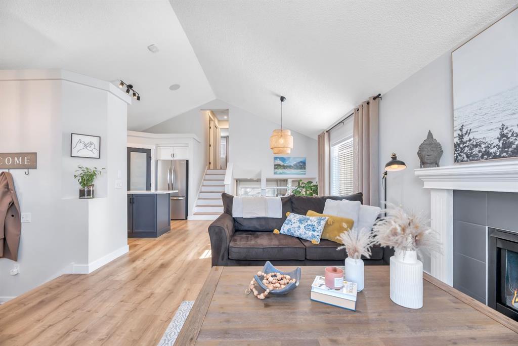 Welcome to this beautifully renovated 4-level split in the sought-after community of Copperfield—where incredible design meets standout curb appeal. Offering approximately 1,550 sq ft of thoughtfully updated living space, this meticulously maintained home is the perfect blend of style, comfort, and functionality. The unfinished basement with laundry offers even more potential! From the moment you step inside, you’re greeted by a bright and airy atmosphere, enhanced by vaulted ceilings and a warm yet modern colour palette. The main floor showcases stylish vinyl plank flooring (throughout the home, no carpet) and a spacious great room anchored by a contemporary gas fireplace with tile surround—creating a cozy yet sophisticated focal point. The kitchen has been tastefully redone with clean cabinetry, quartz counters, picket backsplash, stainless steel appliances, and an upgraded pantry, making it both beautiful and highly functional. A generous breakfast nook overlooks the lower-level family room through a striking glass railing, adding architectural interest and an open-concept feel throughout. Even the entry ways, pantry and closets have been built out and renovated. Upstairs, you’ll find two well-sized bedrooms, including a spacious primary retreat complete with a luxurious 4-piece ensuite featuring a standalone soaker tub and tiled shower. With three full bathrooms in total, this home offers exceptional convenience for families or guests. The lower level features a bright and inviting family room, along with a sizeable den dressed dark and moody that can easily function as a third bedroom, home office, or flex space to suit your lifestyle. Additional highlights include central air conditioning, built-in speakers, and modern upgrades throughout. Step outside to your low-maintenance backyard oasis—fully fenced and beautifully landscaped with mature trees and shrubs. Enjoy summer evenings on the expansive deck that spans the width of the home, with easy access to the double detached garage. Ideally located close to parks, pathways, schools, and all the amenities Copperfield has to offer, this home delivers the perfect balance of lifestyle and location.