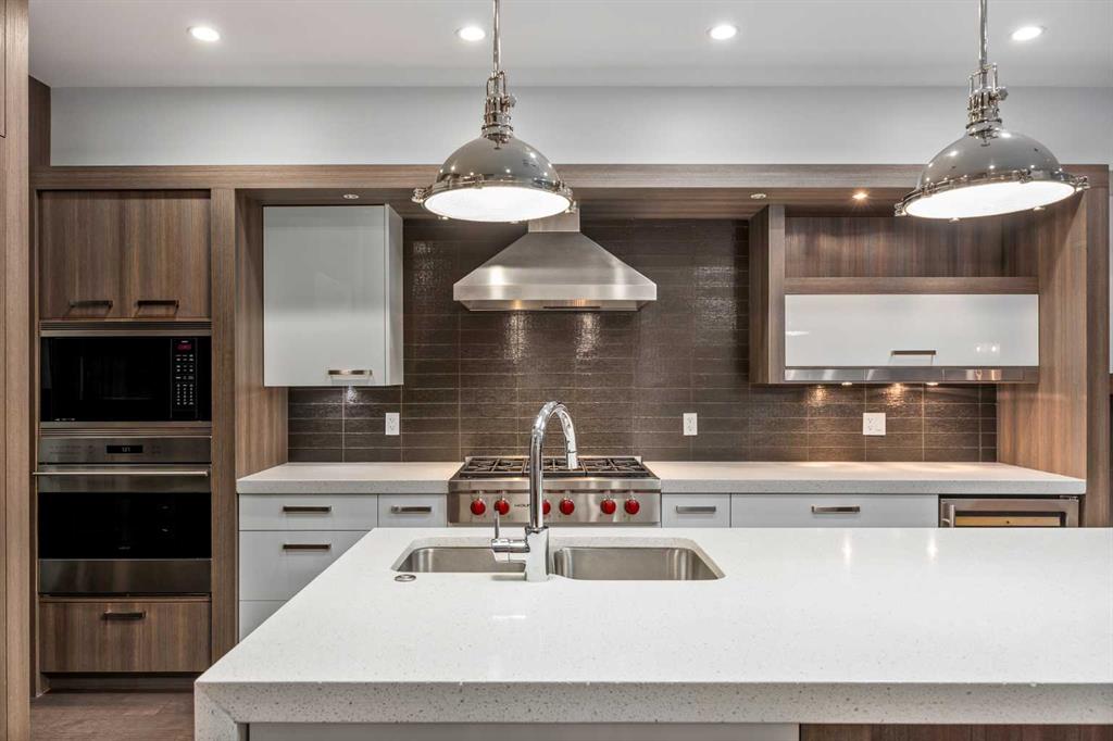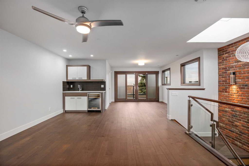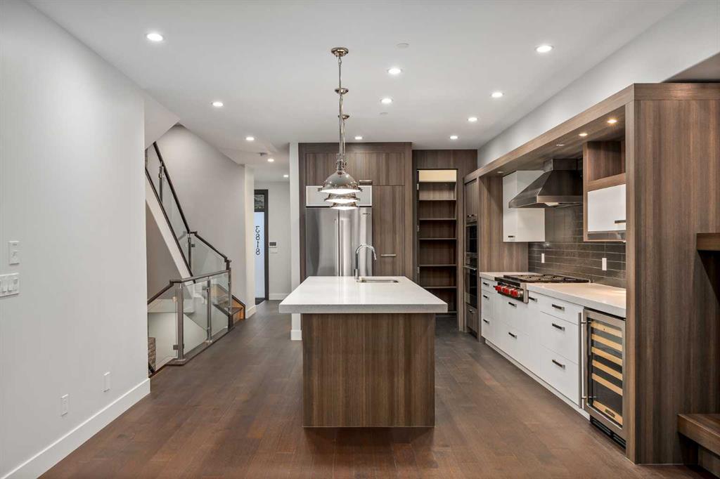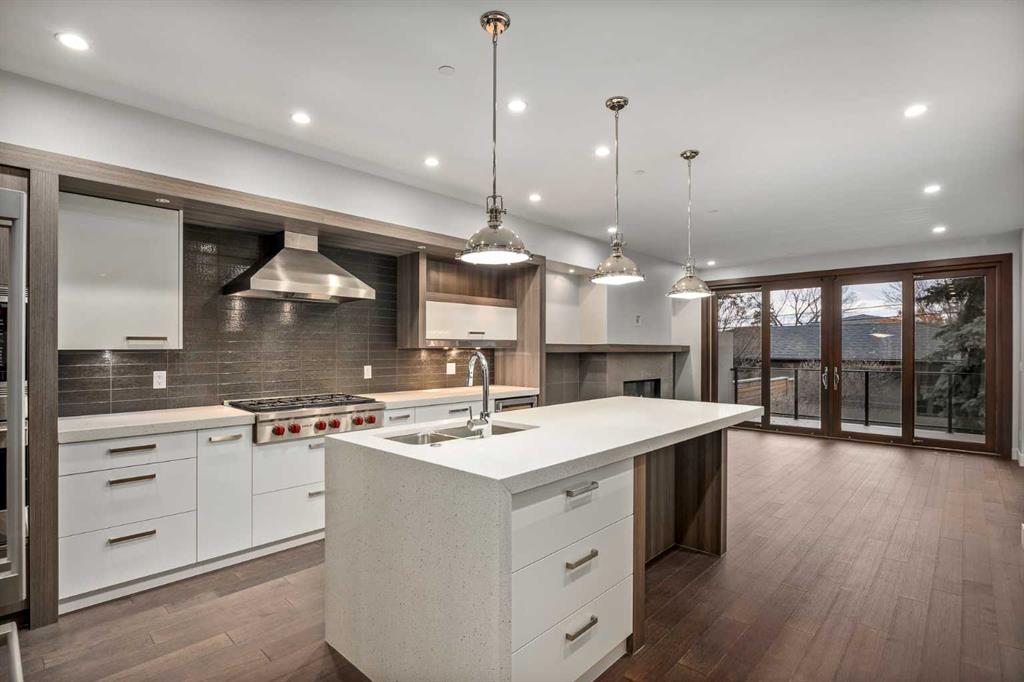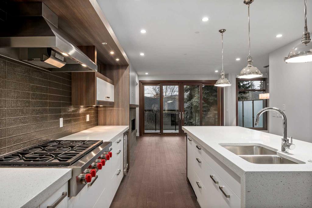 This, renovated, better than new modern home is located in desirable, prestige and secure SW community of Altadore. Contemporary 3 storey , featuring hardwood throughout 3 levels, cool brick wall, 9'ceilings, 8' solid core doors, metal with glass railings, 3 fireplaces, in floor heat and much more. On the main floor you will find open kitchen with Wolf appliances, walk-in-pantry and custom cabinetry, living room with cozy fireplace and sliding door to a spacious patio. Convenient front of the house main floor office. On the second level you will enjoy luxurious master retreat with double side fireplace, tub, steam shower and large walking closet. Convenient laundry room and two additional bedrooms. One level up loft, with 3 skylights, full bath, bar and 2 decks with views and fireplace. Basement is fully finished with bedroom, full bath and huge recreation/ home theatre room and storage room. Air conditioning, under ground sprinklers, insulated garage. Home shows amazing. Just move in and enjoy the Summer!