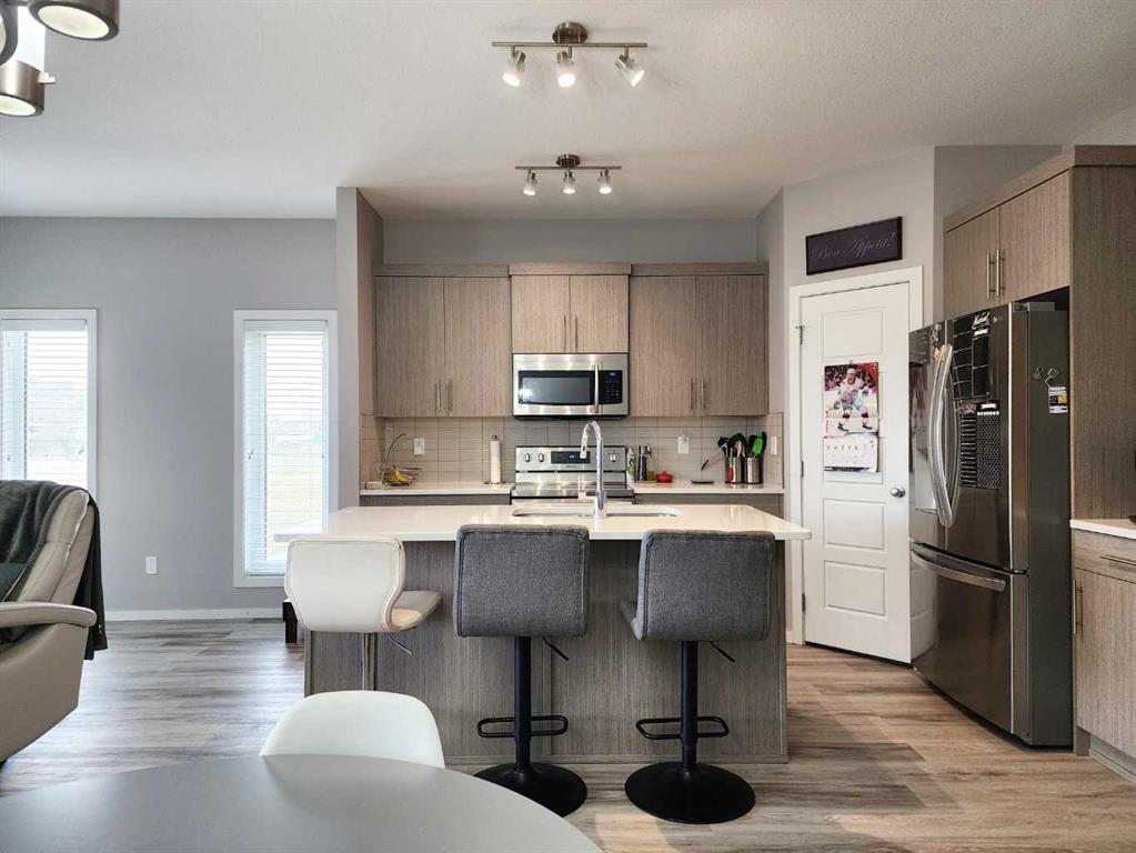 This bright and spacious 4-bedroom end-unit condo offers an exceptional blend of comfort, privacy, and convenience just minutes from the University, schools, restaurants, and everyday amenities. The upper level features laundry room, three bedrooms, including a large primary suite complete with a full ensuite, and a private balcony showcasing beautiful mountain views. The main floor is inviting and functional, with a spacious kitchen perfect for cooking and gathering, and a cozy living room that feels instantly welcoming. The lower level adds impressive versatility with a large basement bedroom and a generous family room ideal for guests, hobbies, or extra living space. A large attached double garage and a spacious foyer enhance both convenience and curb appeal. Thoughtfully designed and wonderfully located, this condo is an excellent opportunity for anyone seeking low-maintenance living without sacrificing space or comfort.