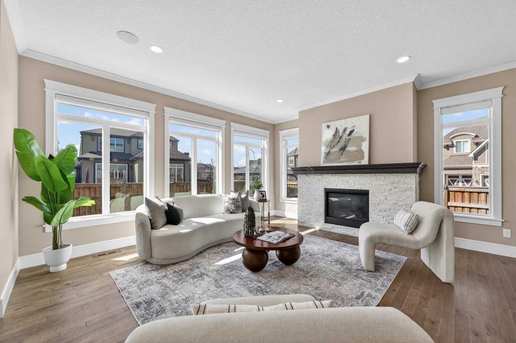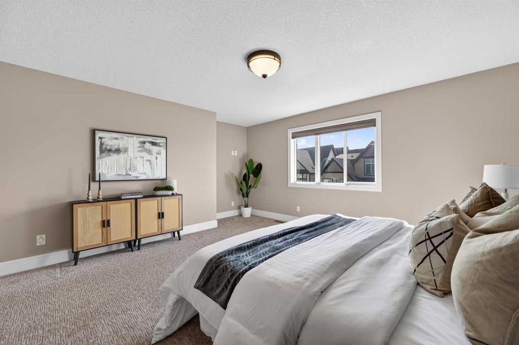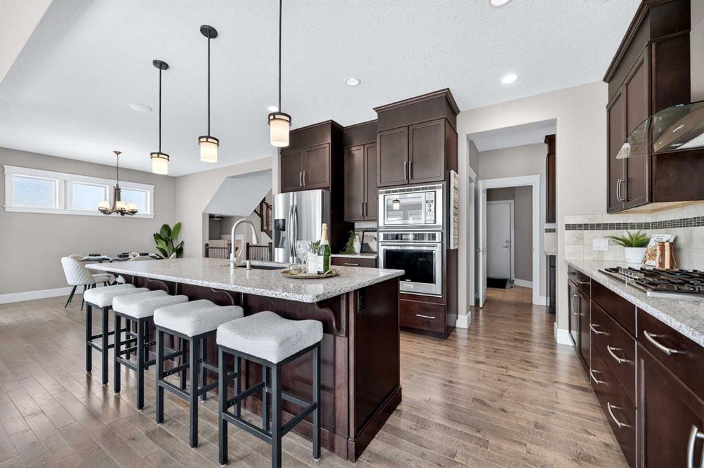 Welcome to a standout corner lot home in the heart of Mahogany where thoughtful design meets everyday comfort and added privacy. The main floor offers a bright, open-concept layout finished with rich hardwood flooring and a spacious kitchen built for both function and style. You’ll find granite countertops, a large central island, pantry, garburator, and a full stainless steel appliance package including stove, oven, fridge, dishwasher, and microwave. The space flows seamlessly into the dining and living areas, creating the perfect setting for hosting or relaxing. A convenient 2-piece bathroom, laundry area, mudroom, and access to the triple attached front garage complete the main level. Upstairs, you’re greeted by a generous bonus/family room highlighted by tray ceilings, along with three well-sized bedrooms and a 5-piece main bathroom. The primary retreat is designed to impress, featuring a walk-in closet and a spa-like 5-piece ensuite with heated floors for added comfort. Upper-level laundry adds even more convenience. The fully finished basement extends your living space with a large rec room, an additional bedroom, a dedicated office or library, a 4-piece bathroom, utility space, and a walk-in closet. Outside, enjoy a low-maintenance lifestyle with artificial turf and exposed aggregate in both the front and backyard. The corner lot placement offers extra space, enhanced curb appeal, and more privacy. A 3-car driveway and electrical outlets under the back patio make outdoor living and entertaining effortless. With central A/C and a layout that balances luxury and practicality, this is a home that truly delivers—move-in ready and built to be enjoyed.