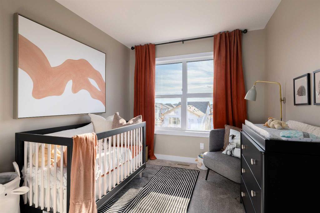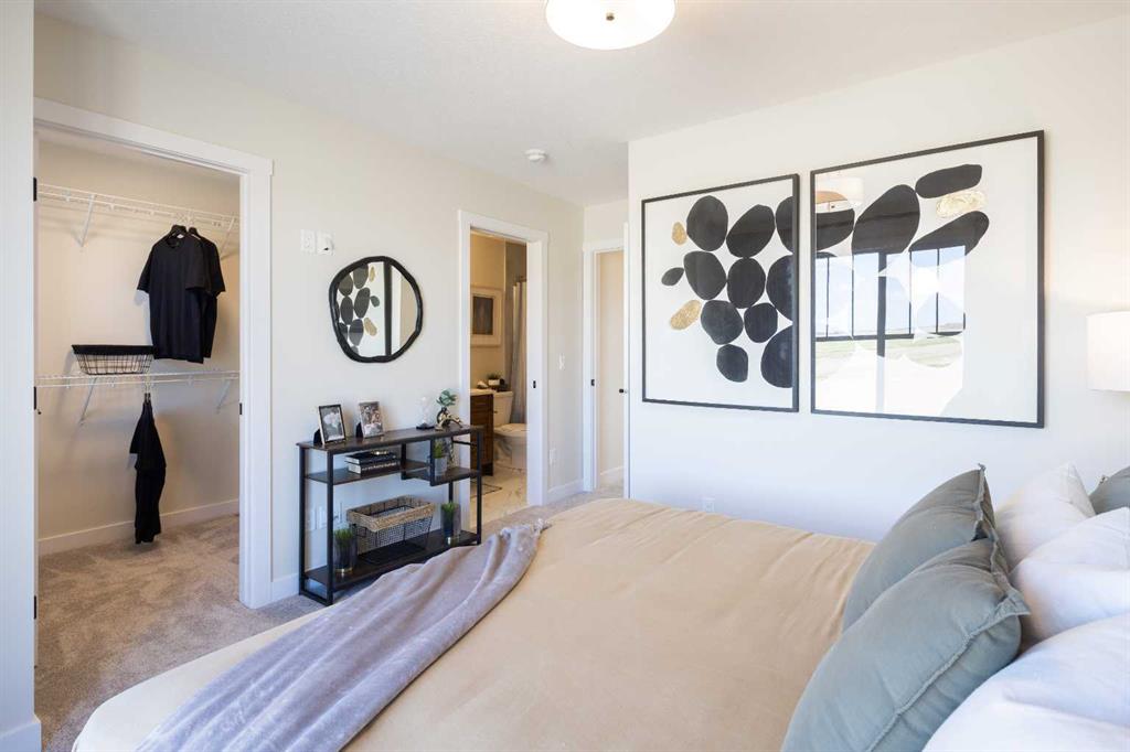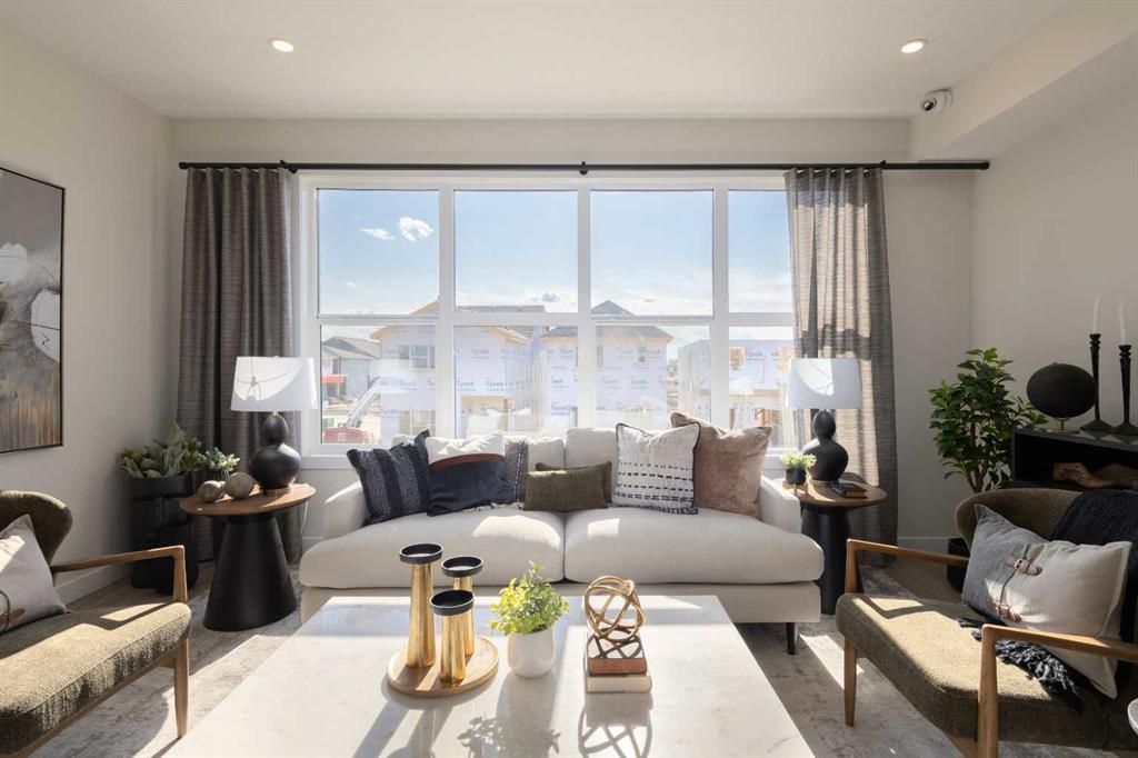** Brand New No Condo Fee Townhome built by Genesis Homes ** Move-in Ready | End Unit | The Avery | 1,788 SqFt | 3 Beds | 2 Full Baths | 2 Half Baths | Double Attached Garage | Main Level Office | Incredible Open Floor Plan | Top of the Line Finishes | Quartz Countertops | Designer Curated Backsplash | Stainless Steel Appliances | Walk-in Pantry | Wide Plank LVP Flooring | Plus Carpet in the Bedrooms | Sizeable Bedrooms | Upper Level Hall Laundry | Smart Automated Home | Balcony | BBQ Gas Line | James Hardie Siding. This stunning Avery model by Genesis boasts 1,788 SqFt, 3 bedrooms, 2 full & 2 half bathrooms and a spacious open floor plan layout that’s perfect for families, professionals, or anyone who loves extra space. The front door opens to a main level foyer with closet space and a flex den. With large windows and high ceilings this space is space has the versatility to be an office space with a peaceful retreat for work or creativity. This level has a half bath added for convenience and functionality. Head upstairs to the 2nd level to a grand floor plan both open and functional. The kitchen is outfitted with sparkling quartz countertops, ample cabinet storage, a gas line and a stainless steel builders appliance package. The centre island in the kitchen is equipped with a barstool seating area making it the perfect space to enjoy small meals and socialize while you cook. The walk-in pantry is a bonus to your dry good storage. The dining room paired with the kitchen makes for an easy stove to table transition. The spacious living room is the perfect area to unwind with your family in the evenings and is ideal for hosting guests. The additional living room flex space is an added bonus to your comfort! Just off the flex room is a door to your private balcony with a gas BBQ line for those summer cook outs! The uppermost level is paired with 3 bedrooms, 2 full bathrooms and hall laundry. The primary bedroom is a personal retreat with a deep walk-in closet and private 4pc ensuite bath with a deep tub/shower combo. Bedrooms 2 & 3 share the main 4pc bath with a single vanity and tub/shower combo. The upper level laundry is a treat as its located near all the bedrooms. The double attached garage secures you 2 year round secured parking and space for seasonal storage. Located just moments from essential amenities and nestled close to a picturesque park, you’ll enjoy easy access to shops, dining, and outdoor activities. Take in breathtaking mountain views and sunsets as you stroll by the serene pond. Genesis Builders Group follows the First-Time Home Buyer GST/HST Rebate to eliminate the 5% GST on qualifying new homes (up to $1 million) for qualifying first time home buyers. Hurry and book your showing at this gorgeous Genesis home today! Photos are representative of 161 Wild Rose Way SE, The Avery Show Home.