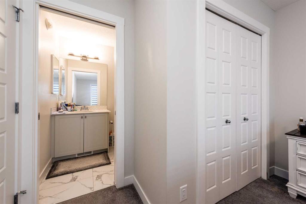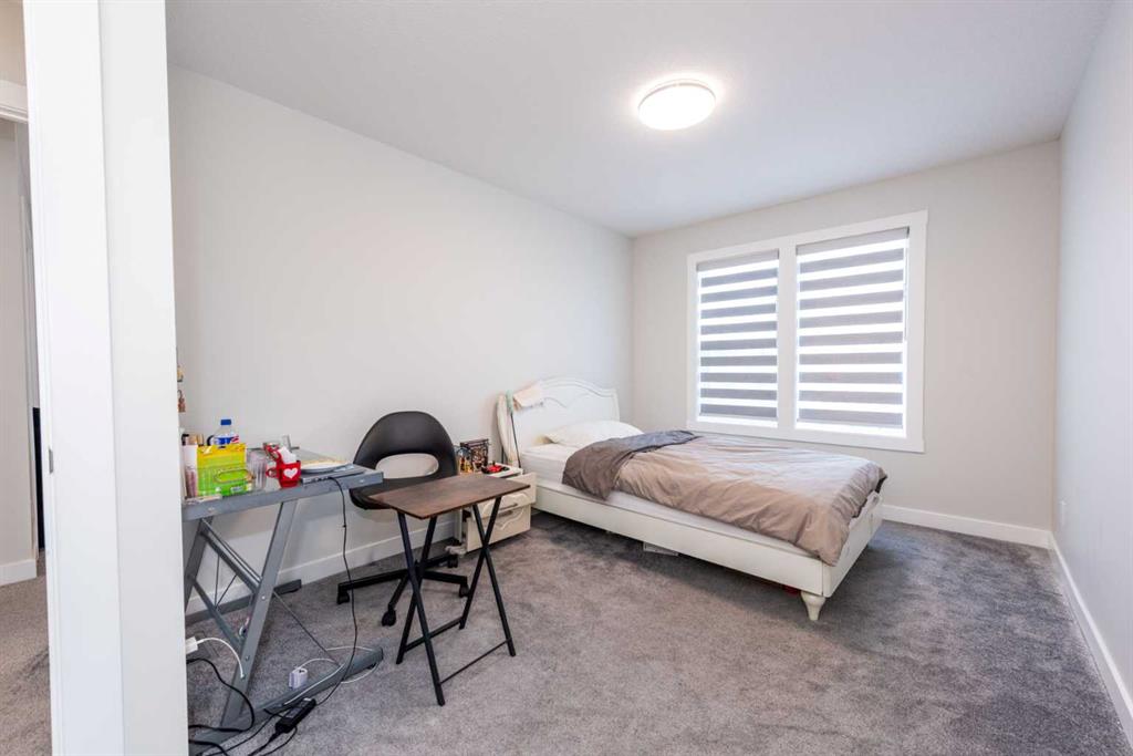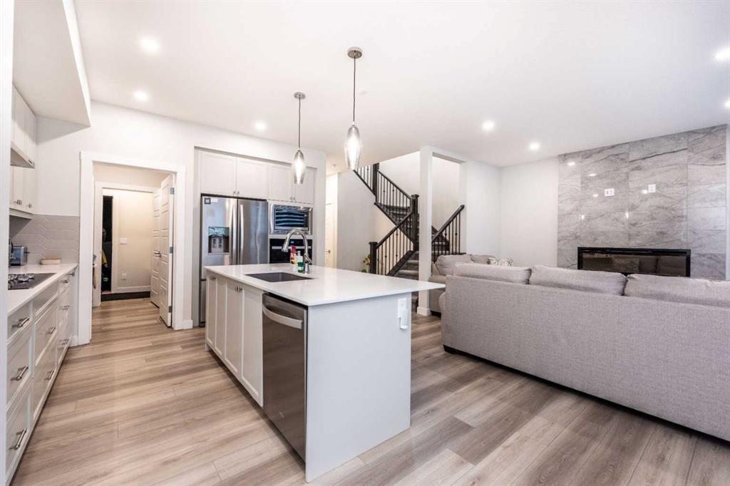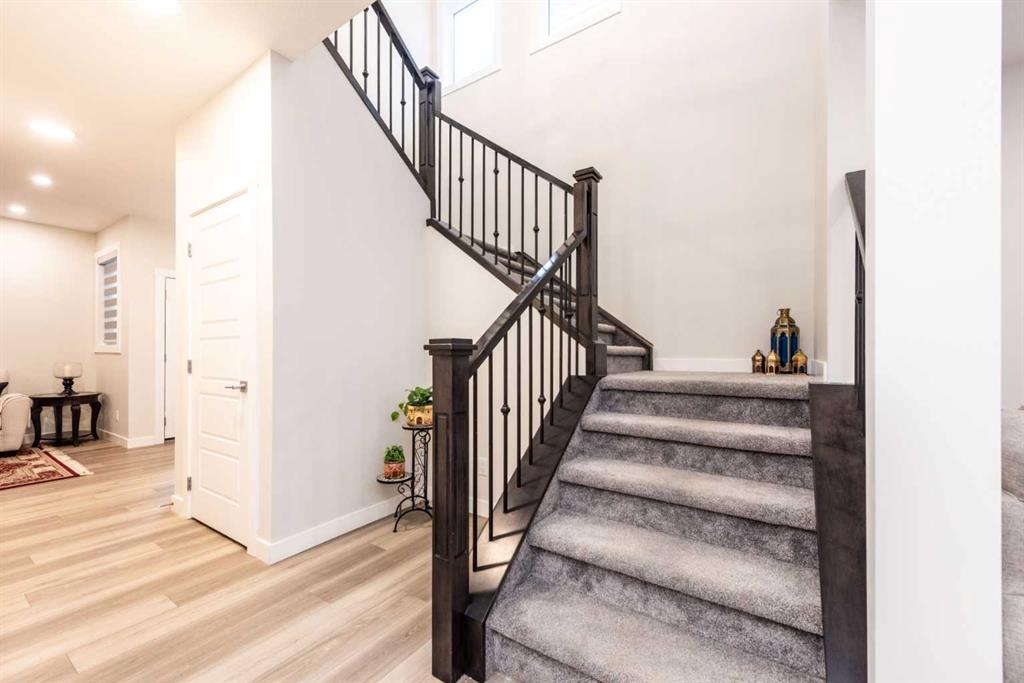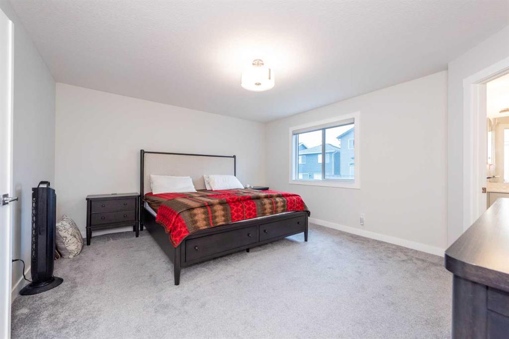 Welcome to this stunning, fully upgraded 2023-built home in the sought-after community of Glacier Ridge, Calgary. Offering 2,490 sq. ft. of thoughtfully designed living space, this well-maintained residence features 4 bedrooms and 4 bathrooms—perfect for growing families or multi-generational living. Step through the impressive double-door entry into a bright and inviting main floor, featuring both a formal living room and a spacious family room highlighted by a sleek linear electric fireplace with a stone surround. The chef-inspired gourmet kitchen boasts soft-close painted cabinetry, quartz countertops, and built-in appliances including an electric cooktop. A separate spice kitchen with gas range and pantry adds both convenience and functionality. The dining area is ideally positioned adjacent to the kitchen, perfect for everyday living and entertaining. Upstairs, you’ll find a luxurious primary retreat complete with a 5-piece ensuite, along with a second primary bedroom featuring its own 4-piece ensuite—ideal for extended family or guests. Two additional generously sized bedrooms share a well-appointed main bath. A bright bonus room provides versatile living space, while the upper-level laundry room with front-load washer and dryer adds everyday convenience. Notable upgrades include quartz countertops throughout, luxury vinyl plank flooring on the main level, upgraded kitchen finishes, a stylish media niche, pot lights throughout, tile flooring in wet areas, and elegant maple railings with iron spindles. Step outside to enjoy the deck and fully fenced yard—perfect for outdoor relaxation. The unfinished basement with separate side entry offers excellent future development potential. Exceptional value in a growing community—book your private showing today