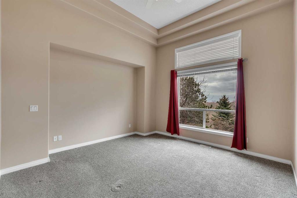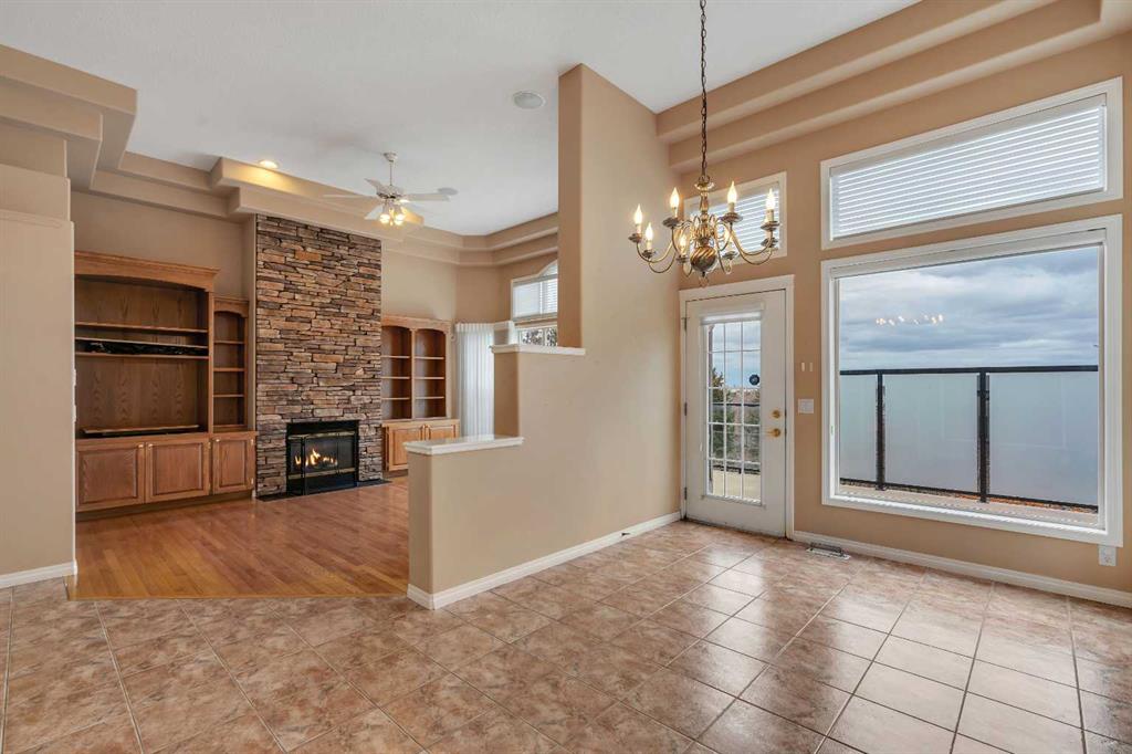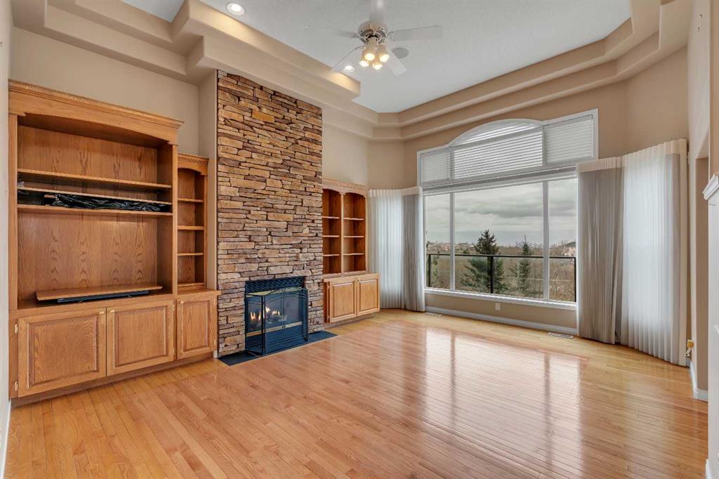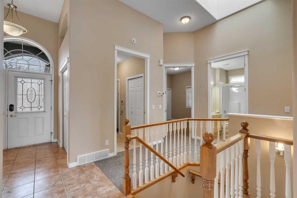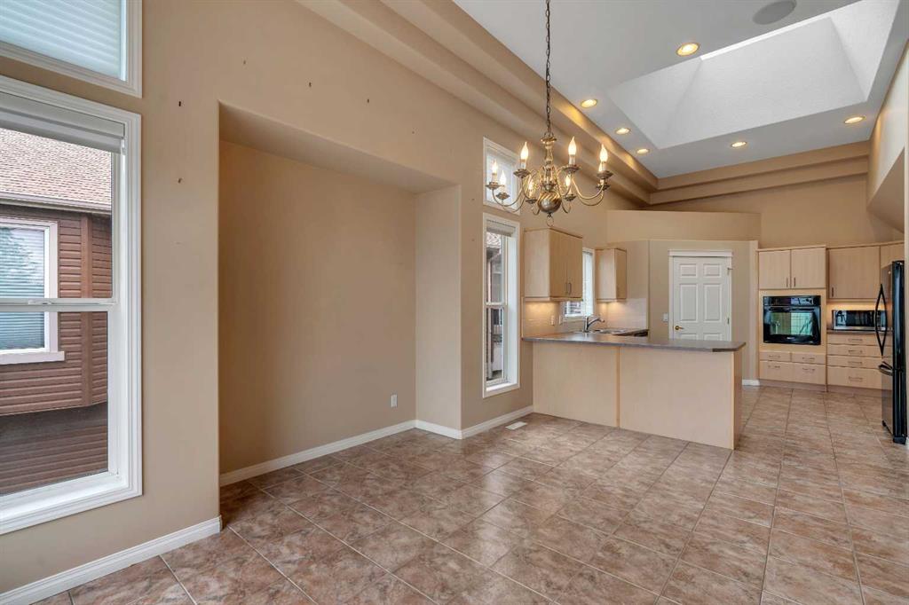 Welcome to 56 Royal Abbey Rise NW, an exceptional bungalow tucked away on a quiet cul-de-sac and backing onto the picturesque Royal Oak Natural Ravine Park. Surrounded by mature estate homes and offering breathtaking city skyline views of downtown, this is a rare opportunity to own a truly distinguished property in one of NW Calgary’s most sought after communities. This unique bungalow is a rare find, offering 5 bedrooms and 3 full bathrooms across an impressive 1,688 sqft of living space above grade. Designed with grandeur in mind, the main floor boasts soaring 12-ft ceilings that create an airy, elegant atmosphere throughout. Upon entry, you are welcomed into an expansive open-concept floorplan thoughtfully designed for both everyday living and upscale entertaining. The main floor features a private office, perfect for working from home, along with the convenience of your very own elevator providing seamless access between levels. Two spacious bedrooms are located on the main floor, including a serene primary retreat complete with a generous 3-piece ensuite and a walk-in closet. The heart of the home showcases a spacious kitchen and family room design, highlighted by large windows that flood the space with natural light. Whether hosting guests or enjoying a quiet evening with family, this inviting area is perfectly suited for any occasion. Step out onto the well-sized balcony directly off the kitchen—ideal for morning coffee or evening relaxation while taking in the surrounding views. The fully developed walk-out basement expands your living space with a thoughtfully designed layout, featuring a large recreation room with a wet bar that opens onto your private backyard oasis. This level also includes three additional spacious bedrooms, a 3-piece bathroom, a dedicated laundry room, and convenient elevator access. Combining luxury, functionality, and an unbeatable location, this one-of-a-kind bungalow offers an extraordinary lifestyle opportunity rarely available.