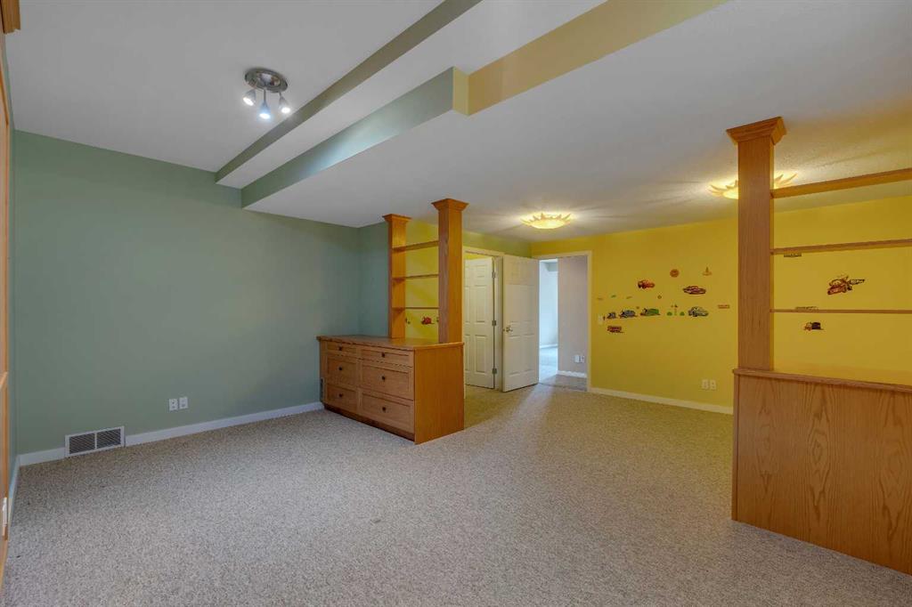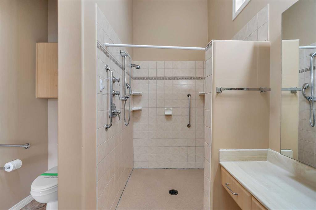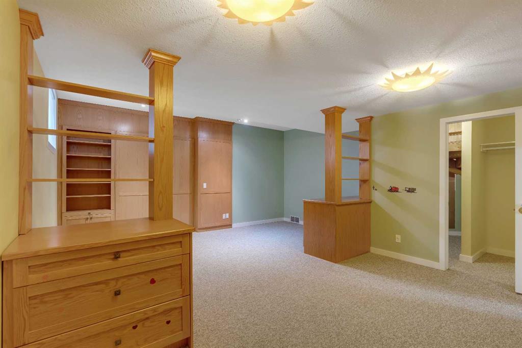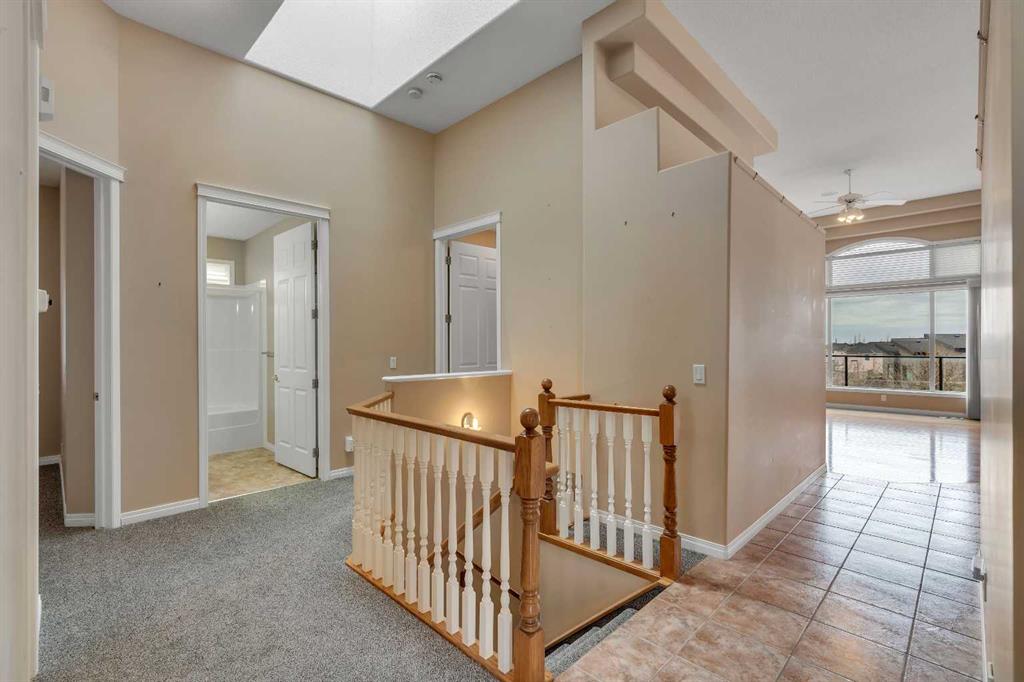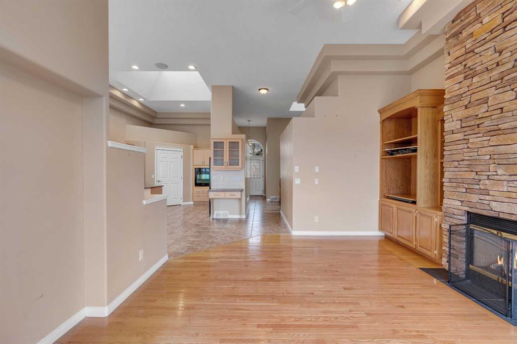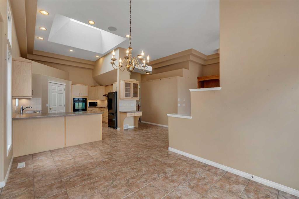 Welcome to 56 Royal Abbey Rise NW, an exceptional bungalow tucked away on a quiet cul-de-sac and backing onto the picturesque Royal Oak Natural Ravine Park. Surrounded by mature estate homes and offering breathtaking city skyline views of downtown, this is a rare opportunity to own a truly distinguished property in one of NW Calgary’s most sought after communities. This unique bungalow is a rare find, offering 5 bedrooms and 3 full bathrooms across an impressive 1,688 sqft of living space above grade. Designed with grandeur in mind, the main floor boasts soaring 12-ft ceilings that create an airy, elegant atmosphere throughout. Upon entry, you are welcomed into an expansive open-concept floorplan thoughtfully designed for both everyday living and upscale entertaining. The main floor features a private office, perfect for working from home, along with the convenience of your very own elevator providing seamless access between levels. Two spacious bedrooms are located on the main floor, including a serene primary retreat complete with a generous 3-piece ensuite and a walk-in closet. The heart of the home showcases a spacious kitchen and family room design, highlighted by large windows that flood the space with natural light. Whether hosting guests or enjoying a quiet evening with family, this inviting area is perfectly suited for any occasion. Step out onto the well-sized balcony directly off the kitchen—ideal for morning coffee or evening relaxation while taking in the surrounding views. The fully developed walk-out basement expands your living space with a thoughtfully designed layout, featuring a large recreation room with a wet bar that opens onto your private backyard oasis. This level also includes three additional spacious bedrooms, a 3-piece bathroom, a dedicated laundry room, and convenient elevator access. Combining luxury, functionality, and an unbeatable location, this one-of-a-kind bungalow offers an extraordinary lifestyle opportunity rarely available.