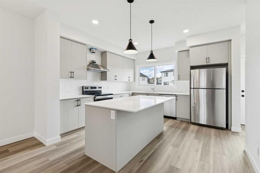 Ready for Immidiate Move In! The Cascade in Esker Park is located at 244 Drystone Walk NW. This 1624 sqft home sits on a corner lot fronting directly onto a central park and features 3 bedrooms, 2.5 baths, and a 2 car detached garage. The main floor offers an open layout with 9 foot ceilings and an upgraded chimney hoodfan. Upstairs includes a spacious family room for added living space. The home also provides a side entry and basement rough ins for potential future development. The front exterior includes Hardie board detailing. This is an exclusive Shane community.