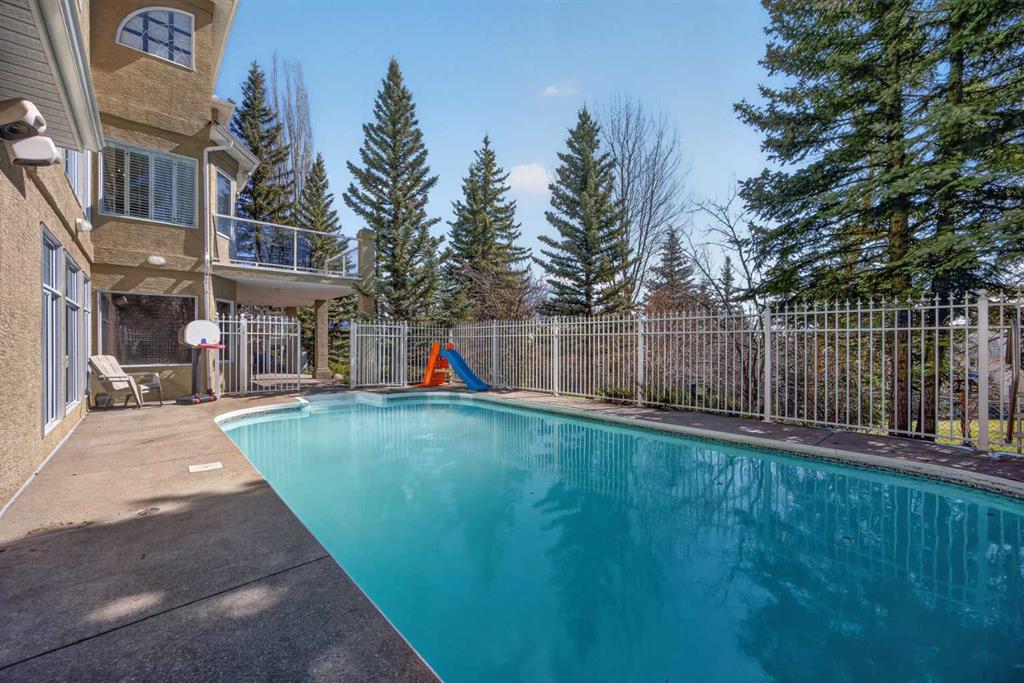 Set on an expansive 8,578 sq ft pie-shaped lot at the end of a quiet cul-de-sac in Evergreen Estates, this exceptional residence offers over 4,870 sq ft of beautifully developed living space, including a fully finished walkout basement, with a private elevated view backing onto green space. From the moment you step inside, the scale and attention to detail are immediately apparent. A grand dual access staircase, luxury crystal chandelier, and custom millwork create a striking first impression, while the thoughtful layout balances refined entertaining with comfortable everyday living. The acoustically designed piano room is also ideal as a whisky lounge, adding a unique and sophisticated touch. The chef-inspired kitchen is built without compromise, featuring top-tier appliances including a Sub-Zero refrigerator, double wall ovens, two dishwashers, and a professional-grade gas range. It connects seamlessly to the formal dining area and main living space, creating an ideal setting for hosting. A second Sub-Zero refrigerator on the lower level adds convenience, while a built-in sound system throughout enhances the overall experience. Designed for comfort and efficiency, the home features in-floor heating, two furnaces and two broilers for optimal climate control. Upstairs, the primary suite is a true private retreat with a fully hidden dressing room and a spa-inspired ensuite. Generously sized secondary bedrooms complete the upper level. The walkout lower level is built for lifestyle, offering a spacious media area, games room, wet bar, and flexible space for a home office, gym, or guest accommodations. Outside, the property transforms into a private, resort-style retreat. Mature landscaping surrounds a fully integrated in-ground pool, complemented by a gazebo and a large gas fire pit. Backing onto green space with no rear neighbours and just moments from Fish Creek Park, the setting offers exceptional privacy and tranquillity. This is a rare opportunity to own a home that delivers on scale, quality, and location in one of Calgary’s most sought-after communities. Book your private showing today.