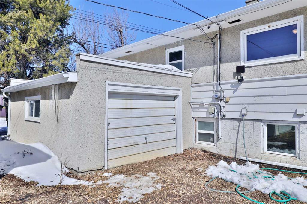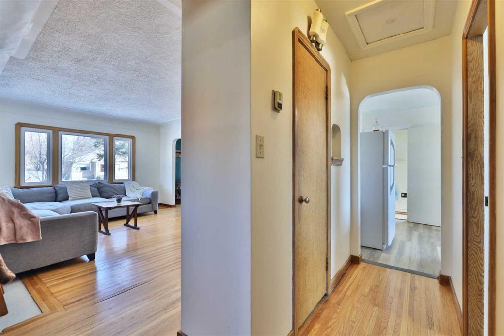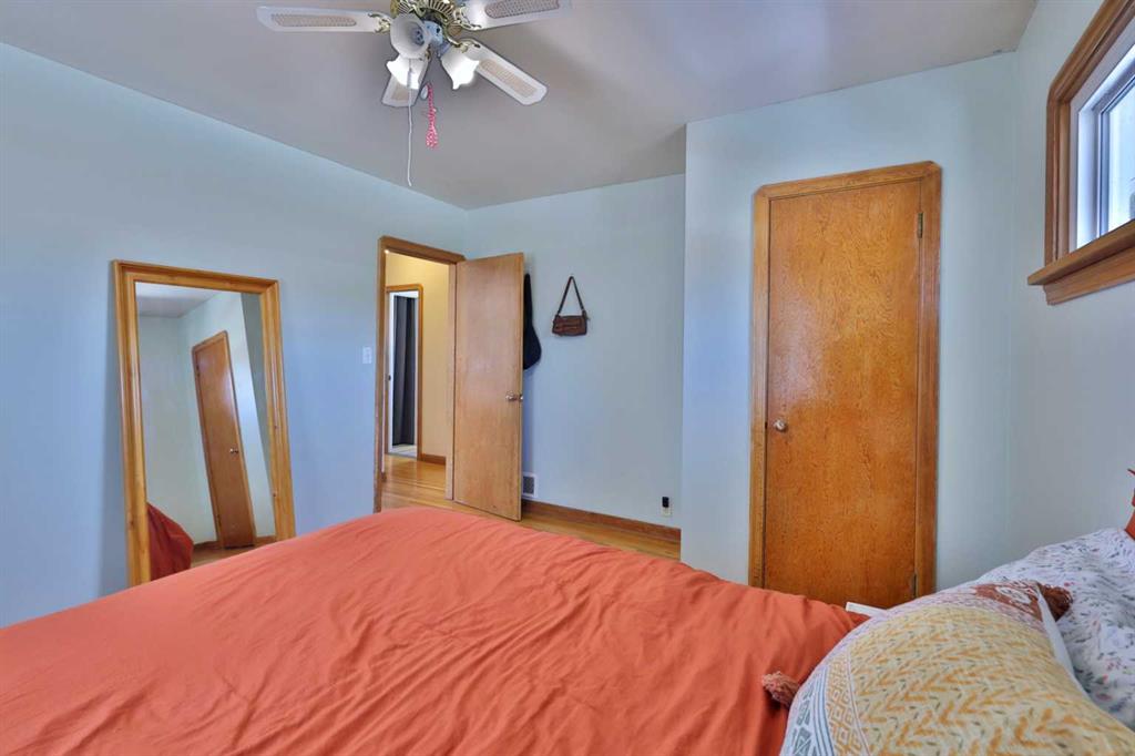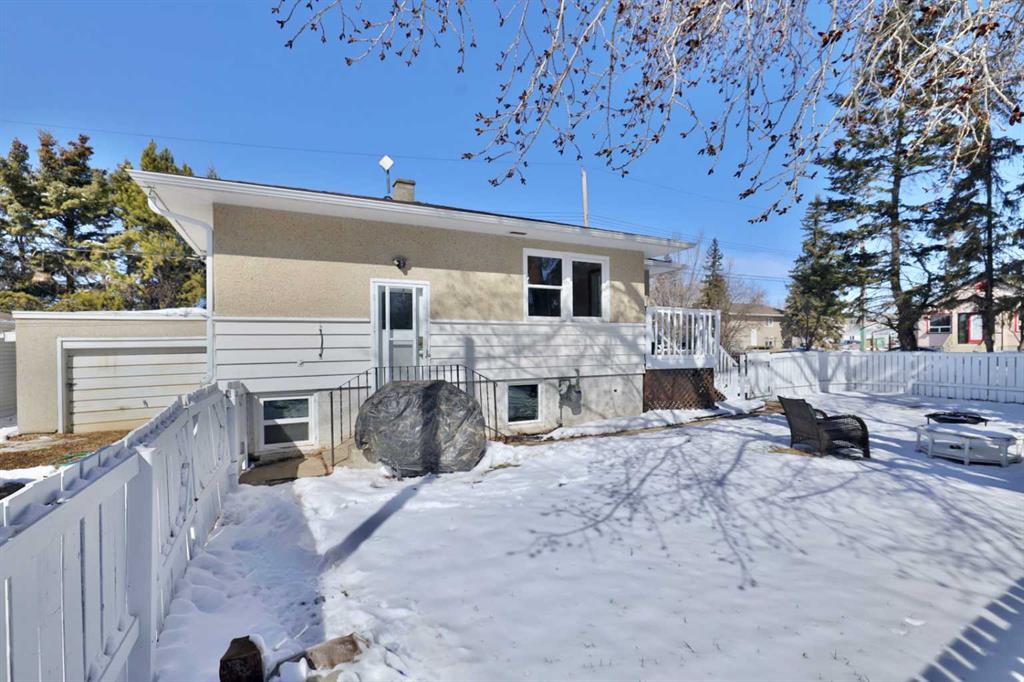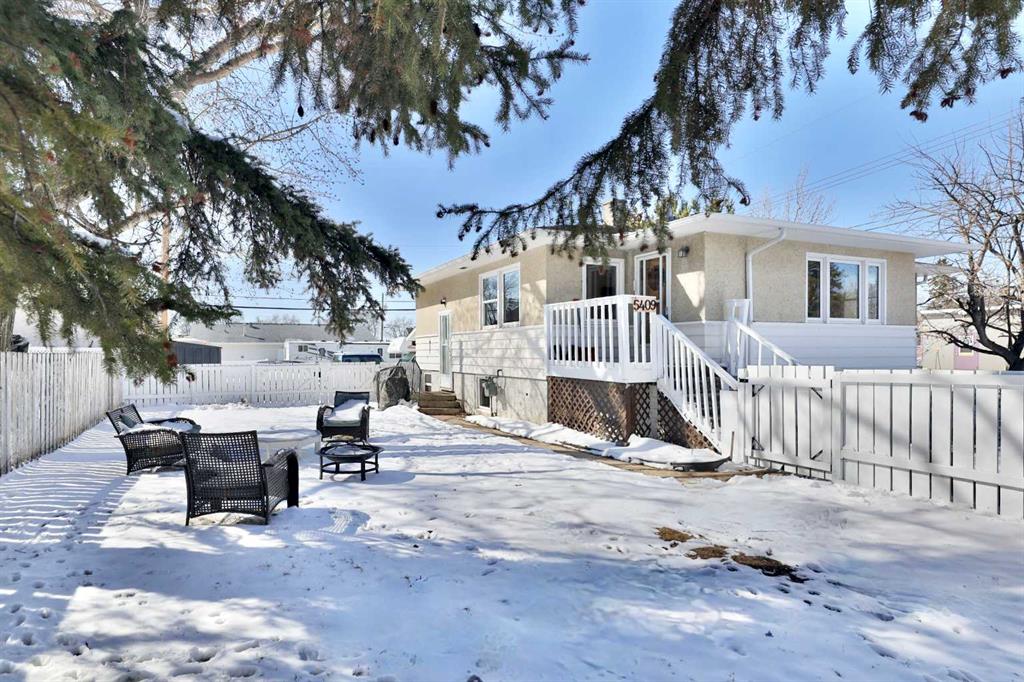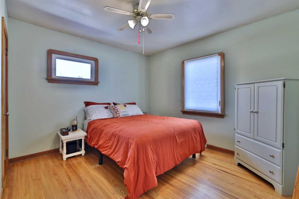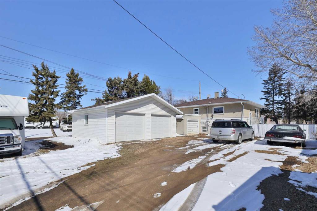 Close to Downtown Camrose you'll find this Charming Home! The white picket fence welcomes you to the property and as you move in, you'll see the side yard to the East, perfectly nestled in the trees. There are few steps up to the main level, which means the home is up and out of the ground bringing BIG basement windows. The main level shows some of the original rounded archways, beautiful wood trim, neat ceiling details and hardwood flooring. There's ample living area, kitchen overlooking the back yard, 2 bedrooms and a 4 pc. washroom. p.s. don't you love it when the bedrooms have TWO windows, giving lots of light? There's a handy side entrance to both the main floor and the basement area. At the bottom of the stairs is storage, utility room and the laundry area. Then, a door to another living space ... kitchen, living room, bedroom and 4 pc. washroom. The home has seen NEW vinyl windows. In the back yard, you'll find a modest single garage which could store a vehicle or belongings, a 24'x24' garage (not heated and wiring isn't hooked up) AND extra parking!!!