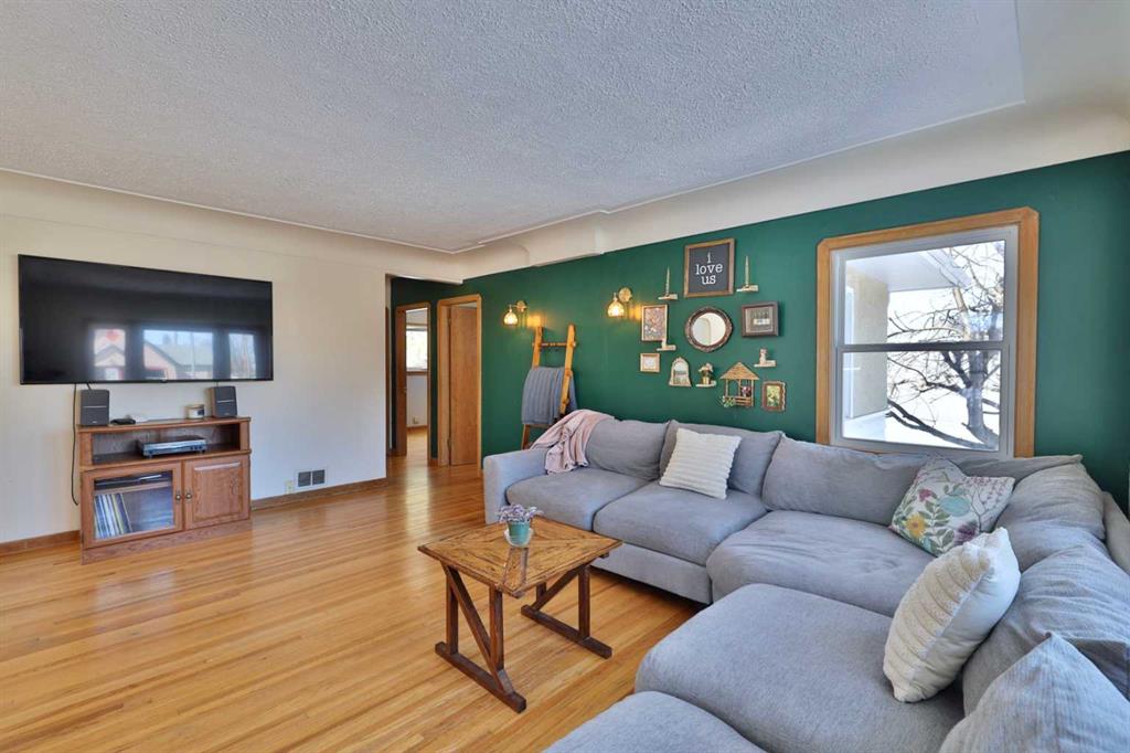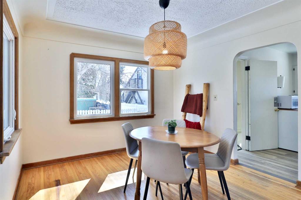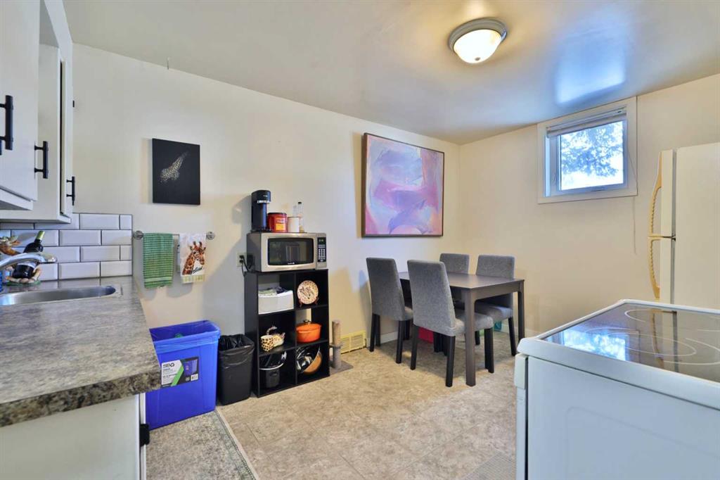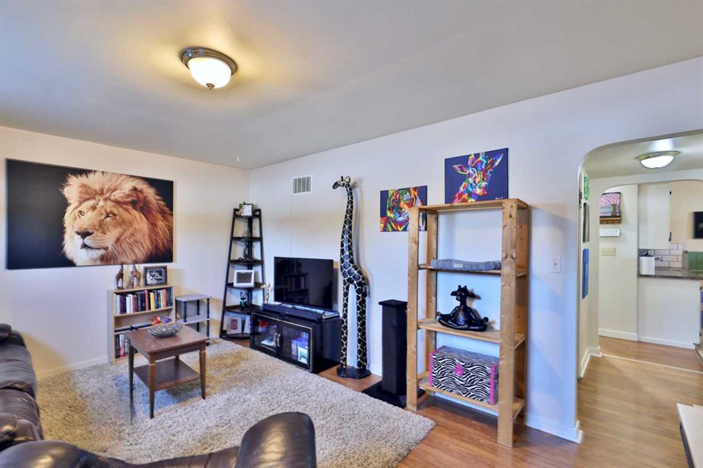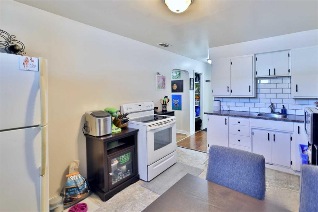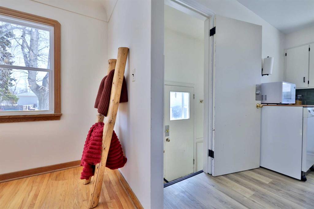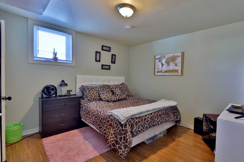 Close to Downtown Camrose you'll find this Charming Home! The white picket fence welcomes you to the property and as you move in, you'll see the side yard to the East, perfectly nestled in the trees. There are few steps up to the main level, which means the home is up and out of the ground bringing BIG basement windows. The main level shows some of the original rounded archways, beautiful wood trim, neat ceiling details and hardwood flooring. There's ample living area, kitchen overlooking the back yard, 2 bedrooms and a 4 pc. washroom. p.s. don't you love it when the bedrooms have TWO windows, giving lots of light? There's a handy side entrance to both the main floor and the basement area. At the bottom of the stairs is storage, utility room and the laundry area. Then, a door to another living space ... kitchen, living room, bedroom and 4 pc. washroom. The home has seen NEW vinyl windows. In the back yard, you'll find a modest single garage which could store a vehicle or belongings, a 24'x24' garage (not heated and wiring isn't hooked up) AND extra parking!!!