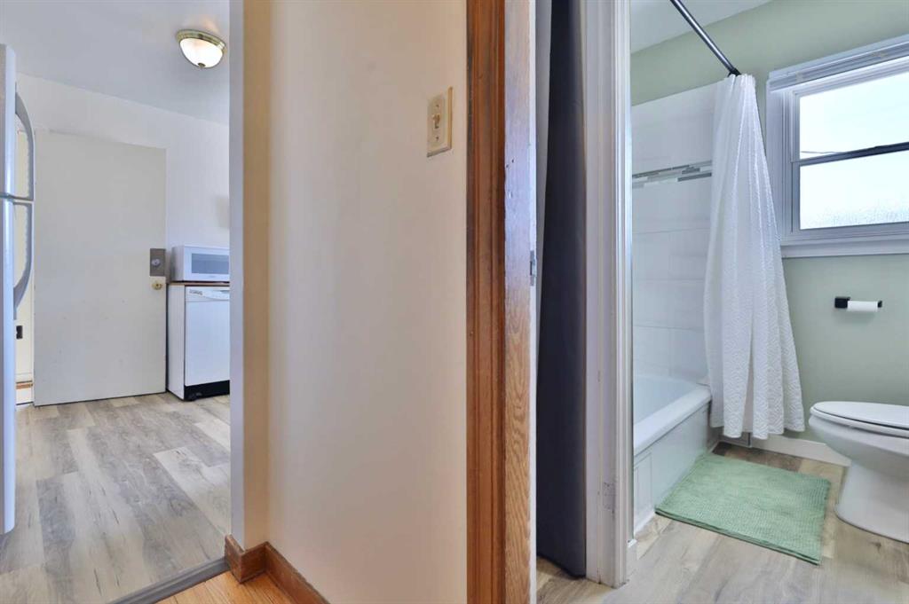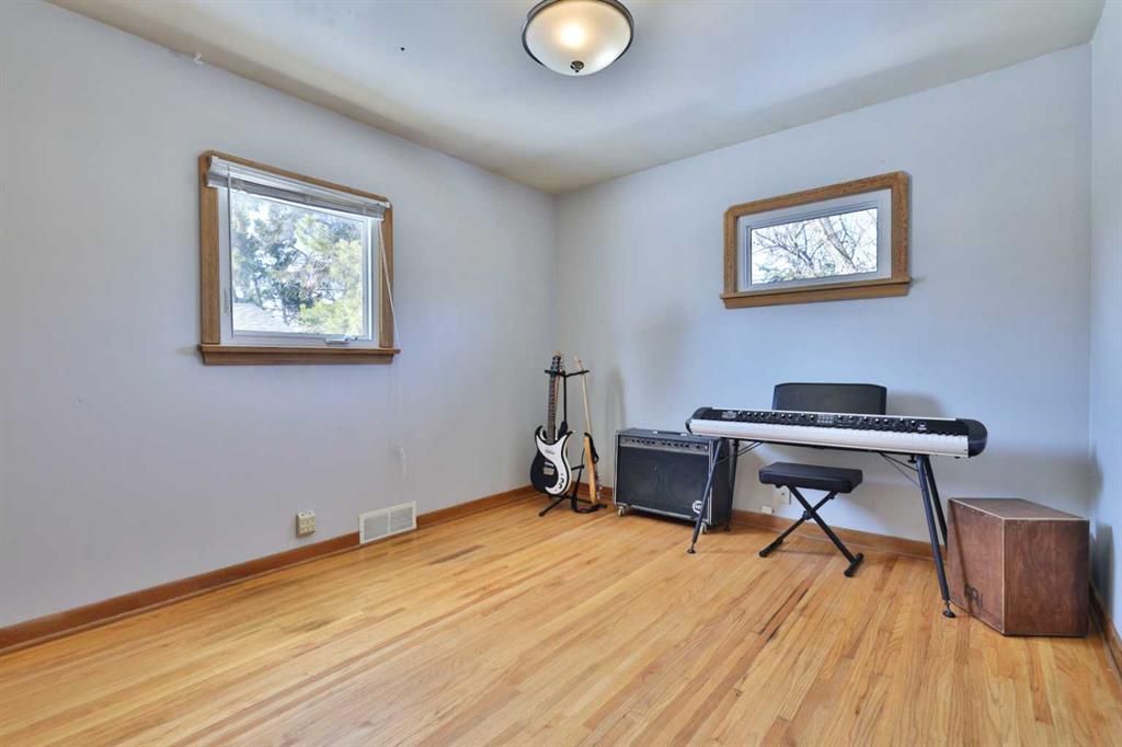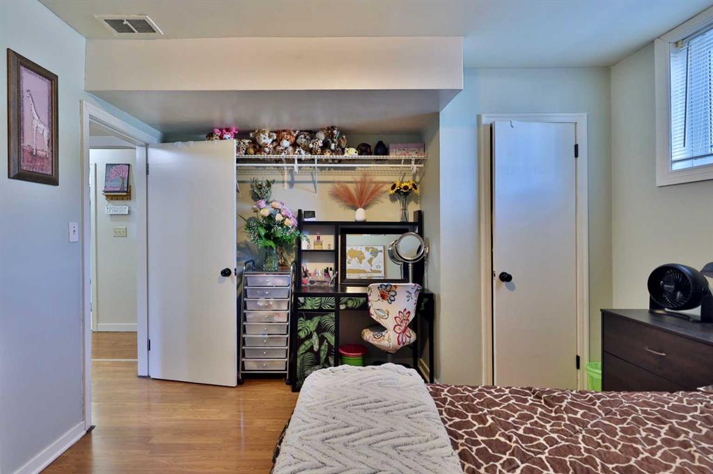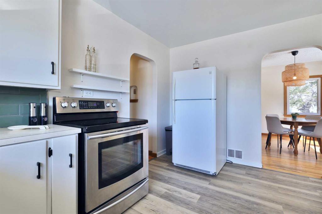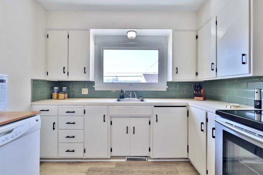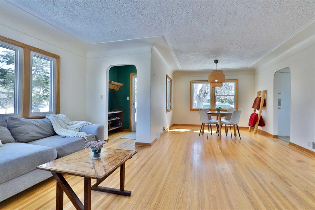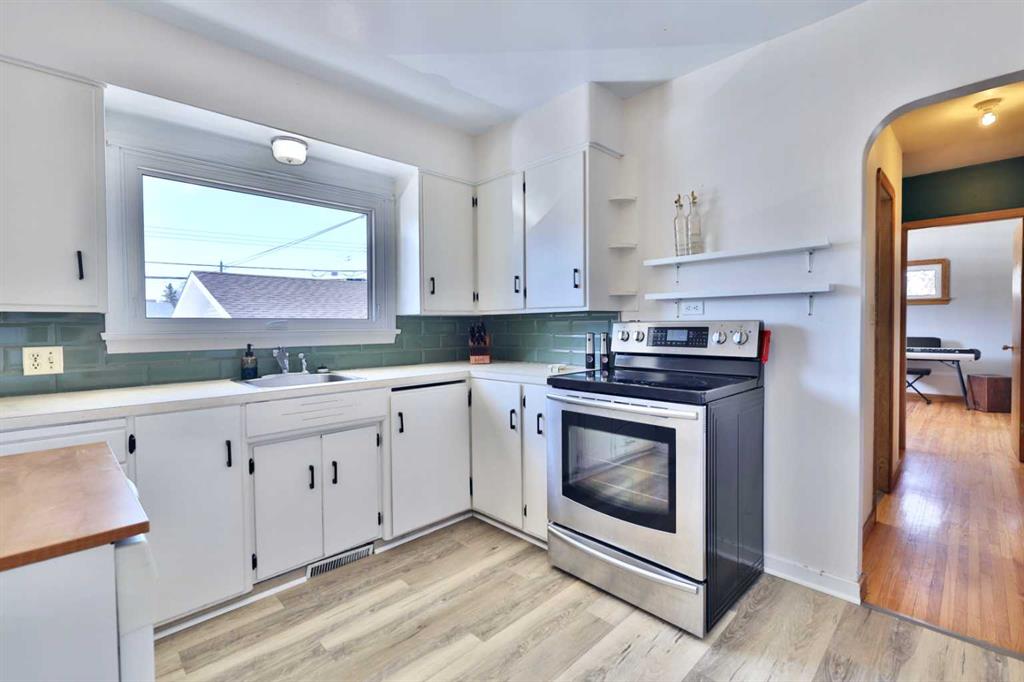 Close to Downtown Camrose you'll find this Charming Home! The white picket fence welcomes you to the property and as you move in, you'll see the side yard to the East, perfectly nestled in the trees. There are few steps up to the main level, which means the home is up and out of the ground bringing BIG basement windows. The main level shows some of the original rounded archways, beautiful wood trim, neat ceiling details and hardwood flooring. There's ample living area, kitchen overlooking the back yard, 2 bedrooms and a 4 pc. washroom. p.s. don't you love it when the bedrooms have TWO windows, giving lots of light? There's a handy side entrance to both the main floor and the basement area. At the bottom of the stairs is storage, utility room and the laundry area. Then, a door to another living space ... kitchen, living room, bedroom and 4 pc. washroom. The home has seen NEW vinyl windows. In the back yard, you'll find a modest single garage which could store a vehicle or belongings, a 24'x24' garage (not heated and wiring isn't hooked up) AND extra parking!!!