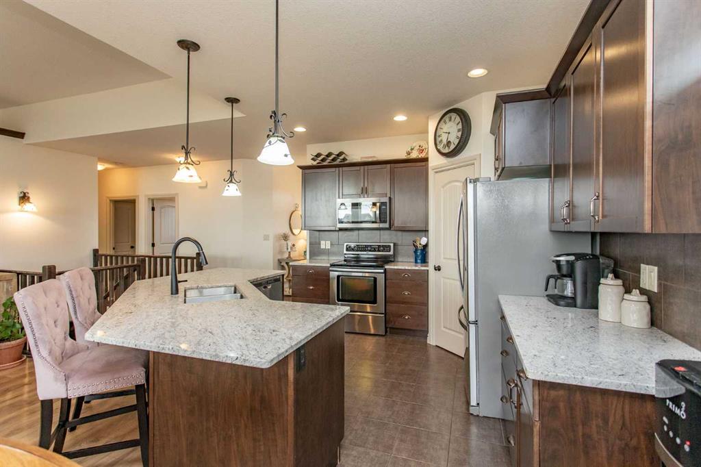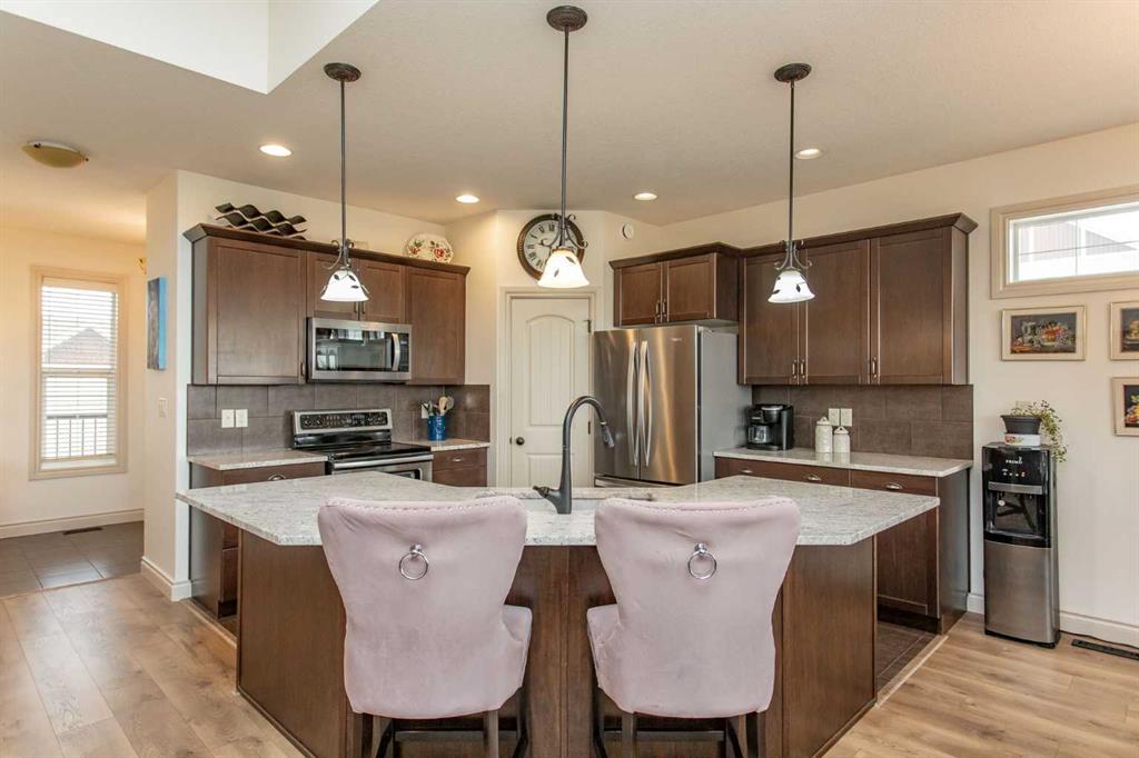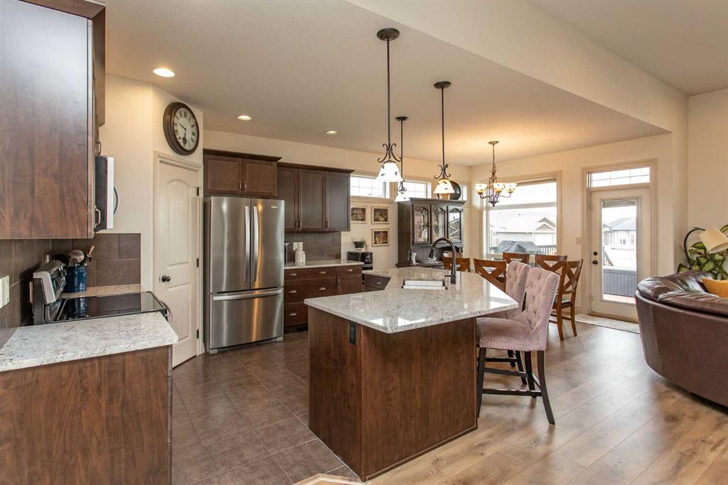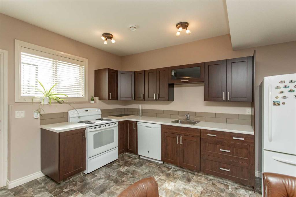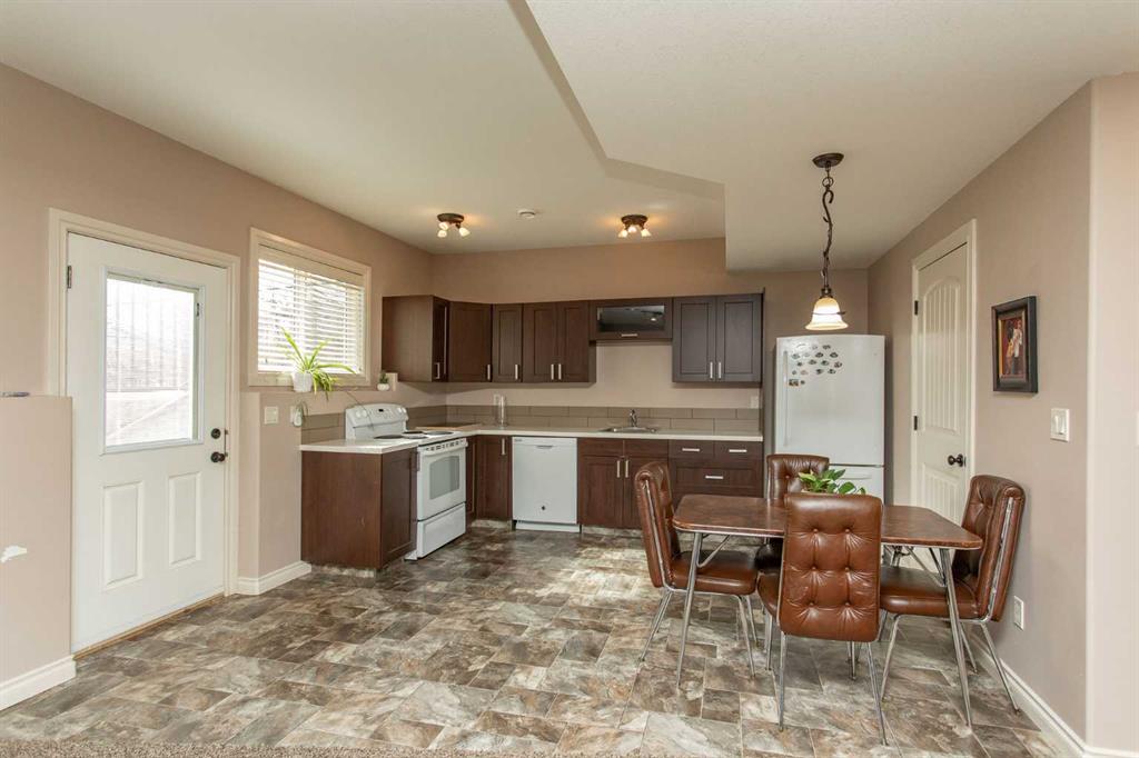 Welcome to this fully finished 1,464 sq ft bungalow offering exceptional versatility and income potential in a sought-after location. Featuring 3 bedrooms on the main floor and convenient main floor laundry, this home is designed for comfortable everyday living. The bright open-concept layout with 9' ceilings is enhanced by beautiful laminate flooring and oversized living room windows. There is a transom window in the dining room for added light adding a touch of elegance as well. The well-appointed kitchen features newer appliances, a generous amount of granite countertops, and a walk-in pantry—perfect for both everyday living and entertaining. The fully developed basement with in-floor heat includes a legal suite with its own private entrance and separate laundry, providing an excellent opportunity for rental income or multi-generational living. Outside, enjoy the spacious back deck with a partially covered section, ideal for year-round comfort and entertaining. Fenced yard with a firepit area to sit around on those warm summer evenings. Additional features include backing on to a green space and rear lane access with extra parking and a double attached garage at the front with access to the main floor. Ideally located close to the scenic walking trails of Elizabeth Lake, public and private elementary schools, and Burman University and within walking distance to No Frills and places to have a coffee with friends. A rare opportunity to own a home that offers both lifestyle and investment appeal, one not to be missed.