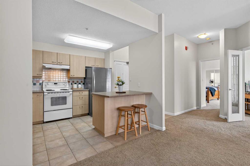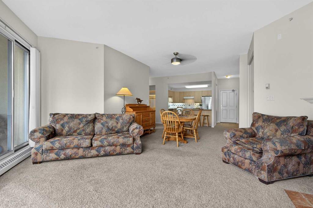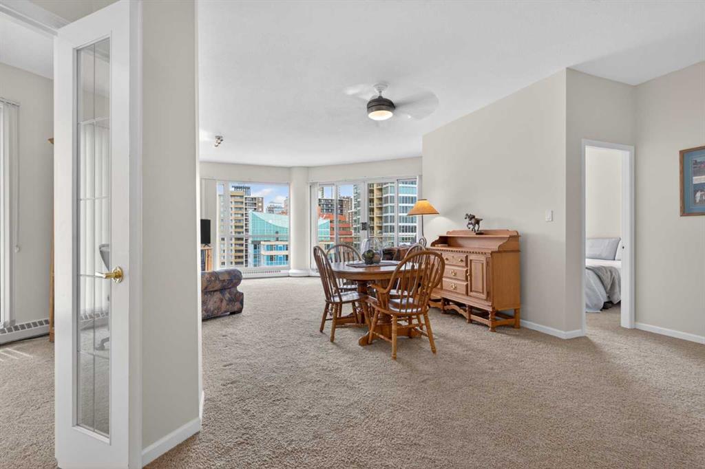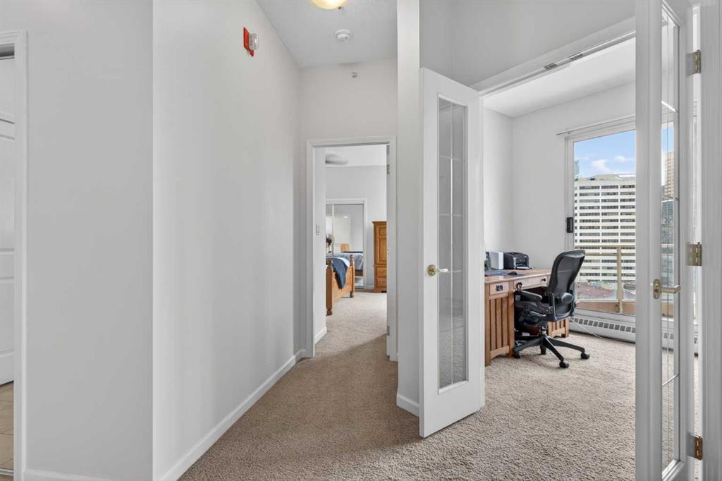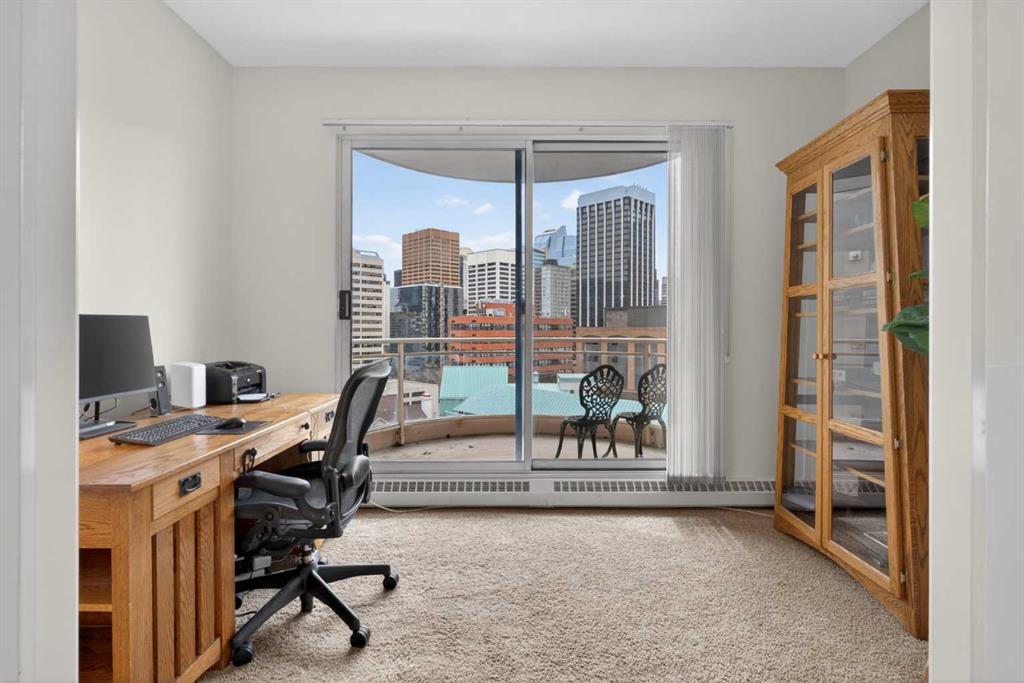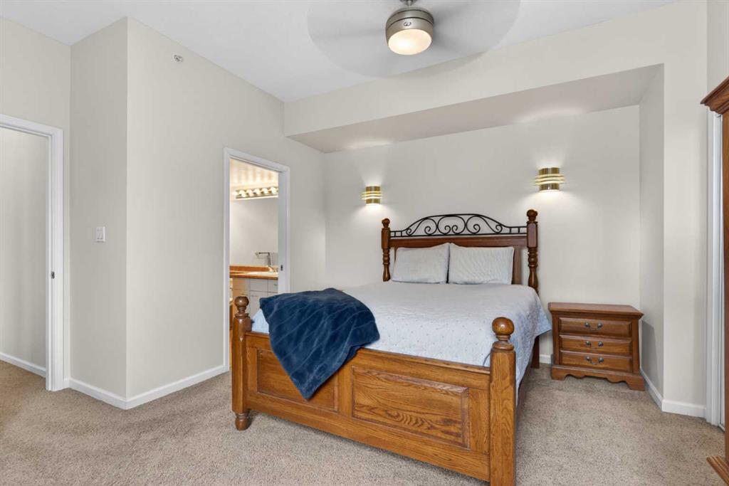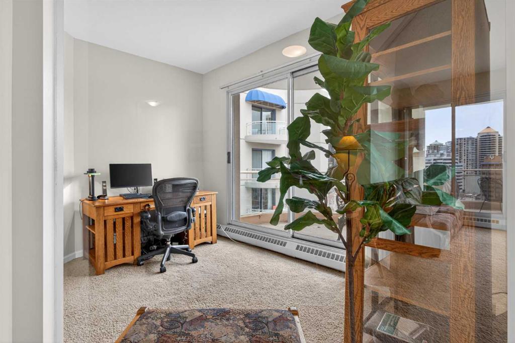 Experience elevated urban living in this spacious 1,220 sq. ft. apartment perched on the 14th floor, offering west facing views and abundant natural light through impressive 10-foot ceilings. This thoughtfully designed 2-bedroom layout features a generous primary suite complete with a 4-piece ensuite and private balcony, along with a versatile den—perfect for a home office or creative space. The bright , spacious living room is anchored by a cozy fireplace and opens onto one of two private patios ; ideal for relaxing or entertaining. This second patio extends your outdoor living options even further. Residents enjoy access to exceptional amenities including a well-appointed fitness center, stylish event room, and a tennis court. Located in a vibrant downtown community of Eau Claire, you’re just steps from scenic Bow River, bike/ walking paths, trendy restaurants, and all the energy of city living. A perfect blend of comfort, style, and convenience—this is urban living at its finest.