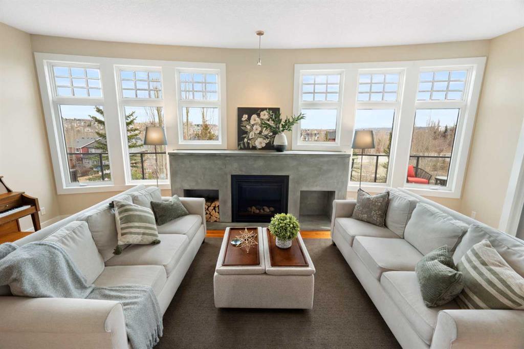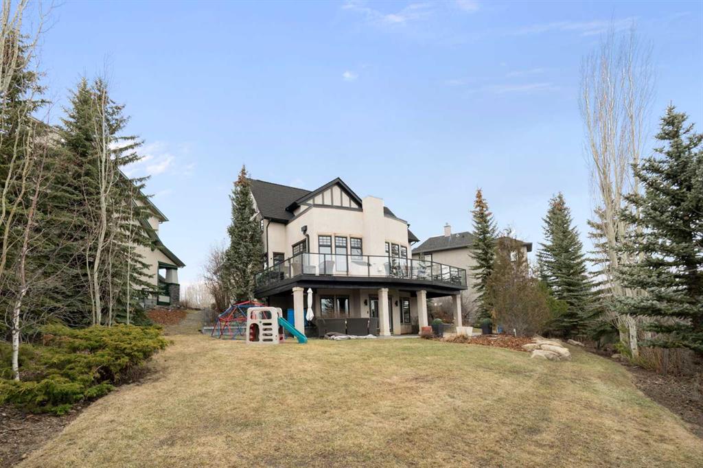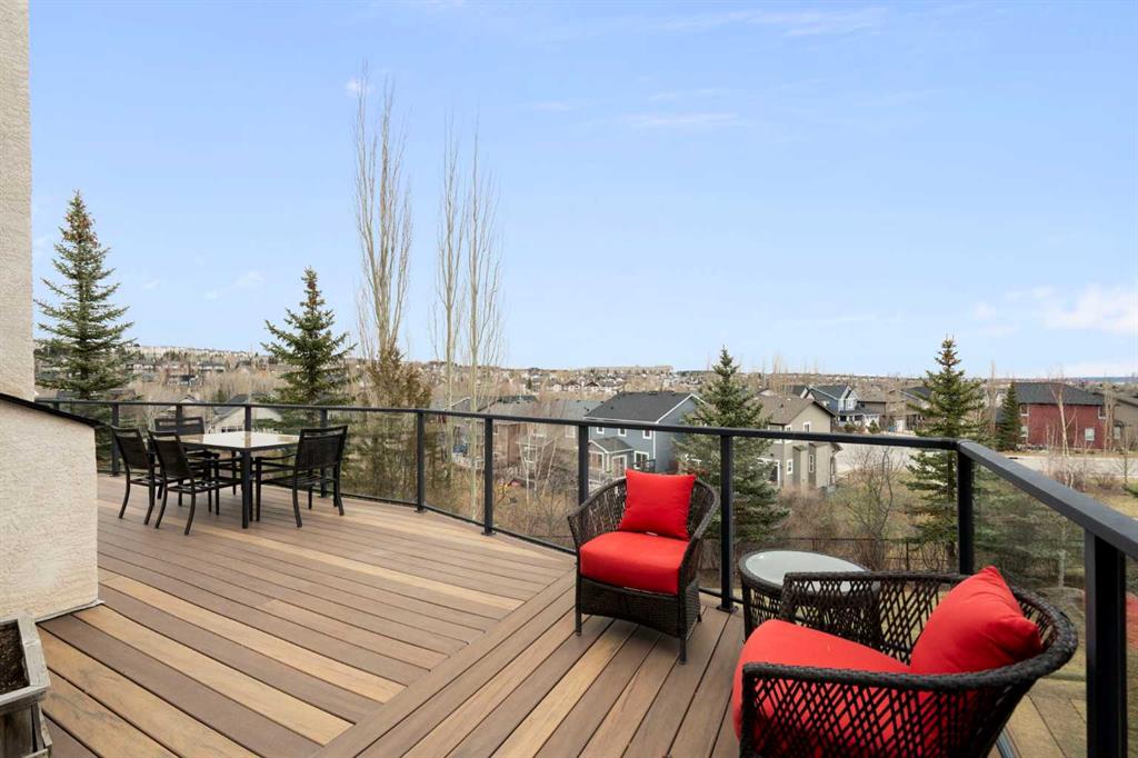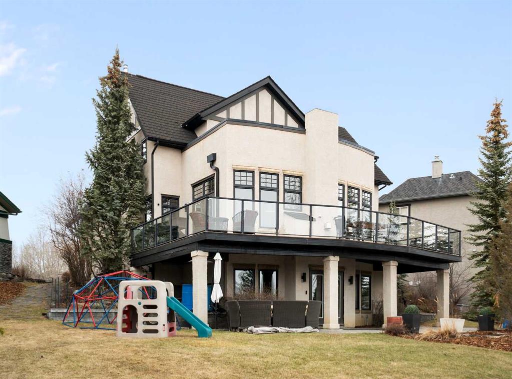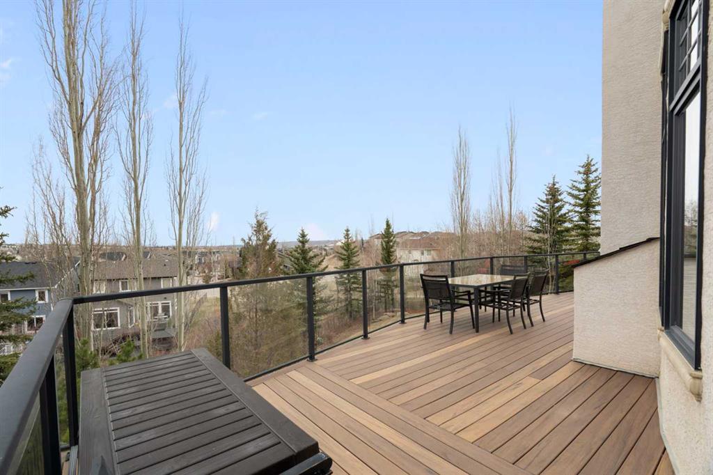 This exceptional family home sits on the largest lot in prestigious Tanglewood, tucked into a quiet cul-de-sac with a park and playground just steps away. Boasting over 3,800 sq ft of developed living space, a tandem 3 car garage and panoramic views of downtown Calgary and Canada Olympic Park, this is a rare opportunity to own a truly special property. The main floor features an elegant formal dining space and sun filled office. The spacious kitchen is the heart of the home, featuring abundant maple cabinetry, stainless steel appliances, a central island, and a dedicated homework station. The adjoining family room is warm and inviting, anchored by a striking concrete mantled fireplace and expansive windows that showcase the beautifully landscaped backyard and sweeping city views. Upstairs, you’ll find three generous bedrooms, a full bath, and convenient upper-level laundry. The primary retreat offers a walk-in closet, built-in storage and a large ensuite. Central air conditioning ensures comfort throughout. The fully finished walk-out lower level is designed for entertaining, complete with a spacious games room, full bar, guest bedroom and full bath. A natural gas fireplace adds warmth and ambiance. Outdoor living is exceptional, with an expansive lower patio and a wraparound composite upper deck featuring glass railing and multiple natural gas hookups—perfect for a BBQ’s, fire tables, and patio heaters. The professionally landscaped yard includes low-maintenance perennial beds and backs onto a natural extension of 12 Mile Coulee, offering a serene wildlife corridor where deer and moose are frequent visitors. This home has been extensively upgraded for peace of mind, including a hail-resistant Euroshield roof with a substantial balance of a 50-year non-prorated warranty, replacement of both furnaces and hot water tanks, and a new garage door opener. Gemstone exterior lighting adds year-round curb appeal. Located less than a 5-minute walk to multiple parks and a city-maintained outdoor winter rink, and close to schools and all amenities, this home blends nature, luxury, and convenience. As part of a well-funded and managed bare land condominium, residents benefit from immaculately maintained green spaces and snow removal after every snowfall. This is an extraordinary opportunity to own a beautifully maintained, thoughtfully upgraded home in one of Calgary’s most sought-after communities.