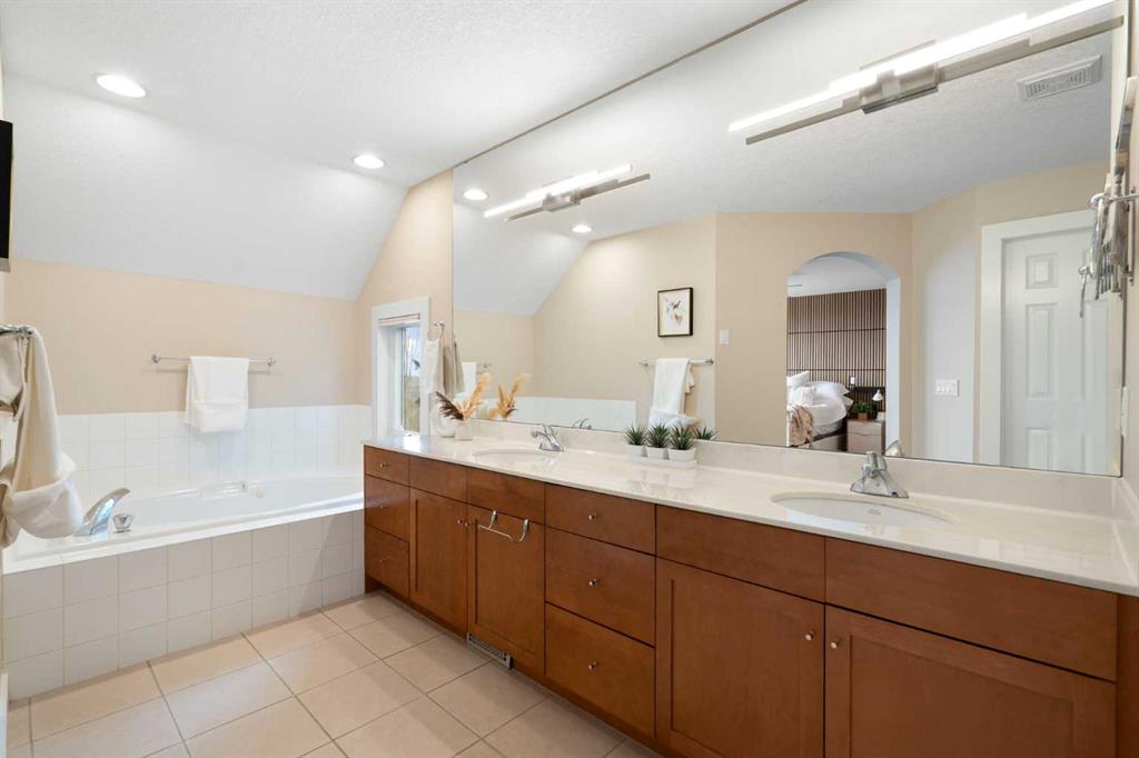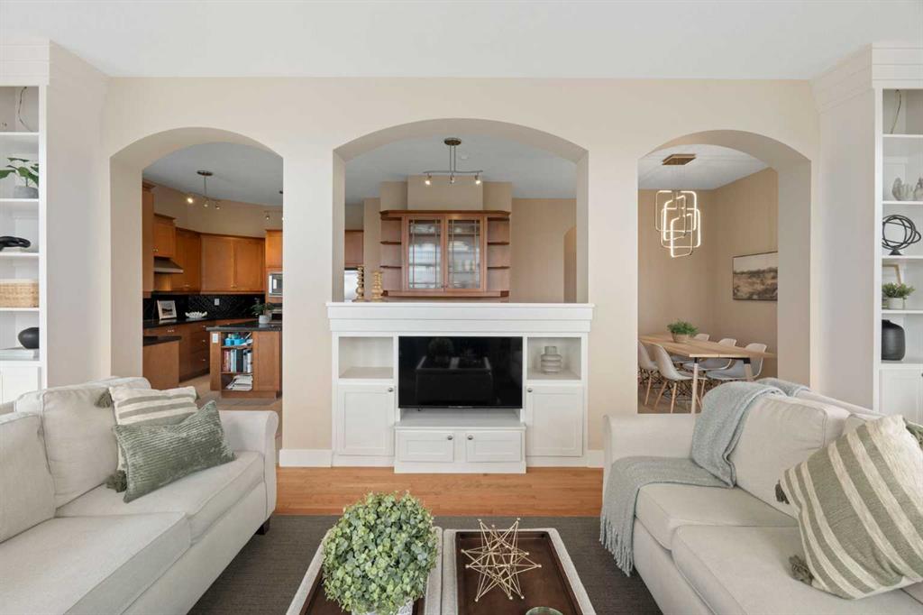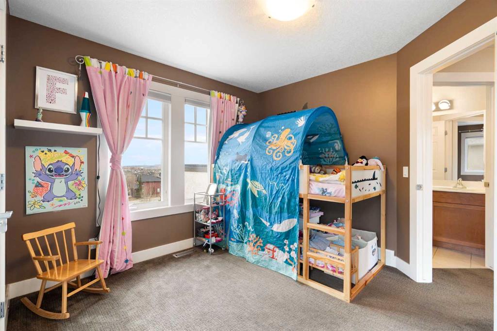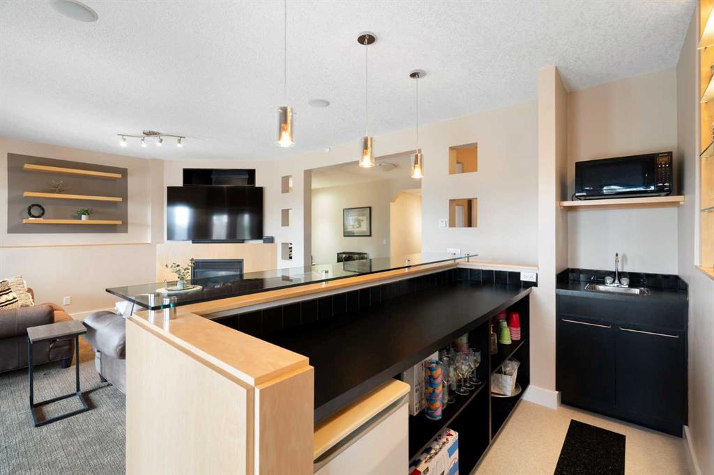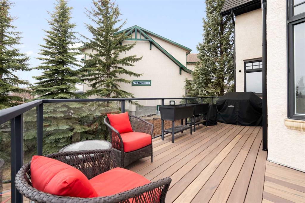 This exceptional family home sits on the largest lot in prestigious Tanglewood, tucked into a quiet cul-de-sac with a park and playground just steps away. Boasting over 3,800 sq ft of developed living space, a tandem 3 car garage and panoramic views of downtown Calgary and Canada Olympic Park, this is a rare opportunity to own a truly special property. The main floor features an elegant formal dining space and sun filled office. The spacious kitchen is the heart of the home, featuring abundant maple cabinetry, stainless steel appliances, a central island, and a dedicated homework station. The adjoining family room is warm and inviting, anchored by a striking concrete mantled fireplace and expansive windows that showcase the beautifully landscaped backyard and sweeping city views. Upstairs, you’ll find three generous bedrooms, a full bath, and convenient upper-level laundry. The primary retreat offers a walk-in closet, built-in storage and a large ensuite. Central air conditioning ensures comfort throughout. The fully finished walk-out lower level is designed for entertaining, complete with a spacious games room, full bar, guest bedroom and full bath. A natural gas fireplace adds warmth and ambiance. Outdoor living is exceptional, with an expansive lower patio and a wraparound composite upper deck featuring glass railing and multiple natural gas hookups—perfect for a BBQ’s, fire tables, and patio heaters. The professionally landscaped yard includes low-maintenance perennial beds and backs onto a natural extension of 12 Mile Coulee, offering a serene wildlife corridor where deer and moose are frequent visitors. This home has been extensively upgraded for peace of mind, including a hail-resistant Euroshield roof with a substantial balance of a 50-year non-prorated warranty, replacement of both furnaces and hot water tanks, and a new garage door opener. Gemstone exterior lighting adds year-round curb appeal. Located less than a 5-minute walk to multiple parks and a city-maintained outdoor winter rink, and close to schools and all amenities, this home blends nature, luxury, and convenience. As part of a well-funded and managed bare land condominium, residents benefit from immaculately maintained green spaces and snow removal after every snowfall. This is an extraordinary opportunity to own a beautifully maintained, thoughtfully upgraded home in one of Calgary’s most sought-after communities.