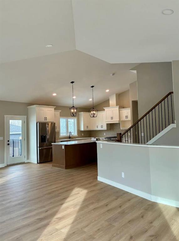Welcome to Diamond Willow Estates, where luxury meets acreage living just minutes from Rocky Mountain House. This thoughtfully designed 1,843 sq ft bi-level with HUGE oversized garage offers the perfect blend of modern style, family functionality, and room to grow. Pavement right to the front door (including driveway) and your water and septic is taken care of. The heart of the home features a vaulted great room with soaring ceilings and large 3 pane LUX windows, creating a bright, open space ideal for everyday living and entertaining. The kitchen is designed to impress with custom cabinetry, quartz countertops, a central island, and large pantry, flowing seamlessly into the dining area with direct access to the rear deck—perfect for indoor-outdoor living. The main floor primary suite offers privacy and comfort, complete with a walk-in closet and full ensuite, while additional bedrooms on the upper level provide ideal separation for family or guests. Designed with busy families in mind, the home includes a functional entry/mudroom, spacious living areas, and durable high-end finishes throughout. The undeveloped basement offers incredible potential, with space for additional bedrooms, a large family room, and future development—giving you the flexibility to grow with your needs. Enjoy the outdoors with a covered front deck, rear deck, and a beautifully finished exterior, all set within the peaceful surroundings of Diamond Willow Estates. Additional highlights include a finished garage, 200 amp service, high-efficiency mechanical systems, and appliance allowance. A home that delivers space, style, and the freedom to grow—acreage living at its best. Photos are of same model - this home is under construction with a September completion date. This home is covered with New Home Warranty. Come check this beautiful home out.