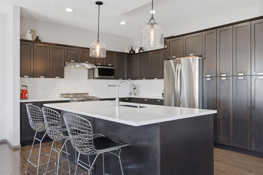 ****OPEN HOUSE SATURDAY MAY 2ND ~ 1PM - 4PM****Imagine no electricity bill, or even getting paid for the electricity your house creates! This could be your new reality with this fully upgraded home equipped with solar panels and a heat pump. Situated on an extra-large corner lot with only one neighbour beside you. Offering nearly 2,800 developed square feet this home shows pride of ownership throughout and provides a functional well thought out layout. As you enter you are immediately greeted by a grand front foyer with an open to above, fresh tiled floors and gleaming hardwood. The kitchen is a focal point with rich expresso cabinets, upgraded stainless steel appliances, a timeless tile backsplash, gorgeous quartz counters, and a granite sil sink. It opens to the spacious dining room with plenty of windows that draw in the natural light. Enjoy direct access off your dining room to your large backyard with an expansive two-tier deck, convenient gas line, outdoor fire pit, and ample space for gardening and outdoor activities! Adjacent to the dining room is the inviting living room highlighted by a modern gas fireplace and stone detail. Also on the main floor, an updated powder room is tucked away, along with the mudroom that conveniently features the washer and dryer. Upstairs a large bonus room at the rear is the perfect place for a playroom, home office, or additional living room. Ideal for games night or movies with your family. The primary room is a true sanctuary, looking onto your backyard. Offering a walk-in closet with built-ins, and a luxurious ensuite with a massive freestanding tub, stunning tile detail, and a large shower with 10 mm glass. Two additional well sized bedrooms and a well-appointed 4pc bath complete this level. The finished lower level adds a rec room including an electric fireplace, a dedicated gym area, a 4th bedroom and updated 3pc bath with relaxing steam shower! This home is in the highly sought-after community of Evanston! Ideally located close to shopping, transit, major roadways, parks, paths, 3-minute drive to the new middle school and steps to the local elementary school. View the virtual tour or schedule your private showing today.