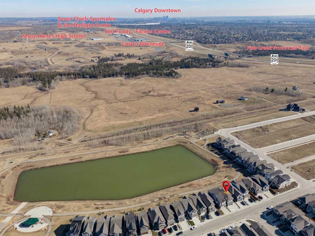Wake up to sweeping *MOUNTAINS and *CITY skyline views in this exceptional 6-bedroom home, ideally located in Calgary’s sought-after Alpine Park community. Set on a premium lot backing directly onto a beautiful *pond with *seasonal water fountains, this property offers approximately 2,500 sq. ft. of thoughtfully designed living space. It features a spacious bonus room, a dedicated home office, and a *LEGAL two-bedroom *WALKOUT SUITE—ideal for multi-generational living, hosting guests, or generating rental income. The main level showcases a bright, open-concept layout with 9-foot ceilings, enhanced by oversized windows that flood the space with natural light while framing picturesque views. A versatile office or flex room provides a quiet and functional workspace. At the heart of the home, the culinarily-inspired kitchen is equipped with built-in stainless-steel appliances, a gas range, sleek glass tile backsplash, modern cabinetry, and a large central island highlighted by a stylish dual light fixture. Step through the patio doors onto the deck and enjoy tranquil pond views—perfect for summer barbecues or outdoor entertaining. The inviting living area features a cozy electric fireplace, while a convenient half bath and laundry room complete the main floor. The professionally developed walkout basement reflects quality craftsmanship and thoughtful design. This bright legal two-bedroom suite features large windows overlooking the pond, a contemporary kitchen with upgraded marble countertops, a comfortable living area, a full bathroom, and its own separate laundry—making it ideal for extended family or tenants. Additional upgrades include high-quality sound insulation and custom window coverings throughout the home. Outside, the landscaped backyard offers a peaceful retreat with big patio spaces, along with direct access to nearby walking paths—perfect for relaxation or entertaining. Located in a quiet, family-friendly neighborhood, this home is close to schools for all grade levels and just minutes from everyday amenities, including grocery stores, cafés, restaurants, and parks. Commuting is convenient, with Fish Creek LRT Station only 12 minutes away, Costco just a 5-minute drive, downtown Calgary approximately 16 minutes away, and the Rocky Mountains within 30 minutes. Combining comfort, style, and accessibility, this beautifully upgraded home presents a rare opportunity to own in one of Calgary’s most vibrant and growing communities—a fantastic opportunity you won’t want to miss!