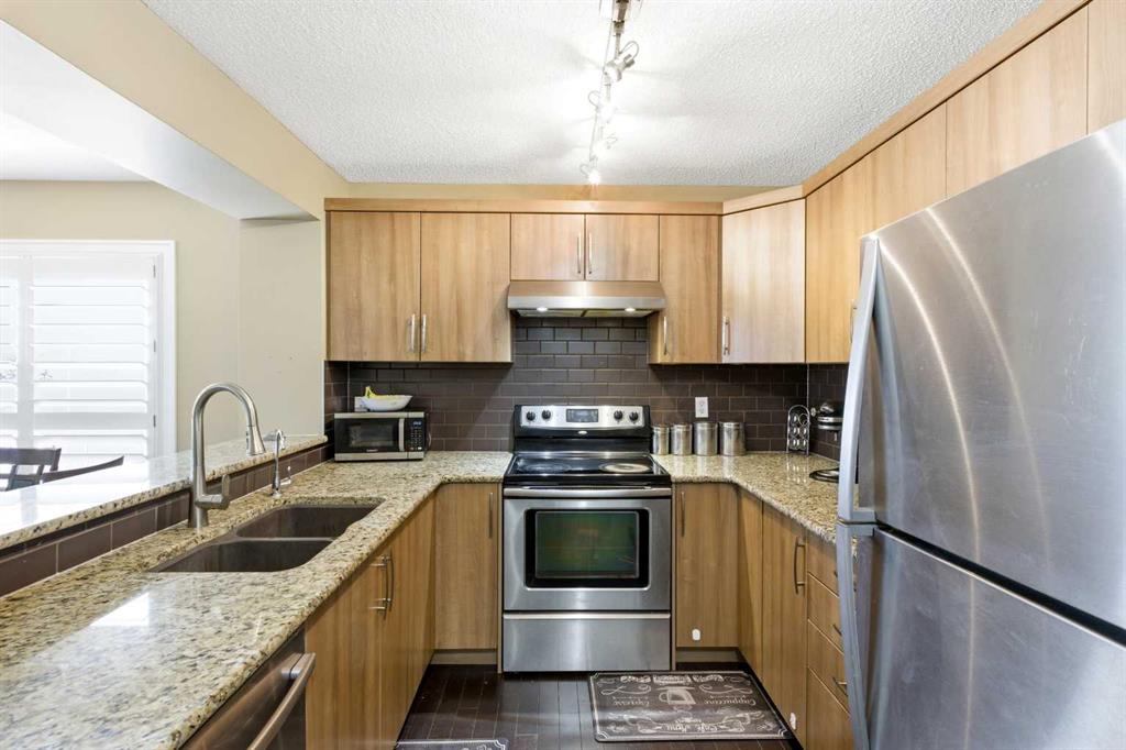 Welcome to this beautifully maintained CORNER UNIT townhouse with NO CONDO FEES, offering outstanding value! Boasting 1,416 sq ft of living space, this bright and functional home is perfect for families, first-time buyers, or investors. Enjoy abundant natural light with desirable east-facing exposure, filling the home with sunshine every morning. The open-concept main floor is designed for comfortable living and effortless entertaining. This home features a private fenced front yard, ideal for kids or pets, along with a covered gazebo patio on the upper balcony—perfect for relaxing or hosting guests. At the rear, you’ll find a rare double attached garage PLUS a driveway pad, offering parking for up to 4 vehicles. Situated on a quiet rear access street, the home backs onto a kids’ play area, adding both convenience and family appeal. Major upgrades include a brand new Bradford White hot water tank (April 2026) and a newer water softener, giving peace of mind to the next owner. Located in a highly desirable, family-friendly neighborhood, you’re just a 5-minute walk to a K–8 school and playground, with a bus stop only 1 minute away. Enjoy quick access to 40 Ave & Highway 2, making commuting to Calgary easy and efficient. All essential amenities are close by, including grocery stores, restaurants, cafés, salons, barbershops, McDonald’s, and gas stations—everything you need is within reach year-round. Surrounded by parks, green spaces, and a welcoming community filled with young families, this is a rare opportunity to own a well-located home with no condo fees, excellent parking, and strong long-term value.