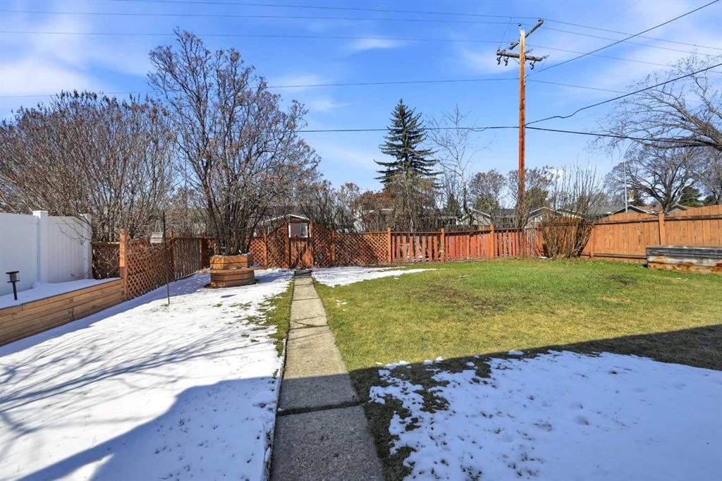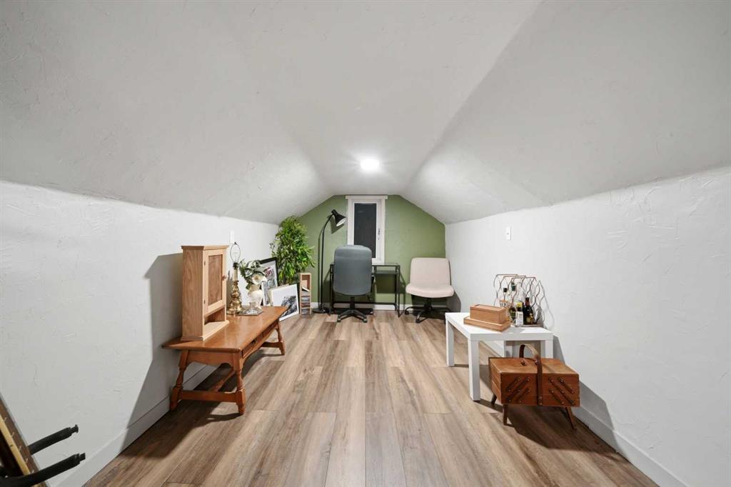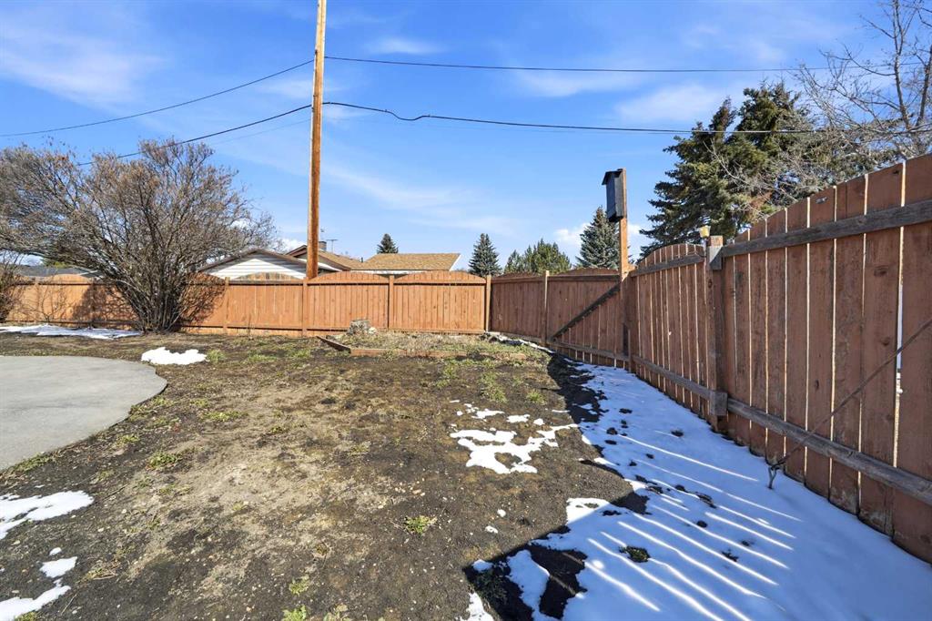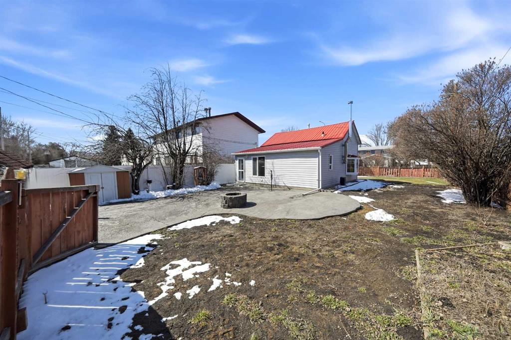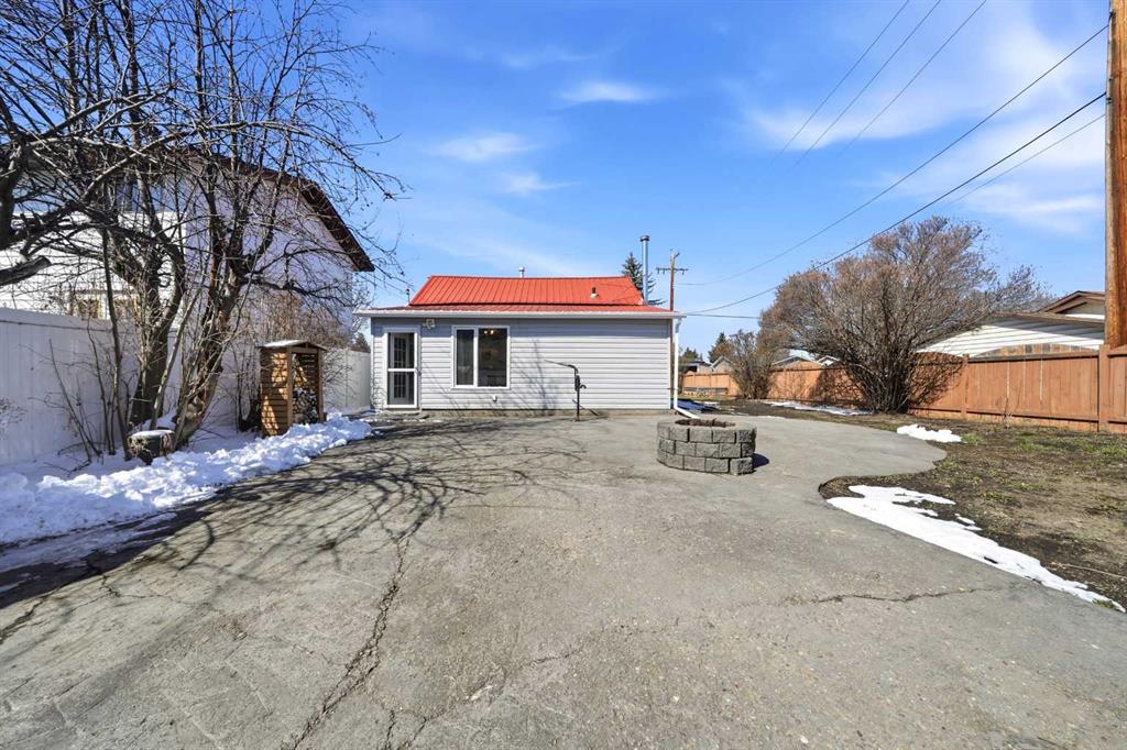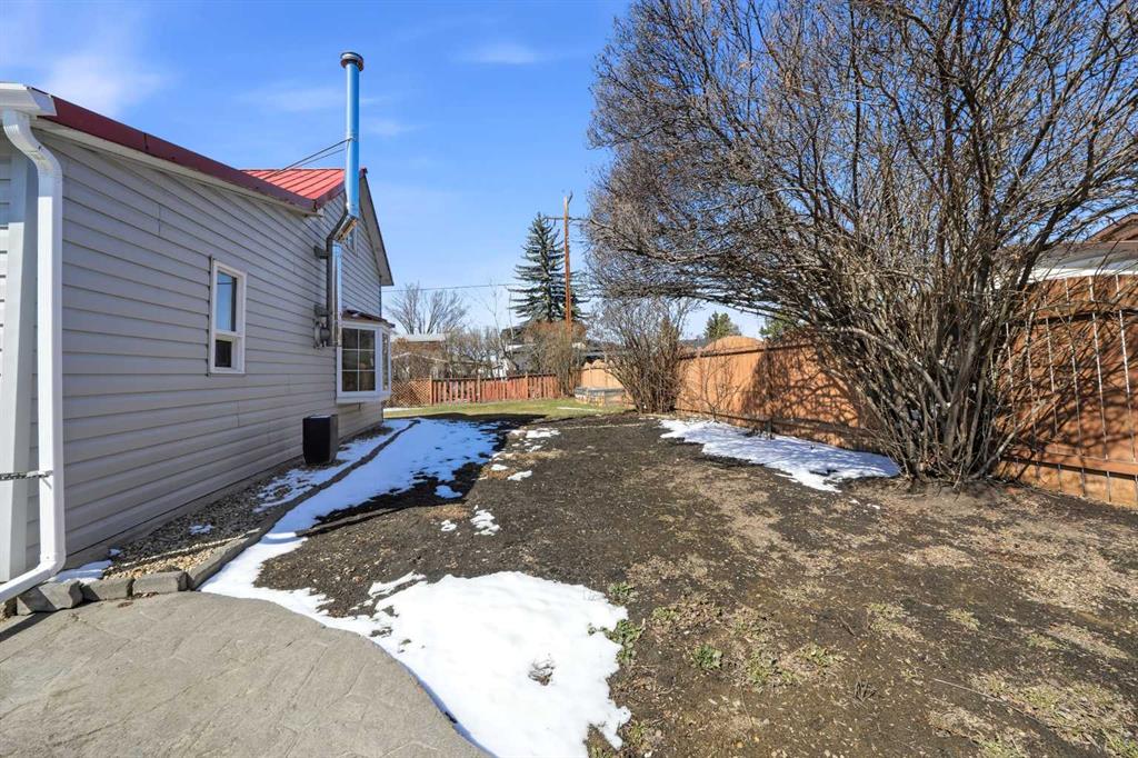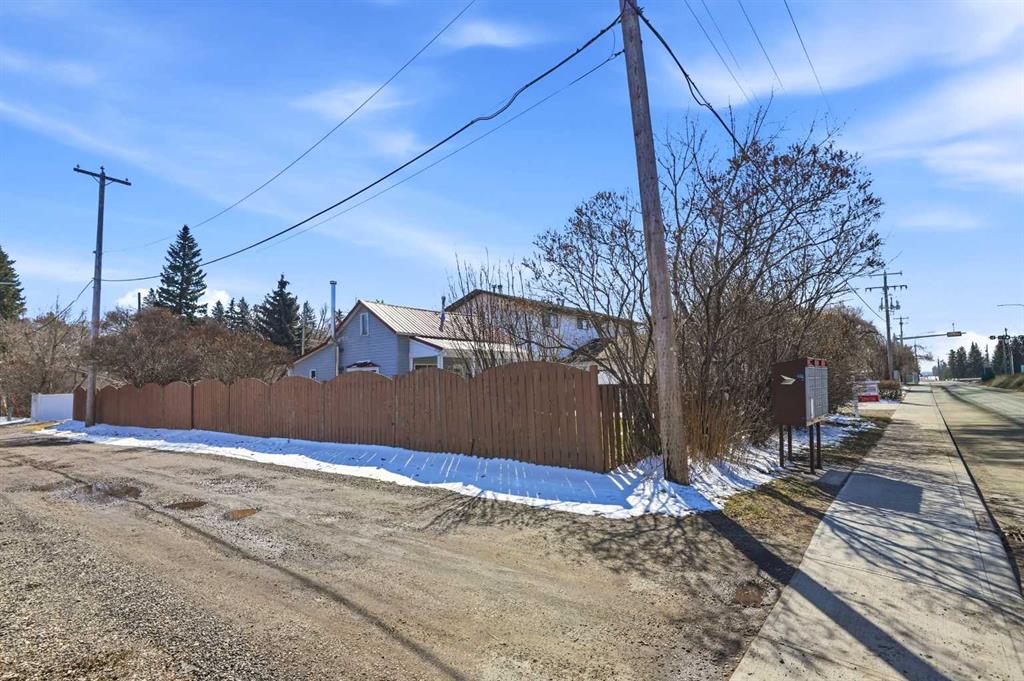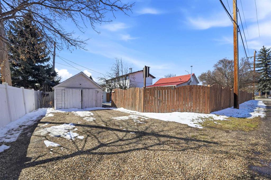 Unique opportunity in central Lacombe. This 1.5 storey home sits on two lots and offers a private, fully fenced yard with mature lilacs. The home includes 1 bedroom and 1 full bathroom, along with an upper loft that provides additional flexible space for a home office, guest area, or hobby room. Flooring and bathroom updates have been completed over the years, along with regular maintenance including plumbing, electrical, and duct cleaning. Outside, enjoy a stamped concrete patio, rear access with extra parking, and space for RV storage. A detached single garage adds practical storage. Zoned R2, the property offers potential for future development or income opportunities. An excellent choice for buyers looking for space, privacy, and long-term value.