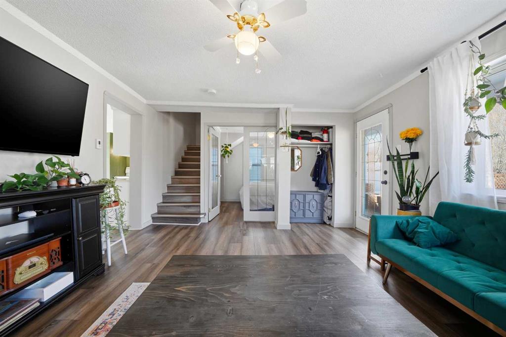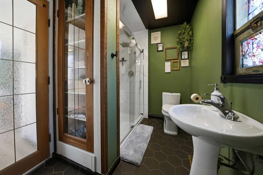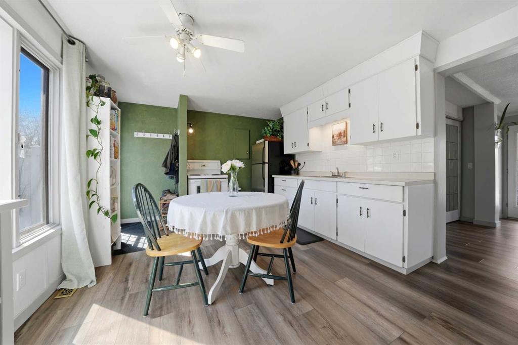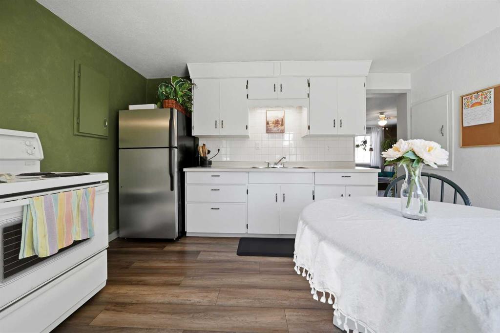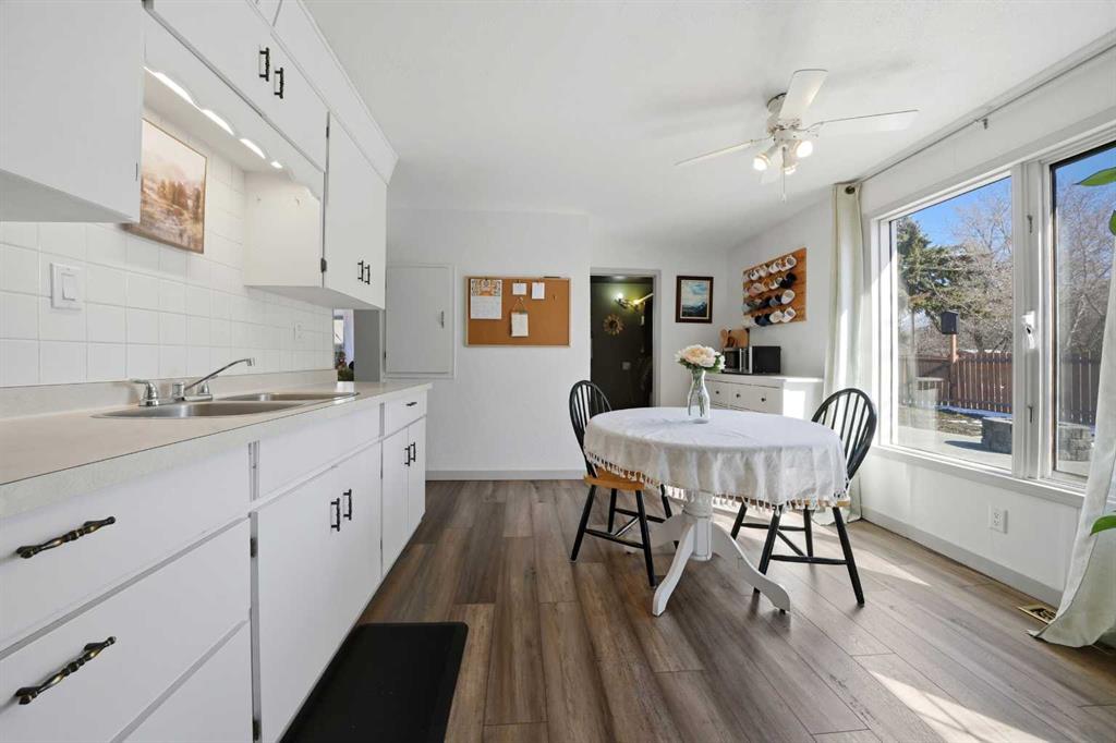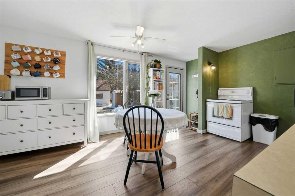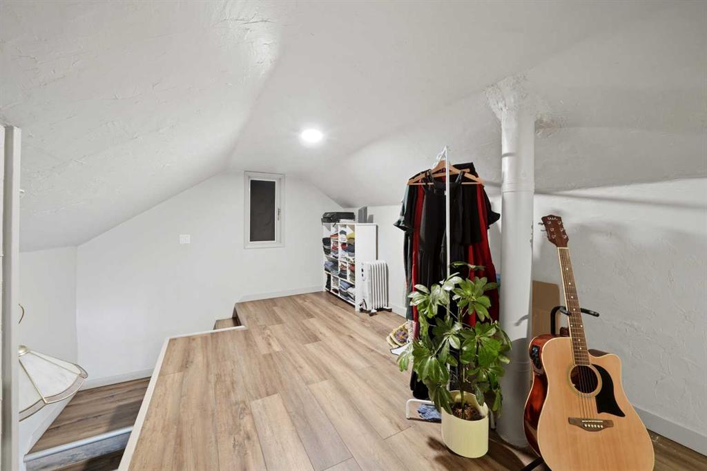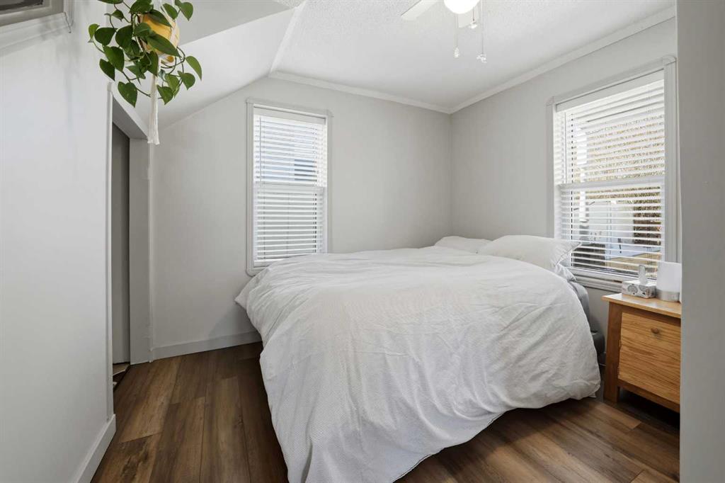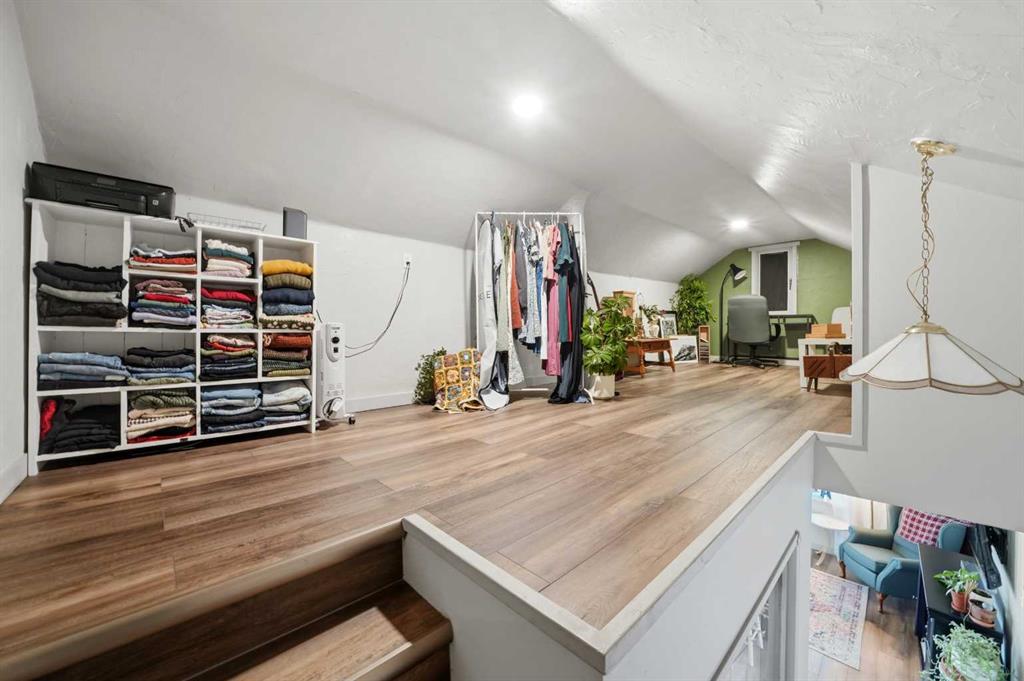 Unique opportunity in central Lacombe. This 1.5 storey home sits on two lots and offers a private, fully fenced yard with mature lilacs. The home includes 1 bedroom and 1 full bathroom, along with an upper loft that provides additional flexible space for a home office, guest area, or hobby room. Flooring and bathroom updates have been completed over the years, along with regular maintenance including plumbing, electrical, and duct cleaning. Outside, enjoy a stamped concrete patio, rear access with extra parking, and space for RV storage. A detached single garage adds practical storage. Zoned R2, the property offers potential for future development or income opportunities. An excellent choice for buyers looking for space, privacy, and long-term value.