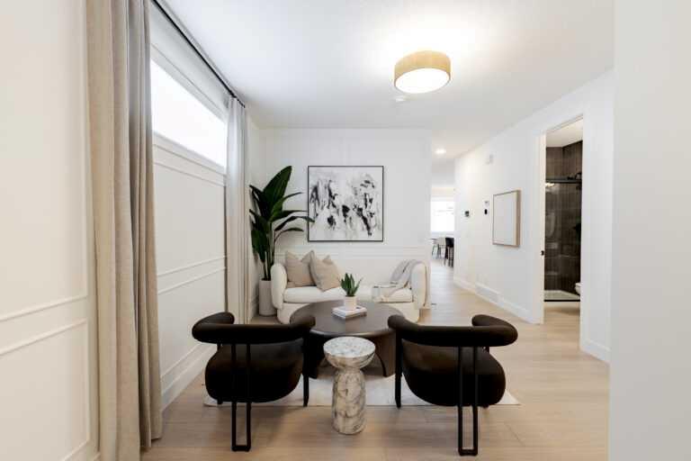 Love it or customize it with Shane Homes in Esker Park. Introducing the Saffron II, a thoughtfully designed 4 bedroom, 4 bathroom pre-construction home that offers the space and flexibility today’s families are looking for. The main floor features a bright, open-concept layout ideal for both everyday living and entertaining. The kitchen with walk-in pantry flows seamlessly into the dining nook and inviting living room with electric fireplace. A versatile main floor flex room is perfect for a home office or guests, complemented by a full bathroom for added convenience. Upstairs, you will find 4 well-appointed bedrooms, including a private primary bedroom with a 5 piece ensuite and walk-in closet. One secondary bedroom includes its own ensuite and walk-in closet, creating a comfortable setup for family or guests. A central family room adds valuable living space, while the dedicated laundry room enhances everyday ease. Photos are representative
