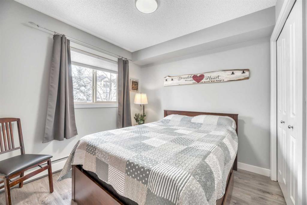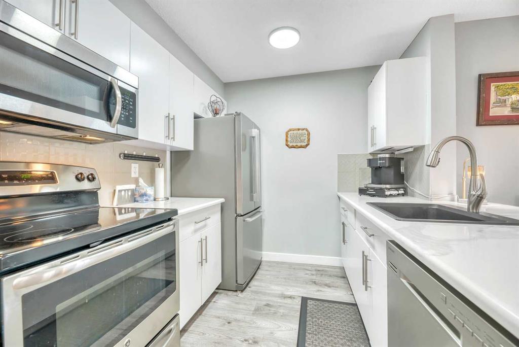 Ground floor unit backing onto Greenspace! Easy access to this well and updated maintained bedroom condo. Open floor plan. Gleaming white kitchen with stainless steel appliances and breakfast bar open to bright and open living room with access to ground floor patio. 2 spacious sized bedrooms. The primary has a walkthrough closet and 3 piece ensuite. Additional space ideal for small office. Insuite laundry. Very functional immaculateunit. Condo fees incude heat and water, one parking stall. Close to Shopping, Dining, Gas, Tim Horton's. Great location near all amenities, very walkable! Great commuting to Calgary from the heart of Airdre!