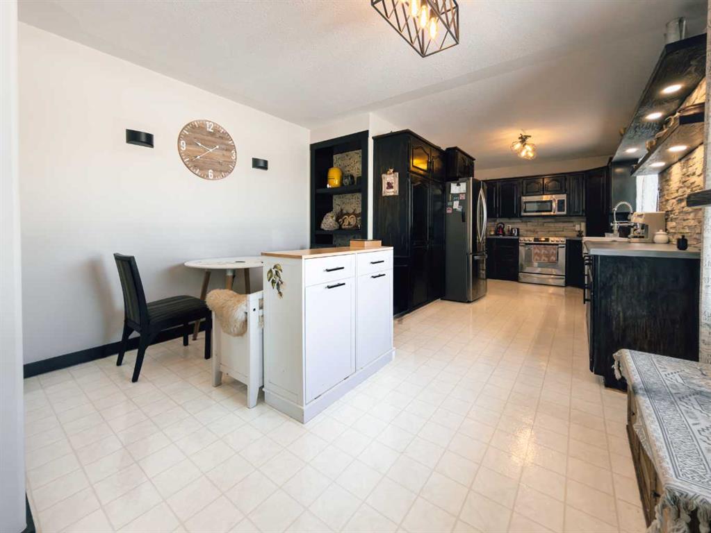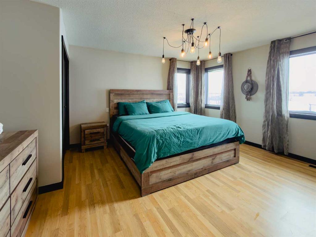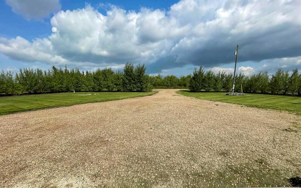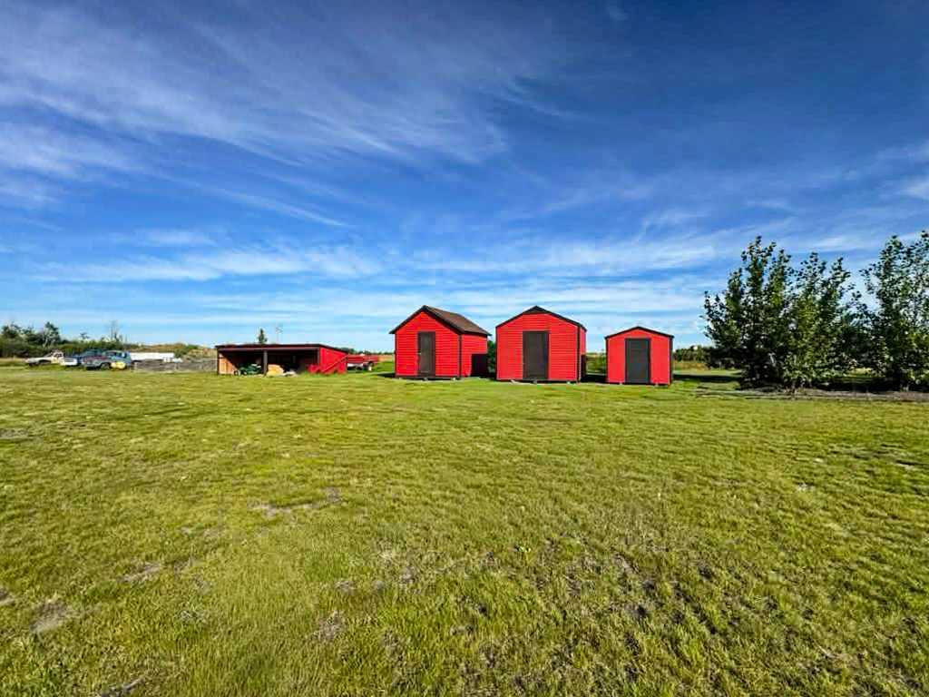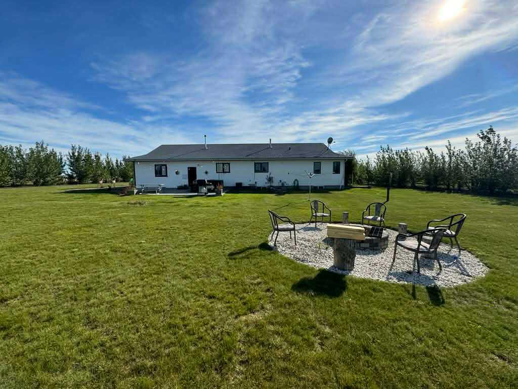 Escape to the perfect blend of country living and modern comfort with this beautifully developed 23 acre property, ideally located just 10 minutes North of Manning with convenient access right off Highway 35. This spacious 3 bedroom, 3 bathroom home is fully finished and thoughtfully designed for family living and entertaining. The bright, open-concept main floor features a large kitchen with abundant counter space, flowing seamlessly into the dining and living areas. Step out from the dining room onto the covered front deck-perfect for relaxing with your morning coffee or hosting BBQs with plenty of room for patio furniture. The primary bedroom offers a fully renovated walk-in shower, creating a private retreat. Downstairs, you'll find a generous family room along with a versatile bonus room that could easily serve as an additional bedroom, plus ample storage space and a cold room-ideal for canning and preserving your garden harvest. The attached heated double garage is a standout feature, complete with a cement floor, overhead radiant heat, and 220 -volt power for welding or workshop needs. Outside, the property is well equipped for hobby farming or simply enjoying the space, with a barn, two pole sheds, wooden granaries, and a small shed. A large garden area with established raspberries and saskatoon bushes adds to the charm and functionality. County water co-op is already in place. This is a fantastic opportunity to enjoy peaceful acreage living with all the amenities you need- space, comfort, and endless potential.