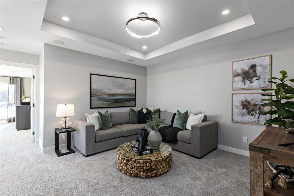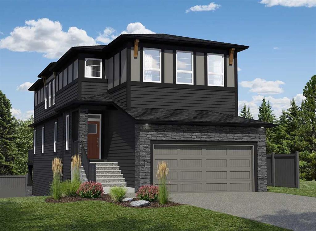 Located in the growing community of Pine Creek, this brand-new two-storey home offers over 2,532 sq. ft. of thoughtfully designed living space, a south-facing backyard, and an exceptional layout built for modern family living. Featuring 5 bedrooms, 4 full bathrooms, a main floor bedroom, spice kitchen, bonus room, and premium finishes throughout, this home delivers both functionality and style. The main floor showcases a bright open-concept design with engineered hardwood flooring, large windows, and elegant finishes throughout. The spacious great room is anchored by an electric fireplace and enhanced with added pot lights, creating a warm and inviting atmosphere for everyday living and entertaining. The chef-inspired kitchen features 42” upper cabinetry with crown moulding, ample storage, premium appliances, and a large island with breakfast bar seating. A separate spice kitchen adds extra cooking convenience and functionality. The adjacent dining area provides direct access to the 10’ x 10’ rear deck with stairs to grade and a gas line, perfect for outdoor entertaining. A versatile main floor flex room, additional main floor bedroom, and full bathroom with a tiled standing shower offer ideal accommodations for guests, multigenerational living, or a home office. Upstairs, you’ll find four additional bedrooms, including a spacious primary retreat featuring a walk-in closet and a luxurious 5-piece ensuite complete with a glass and tile shower, double vanity, and soaking tub. A second bedroom features its own private ensuite, while the remaining bedrooms share another full bathroom. The central bonus room provides valuable extra living space for relaxing, studying, or movie nights, while the upper-level laundry room adds everyday convenience. The undeveloped basement with 9-foot foundation ceilings offers endless future potential for additional living space customized to your needs. Additional highlights include a double attached garage, stone accents, Hardie trim and panel siding, vinyl siding, and all main kitchen appliances, spice kitchen appliances, and side-by-side washer/dryer included. Currently under construction with estimated completion in Summer 2026, this is an excellent opportunity to own a brand-new home in one of Calgary’s newest southwest communities, close to parks, pathways, schools, shopping, and everyday amenities. Please note: The photos shown are from a completed home with the same floor plan and are provided for reference only. Finishes may vary. This home is currently under construction—visit the showhome for more details and available specifications.