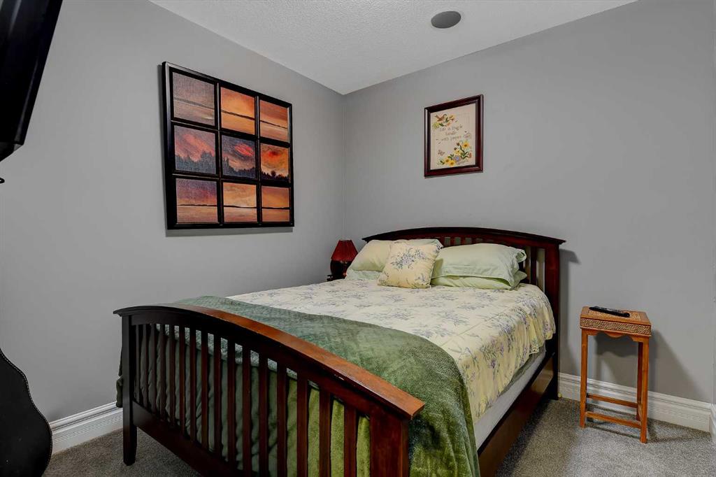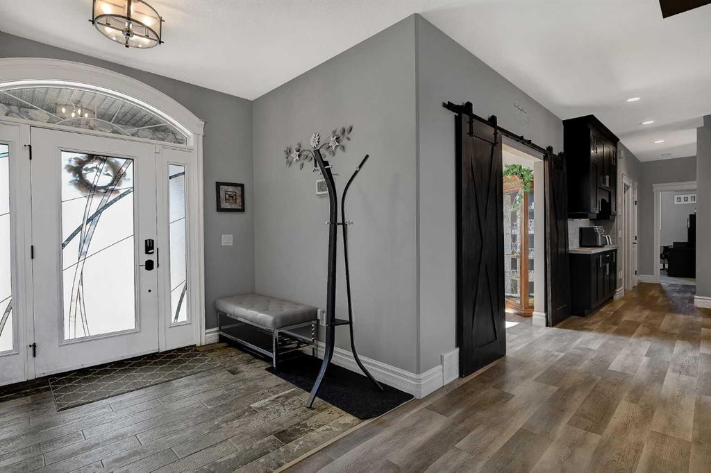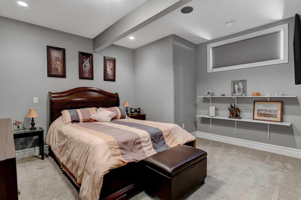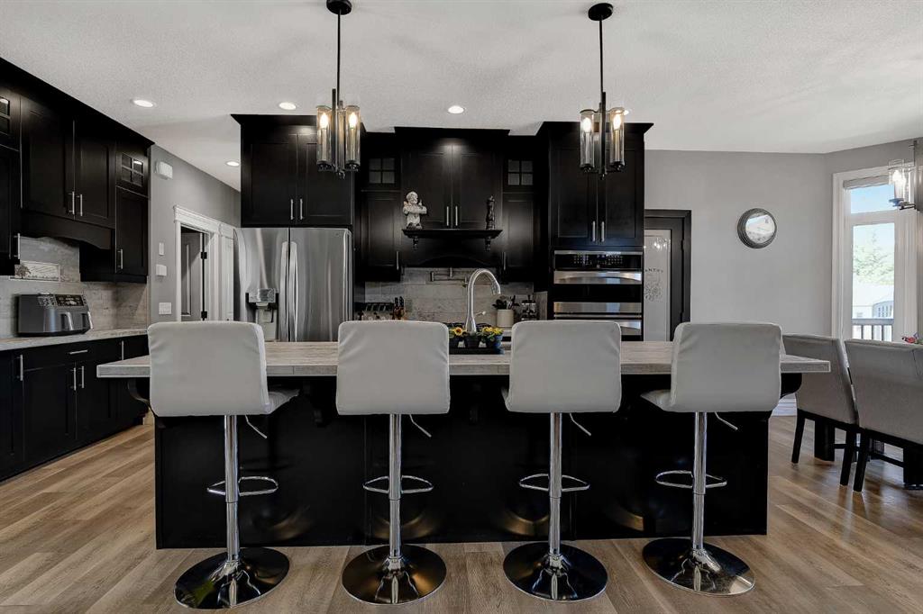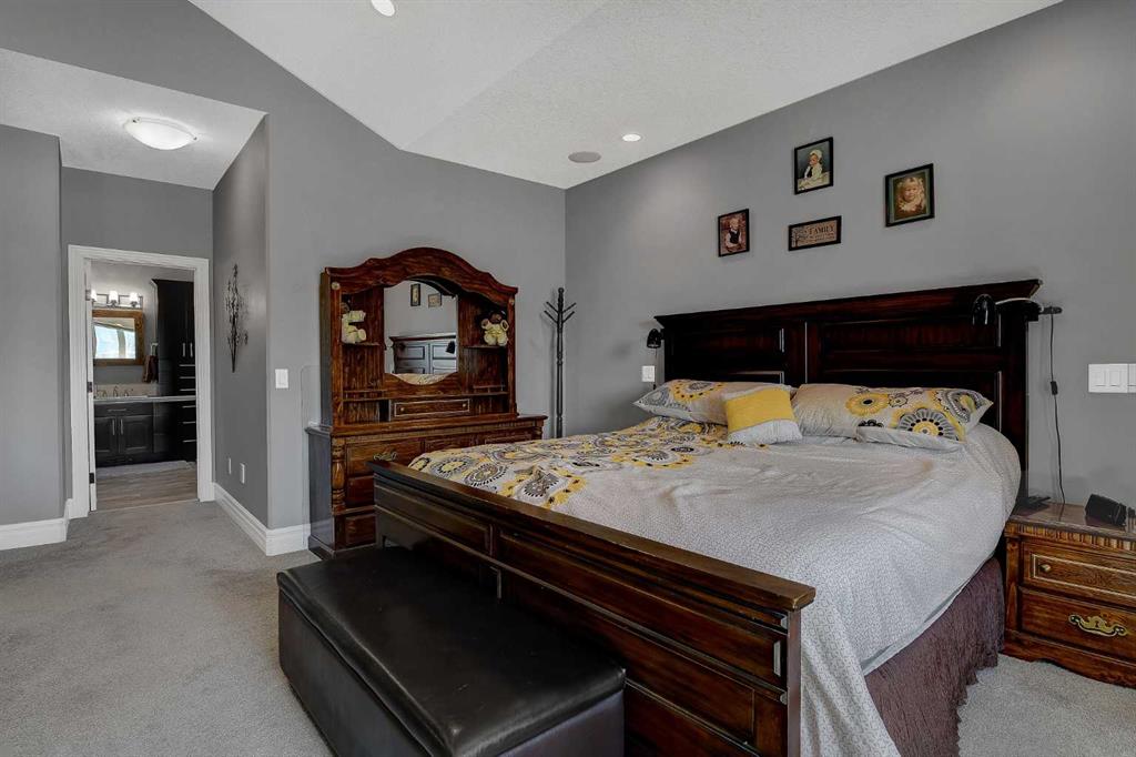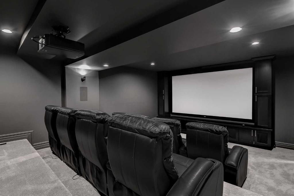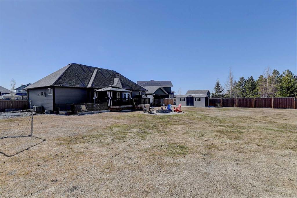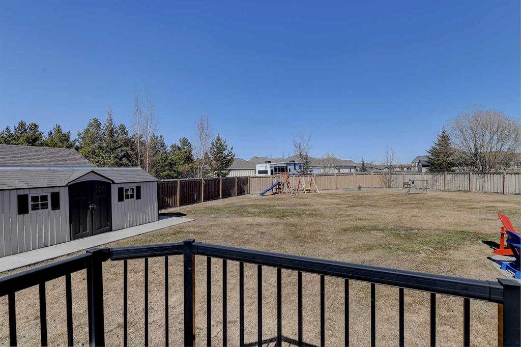 This incredible fully developed 5 Bedroom + Den, 5 Bath, bungalow in Whispering Ridge is the kind of home that immediately stands out. Set on the largest lot in the entire subdivision (.45 acres), the property offers a rare combination of space, privacy, and high-end finishing—inside and out. The main floor is designed to impress, featuring an open-concept layout with beautiful flooring, rich dark cabinetry, and thoughtfully selected custom details throughout. From the striking wood barn doors leading into the formal dining room to the tiled counter-tops and seamless layout, every element has been carefully curated. You’ll also find the convenience of main floor laundry, two additional bedrooms, and a spacious primary suite complete with a walk-in closet and a stunning ensuite with heated floors. Central A/C keeps the home comfortable year-round. Downstairs, the home truly elevates your lifestyle. A fully equipped theatre room—with projector, screen, and 12 reclining chairs—creates an unbeatable entertainment space. The basement also features in-floor heating, a wet bar with fridge, and two additional bedrooms, each with their own full bath and walk-in closet (3 primary bedrooms). Throughout the entire home, a Control4 system provides integrated audio for a seamless living experience. The XL garage is fully finished and heated, offering ample room for parking and storage. There’s also dedicated RV parking with water hookup and a septic dump—an incredibly practical and rare feature. Step outside and the scale of this property really becomes clear. The massive pie-shaped .45 Acre yard is fully landscaped with irrigation and offers a large deck with gazebo, stamped concrete patio, and a large shed for additional storage or workspace—all set on the biggest lot in Whispering Ridge. This is a property that delivers on every level—space, function, and finish—all in one of the most sought-after neighbourhoods.