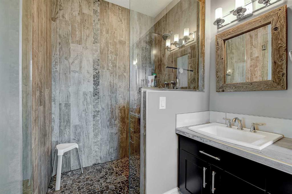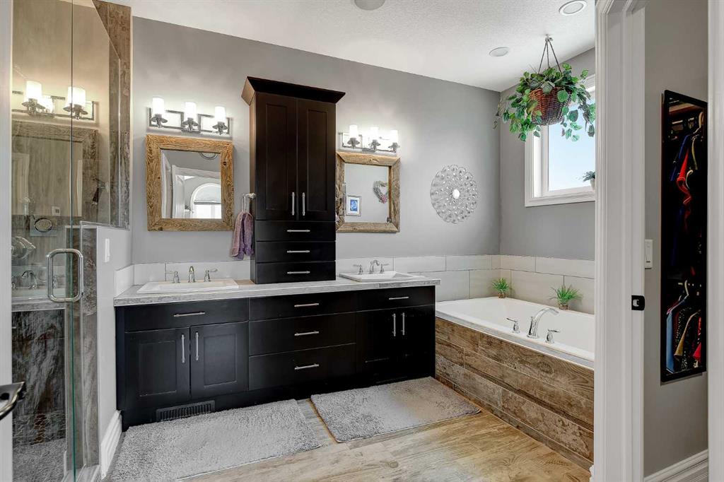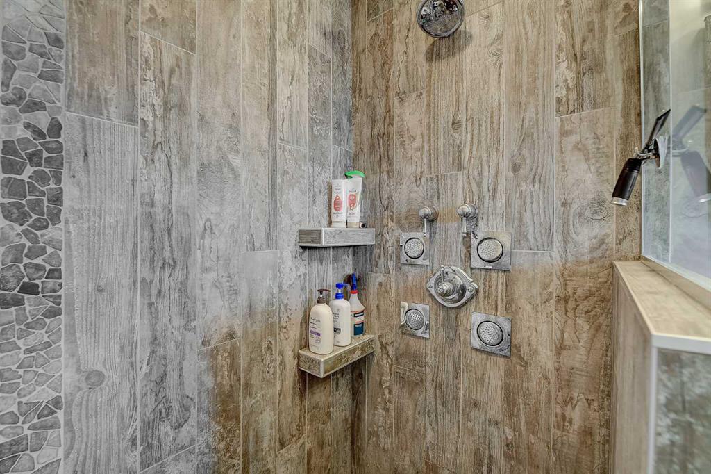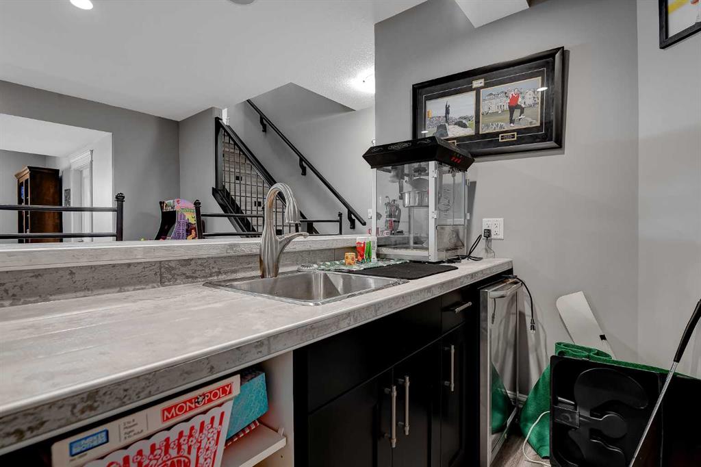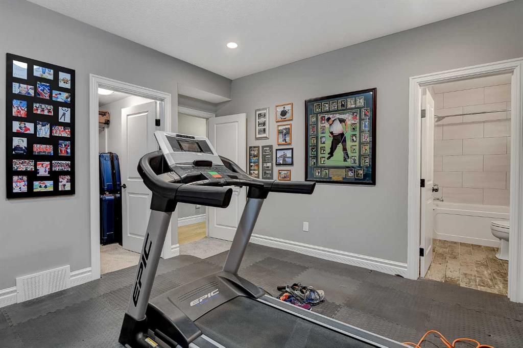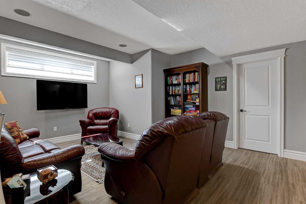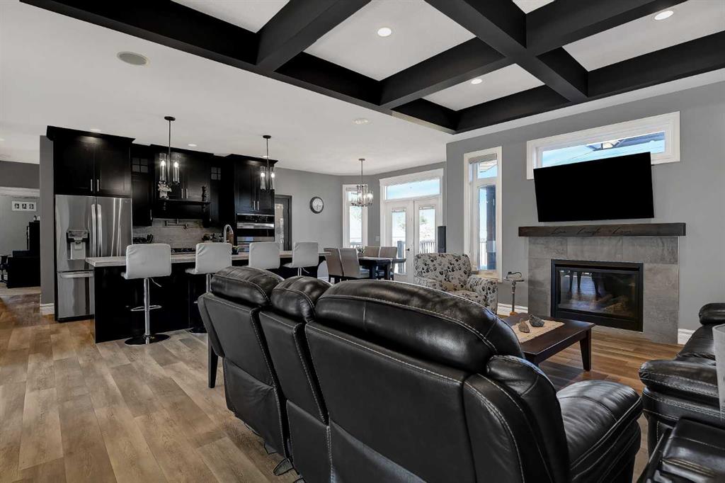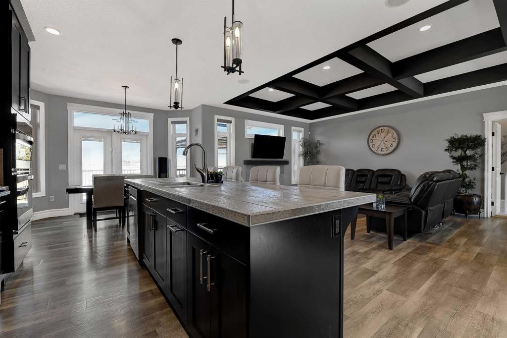 This incredible fully developed 5 Bedroom + Den, 5 Bath, bungalow in Whispering Ridge is the kind of home that immediately stands out. Set on the largest lot in the entire subdivision (.45 acres), the property offers a rare combination of space, privacy, and high-end finishing—inside and out. The main floor is designed to impress, featuring an open-concept layout with beautiful flooring, rich dark cabinetry, and thoughtfully selected custom details throughout. From the striking wood barn doors leading into the formal dining room to the tiled counter-tops and seamless layout, every element has been carefully curated. You’ll also find the convenience of main floor laundry, two additional bedrooms, and a spacious primary suite complete with a walk-in closet and a stunning ensuite with heated floors. Central A/C keeps the home comfortable year-round. Downstairs, the home truly elevates your lifestyle. A fully equipped theatre room—with projector, screen, and 12 reclining chairs—creates an unbeatable entertainment space. The basement also features in-floor heating, a wet bar with fridge, and two additional bedrooms, each with their own full bath and walk-in closet (3 primary bedrooms). Throughout the entire home, a Control4 system provides integrated audio for a seamless living experience. The XL garage is fully finished and heated, offering ample room for parking and storage. There’s also dedicated RV parking with water hookup and a septic dump—an incredibly practical and rare feature. Step outside and the scale of this property really becomes clear. The massive pie-shaped .45 Acre yard is fully landscaped with irrigation and offers a large deck with gazebo, stamped concrete patio, and a large shed for additional storage or workspace—all set on the biggest lot in Whispering Ridge. This is a property that delivers on every level—space, function, and finish—all in one of the most sought-after neighbourhoods.