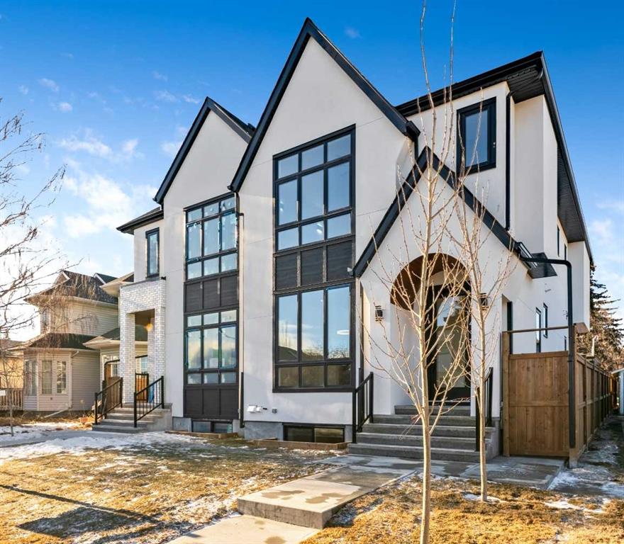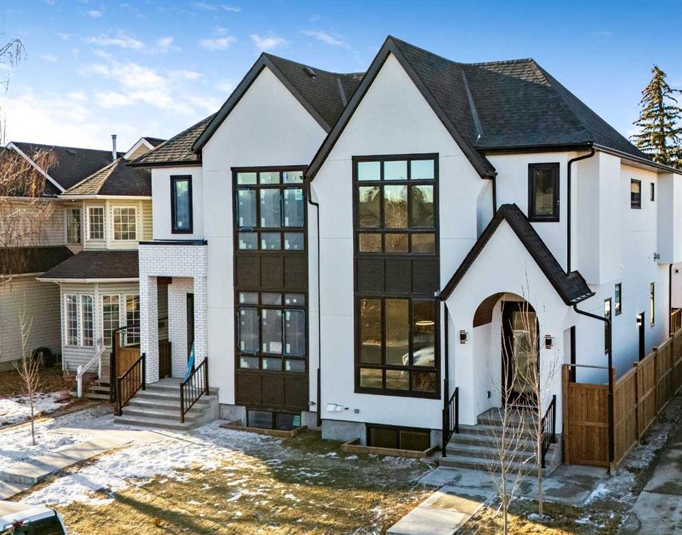 OPEN HOUSE SATURDAY May 2, 2pm-4pm!! Welcome to the lap of luxury in Banff Trail. This beautifully appointed infill is only 270 METER WALK TO BANFF TRAIL C-TRAIN STATION and walking distance to University of Calgary, which makes it an ideal location with its 2 BEDROOM LEGAL BASEMENT SUITE. Have allergies? NO CARPETS THROUGHOUT. The Main floor has 10’ CEILINGS, wide front entrance, a dining area with a feature wall, luxurious kitchen with quartz backsplash, 14' long island with a magnificent quartz countertop and dual waterfall feature and cabinet doors on both sides (plenty of storage space for all your small kitchen appliances), a show-stopping "COMMERCIAL STYLE" 36' GAS RANGE, Impressive 48" WIDE FRIDGE and dual zone BEVERAGE COOLER in the seamlessly situated coffee bar that is open-to-above with morning sun lighting it up with sunshine. The Living room has an opulent 50' GAS FIREPLACE with built-ins and sliding patio doors that opens to a maintenance-free, composite plank party deck. The mud room leads to the conveniently located powder room. The highlight of the top floor is the Massive Primary bedroom with vaulted ceiling, spacious WALK-IN HIS & HER closets and a spa-like ensuite which will have a tiled STEAM SHOWER, double vanity, and a free-standing tub. The top floor is completed with a laundry room with sink, two bedrooms, one which has "cheater-suite" access to the common 4-piece bathroom. Every main and top floor bathroom has electric in-floor heating with their own thermostat, 200 AMP SERVICE TO HOUSE ensures there is enough power for house and a legal basement suite. The BASEMENT HAS A SEPARATE SIDE ENTRANCE, access to the furnace/mechanical room is in the common area so basement tenants do not need to be bothered/notified if you have to access the mechanicals. The basement ceiling has sound reduction features in the ceiling, hookups for a private laundry, kitchen and living room (with fireplace) and IN-FLOOR HEATING. Other features include GFCI OUTLETS BEHIND EVERY TOILET (required for heated bidets) and IN-FLOOR HEATING in EVERY WASHROOM, 200 AMP service in home, HEATED GARAGE WITH 200 AMP SERVICE (also insulated, drywalled and painted) with an EV CHARGING RECEPTACLE suitable to connect a Level 2 charging station, and a sunny SOUTHWEST FACING BACKYARD. TRIPLE PANE GLASS WINDOWS and DOORS throughout house (except front door and sliding patio door due to weight) with extra sound-reduction measures in the party wall ensures a quiet and serene atmosphere in the home. The property s situated on a lovely street full of manicured lawns, infills, and renovated original homes and just a SHORT WALK TO BANFF TRAIL and LIONS PARK C-TRAIN STATIONS, UNIVERSITY OF CALGARY, and community K-12 schools. **PHOTOS ARE FROM A SIMILAR SPEC HOME THAT IS COMPLETED SO THERE IS SOME DIFFERENCES(including Paint, floor/wall/fireplace tile, colors, quartz appearance, Island cabinet color, hardwood and LVP finish, fireplaces, lighting selection).**