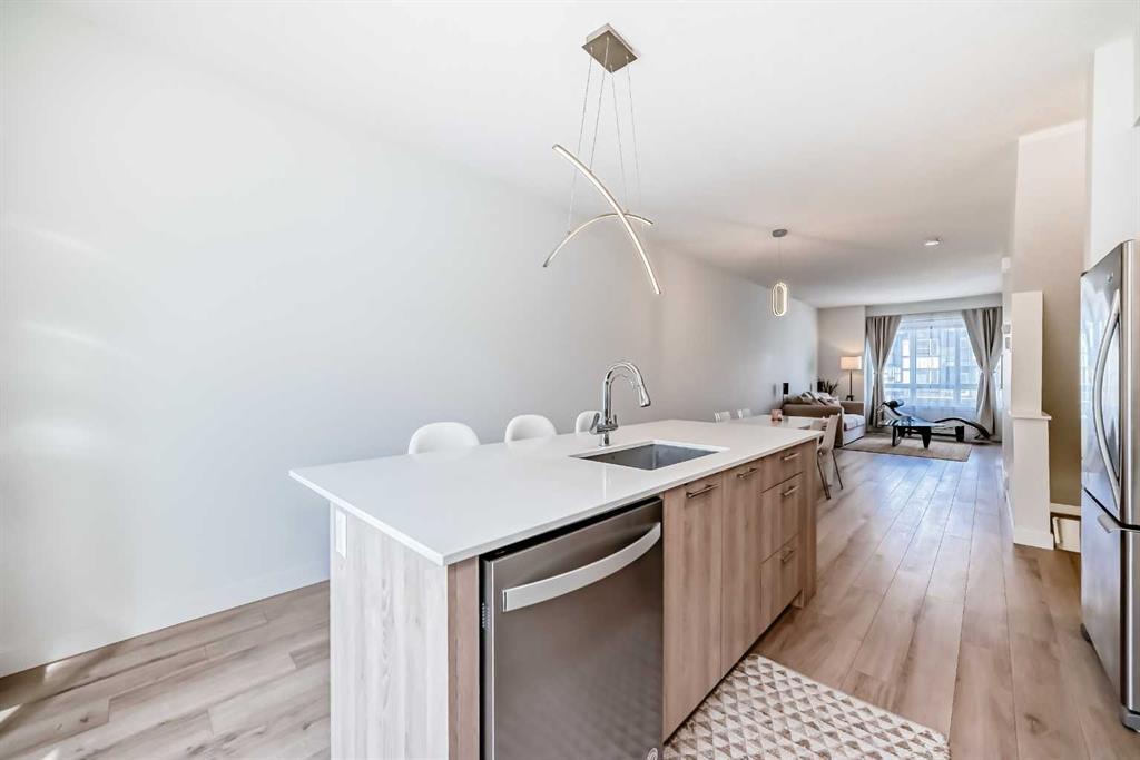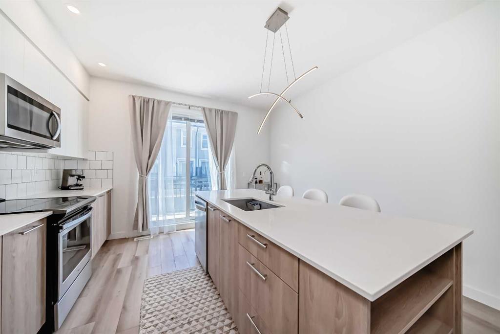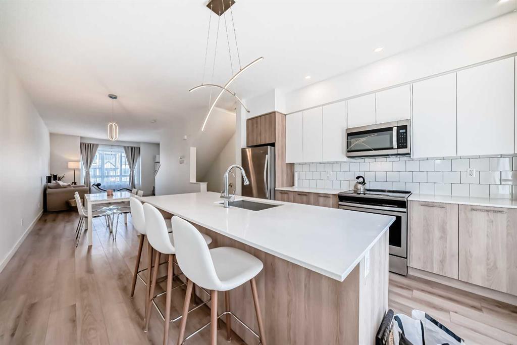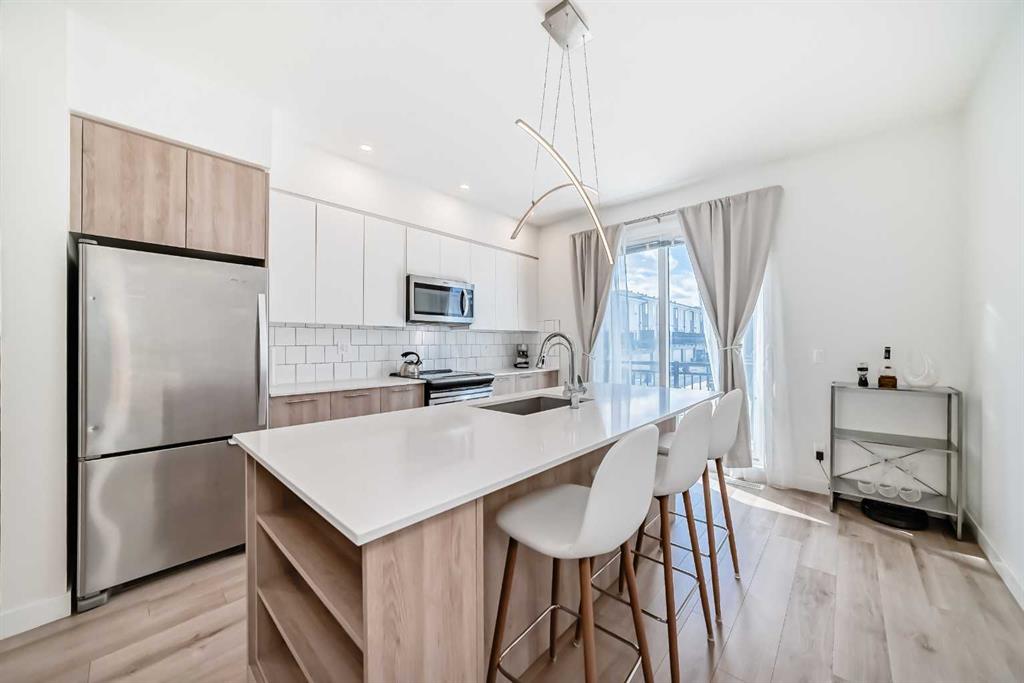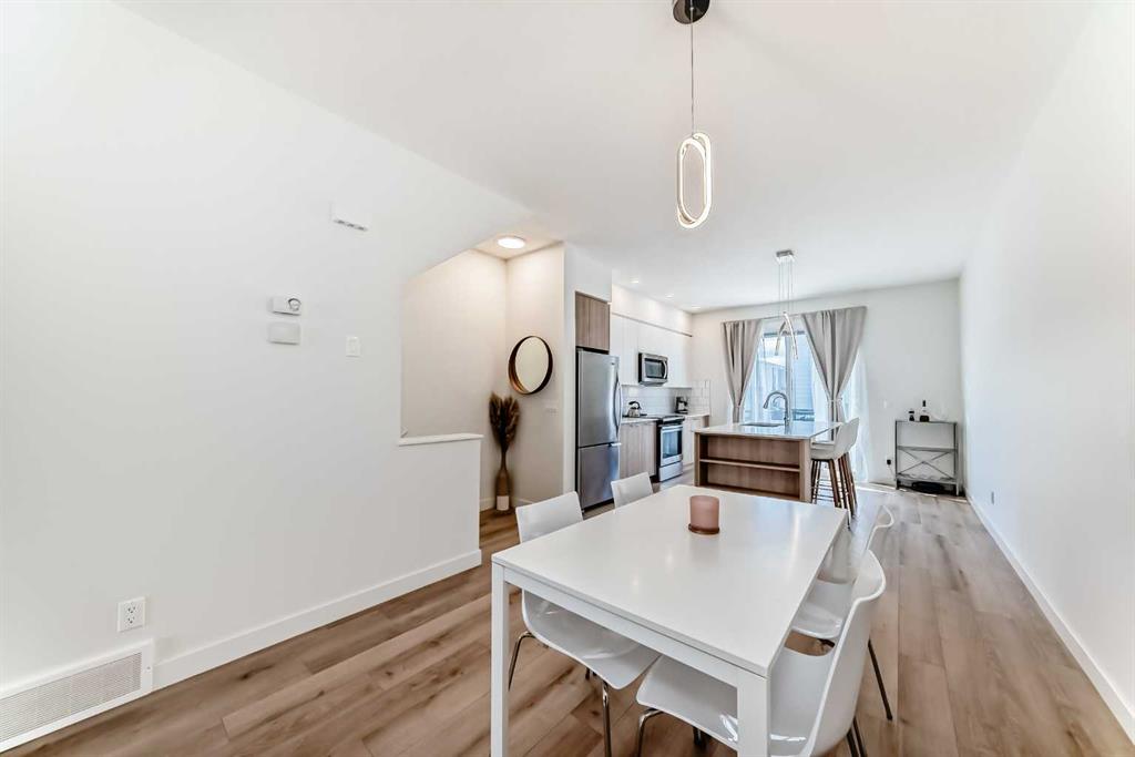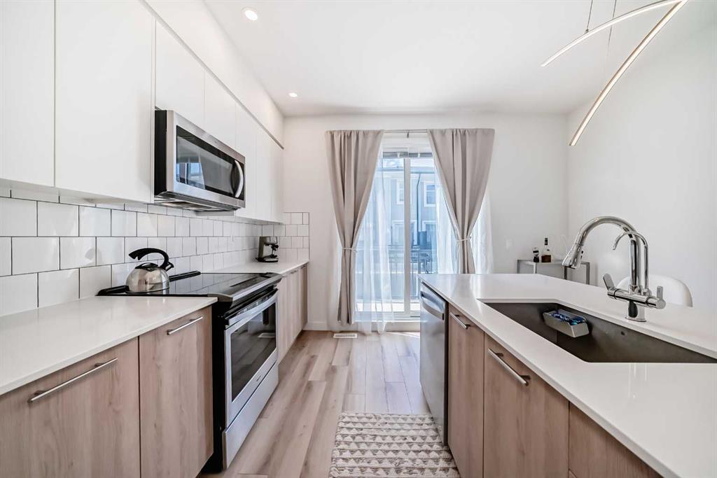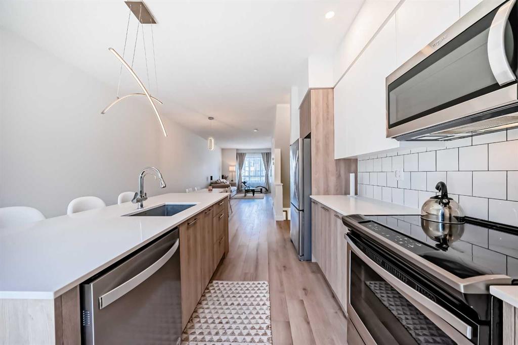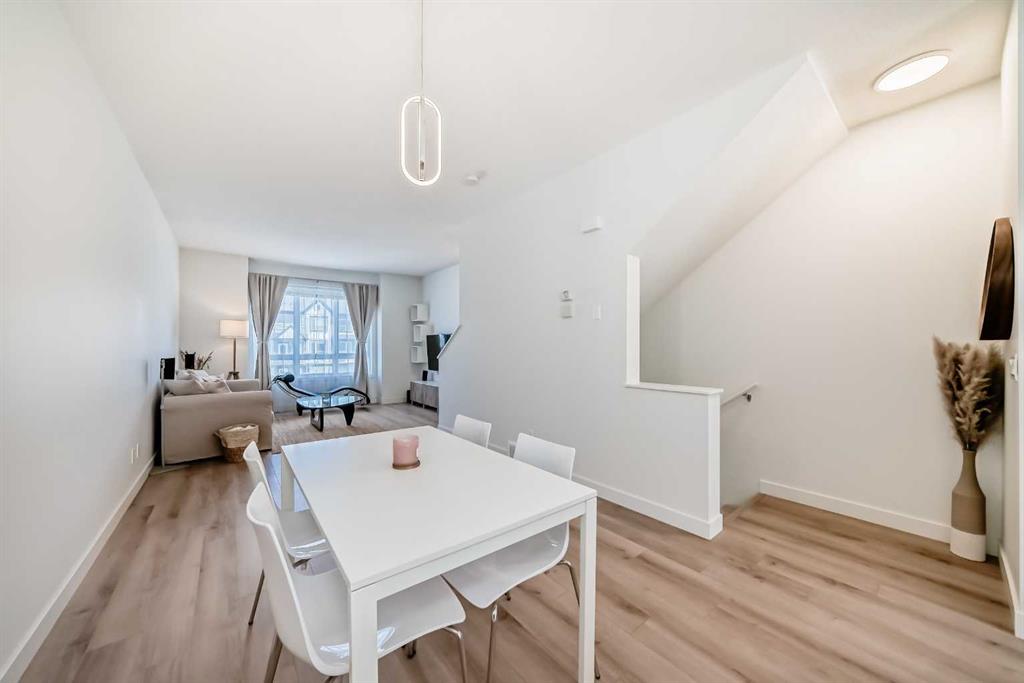 Step into this impeccably maintained, like-new 2-bedroom, 2-bathroom townhouse condo offering the perfect blend of comfort, style, & convenience. The bright, open-concept main floor seamlessly connects the living, dining, & kitchen areas—ideal for both everyday living and entertaining—while large windows flood the space with natural light. Enjoy summer evenings on your private balcony, perfect for BBQs, and take advantage of the attached tandem garage complete with included tire storage racks & shelving for added functionality. Upstairs the spacious primary suite is a true retreat, featuring his-and-hers closets and a 4-piece ensuite with dual sinks. A large second bedroom, spacious 4-piece bathroom, & stacked laundry complete the upper level. Located in a prime spot within the complex, this home offers easy access to ample street parking right outside your front door. Plus, you’re just one block away from a brand-new shopping centre currently under development—adding even more value and convenience to this already fantastic location. Bring your furry family member, and enjoy the dog park together. A sparkling clean, move-in-ready home that checks all the boxes—don’t miss it!