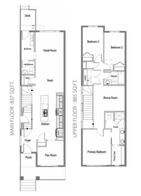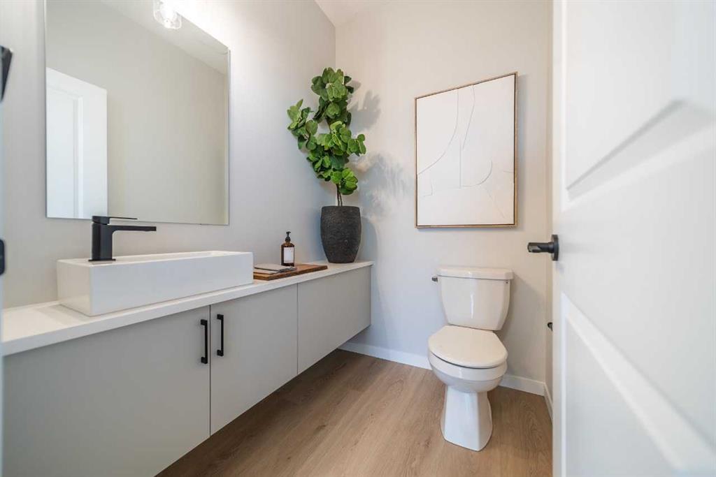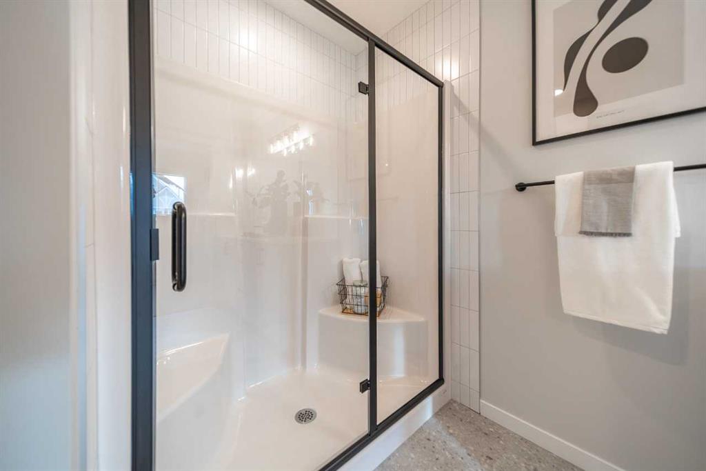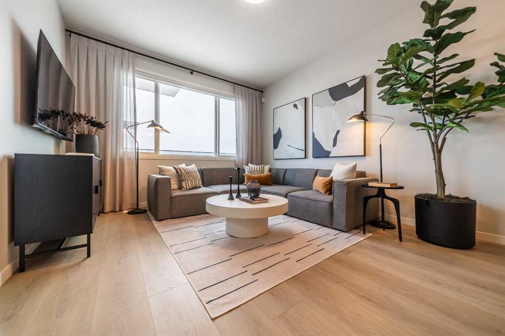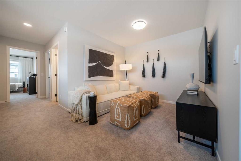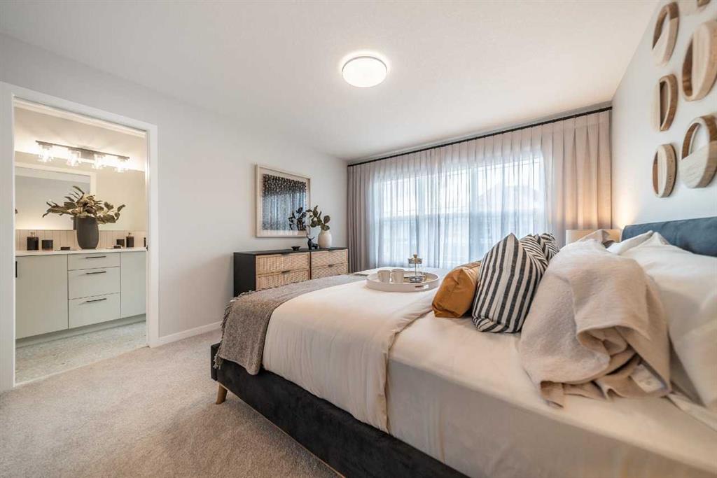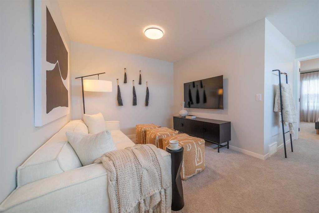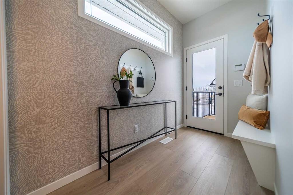 Tentative possession of July 2026! Bright & open semi-detached home by Cedarglen Homes. 1,722 sq. Ft of living space, including 3 bedrooms, 2.5 bathrooms, main floor flex room, bonus room, upper laundry, & mud room w/ bench & coat hooks. Kitchen features quartz countertops, full height cabinets & tile backsplash, chimney hood fan built-in microwave layout, gas line, & waterline. Full height tile in showers. Side entrance, rough ins, 2 windows, & 8'9" ceiling height in basement. James Hardie fiber cement paneling, full width concrete front veranda, wood deck w/ BBQ line, & 20'x20' gravel parking pad. Energy efficient triple pane windows, tankless water heater, & R-50 attic insulation. Photos are representative.
