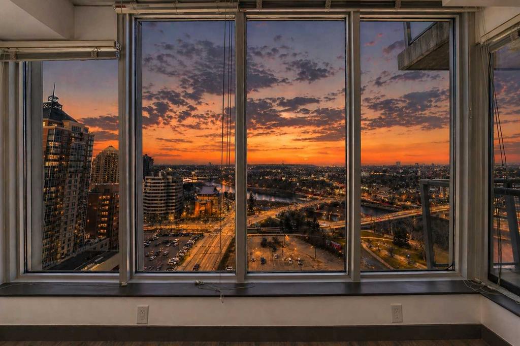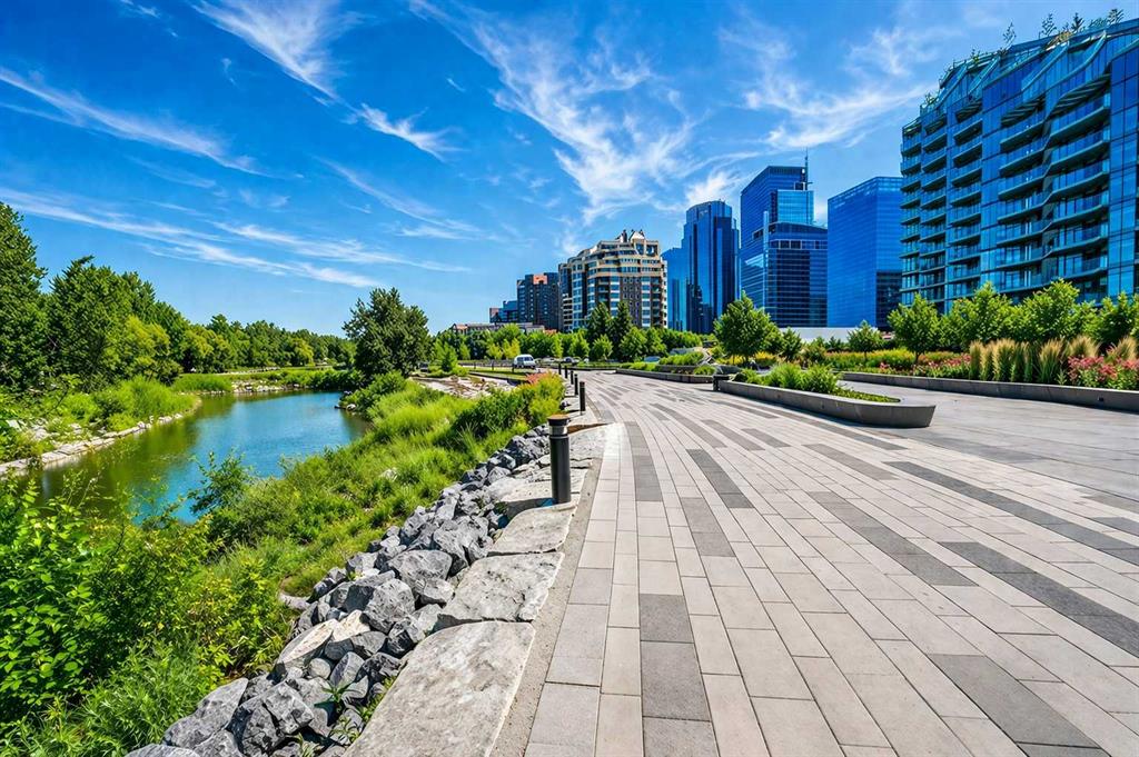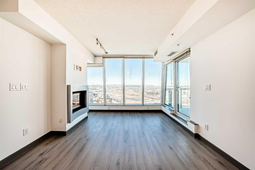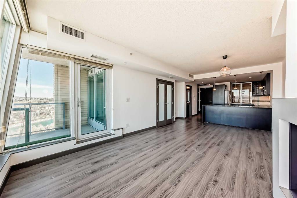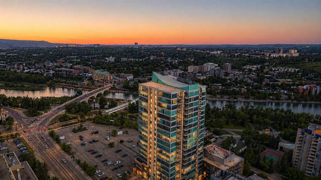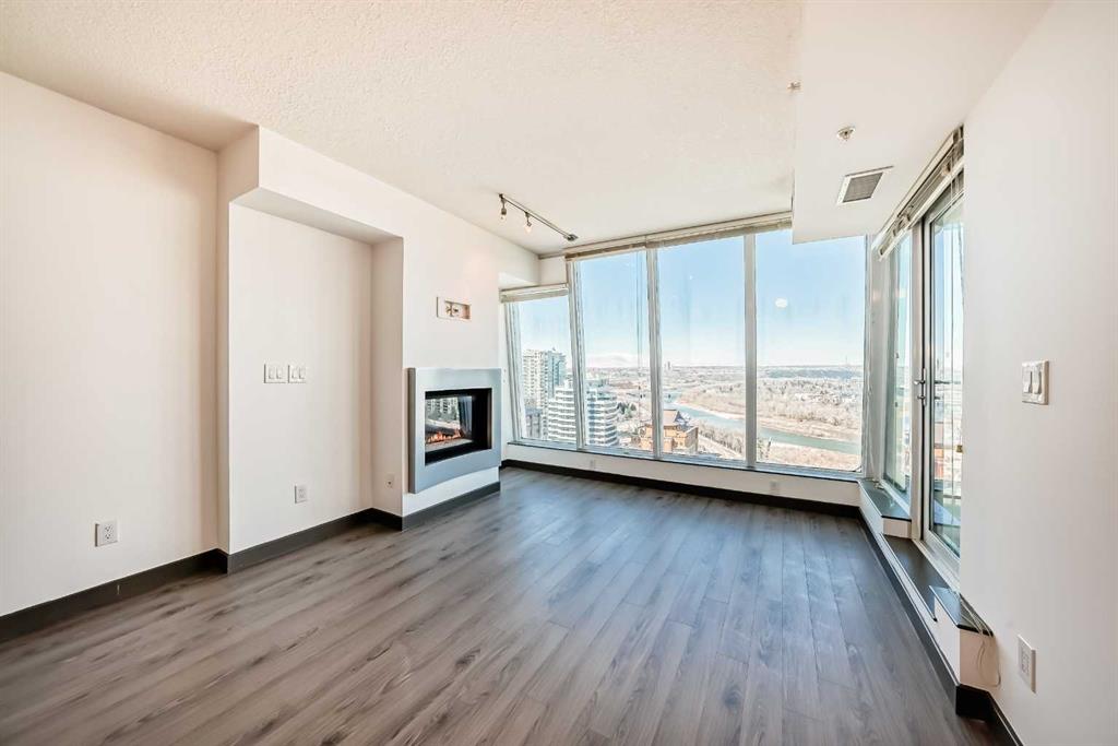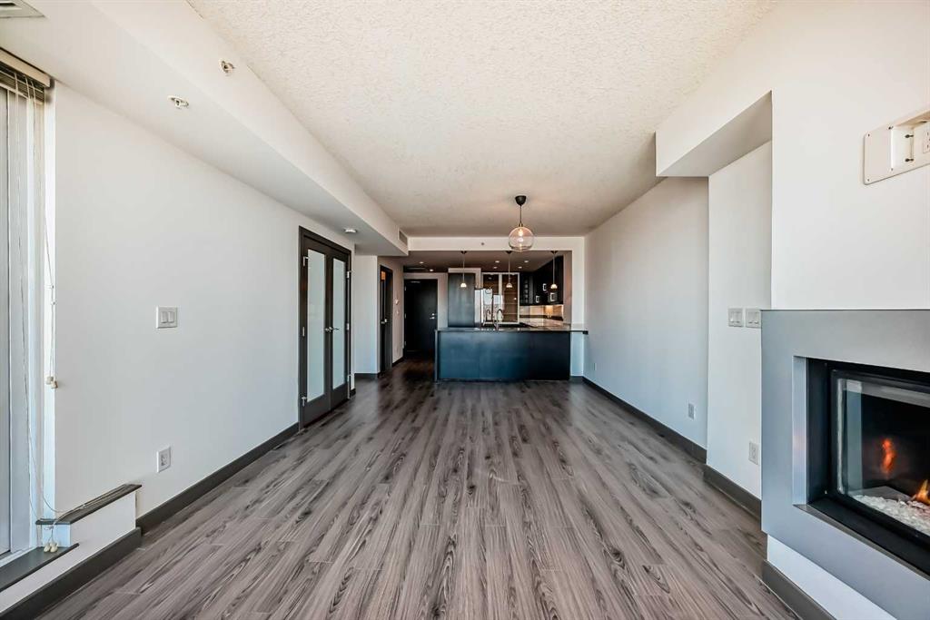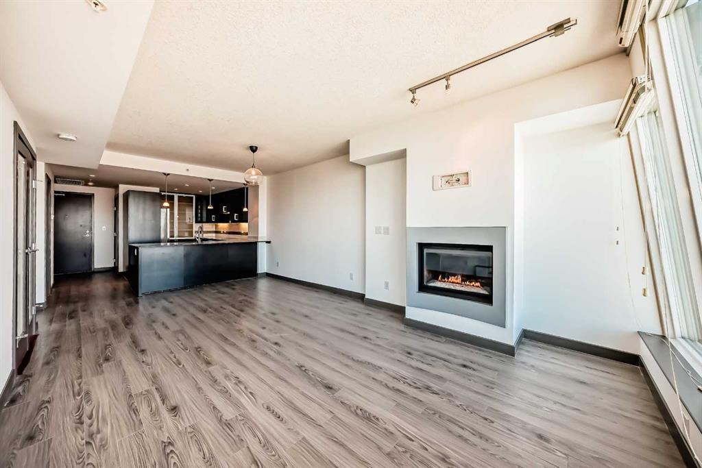 Welcome to Solaire in Eau Claire. Set on the 19th floor, this 1 bedroom, 1 bathroom home offers a bright, comfortable space with wide open west-facing views that stretch to the mountains and over the Bow River. Floor-to-ceiling windows bring in plenty of natural light and make the most of the view, while the open layout keeps the kitchen, dining, and living areas connected and easy to enjoy. Whether you’re hosting a few people or having a quiet night in, the space feels natural and functional. The kitchen is clean and modern, finished with quality cabinetry, streamlined surfaces, and Bosch appliances that are built to perform without overcomplicating things. The living area features a gas fireplace that adds warmth and makes the space feel inviting year-round. The bedroom is set behind glass French doors, giving it a sense of openness while still offering privacy. A walk-through closet leads into a well-designed full bathroom, creating a simple, practical flow. Up on the 19th floor, the views and natural light are a standout—especially in the evening when the sunsets roll in. This home also includes underground parking, adding everyday convenience in a central location. Living here means you’re steps from the Bow River pathways, green spaces, cafés, and restaurants that make Eau Claire such a great place to be. Clean design, a solid layout, and a view you’ll appreciate every day.
