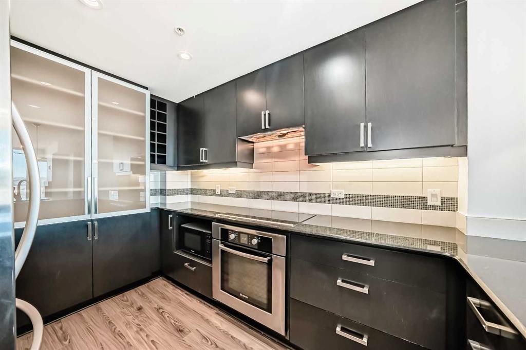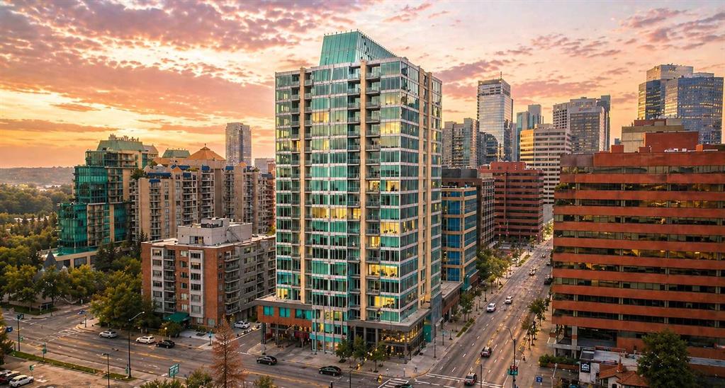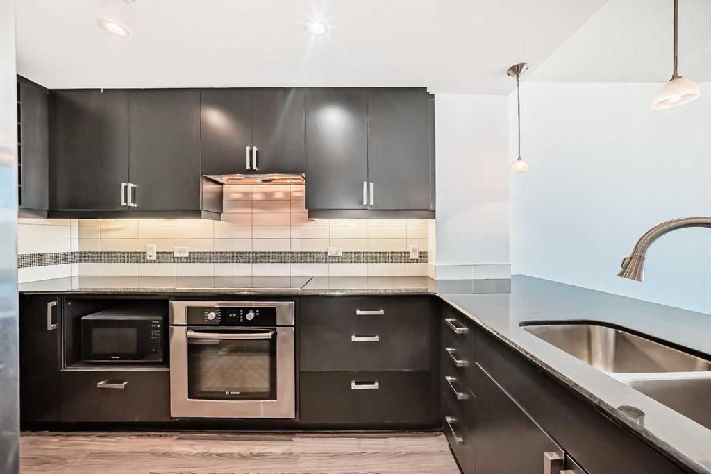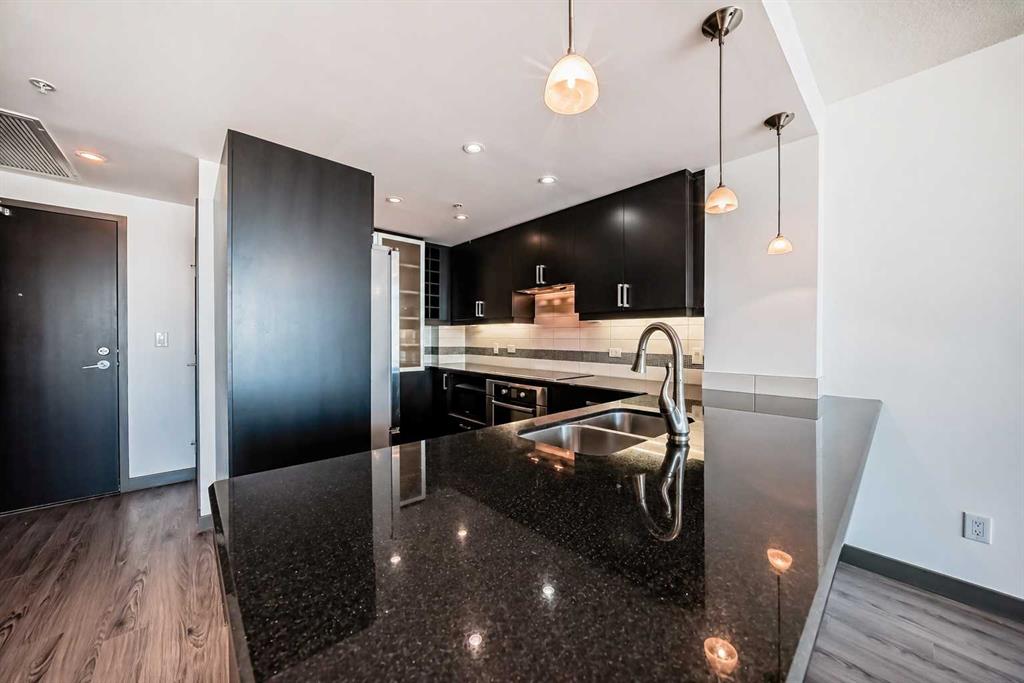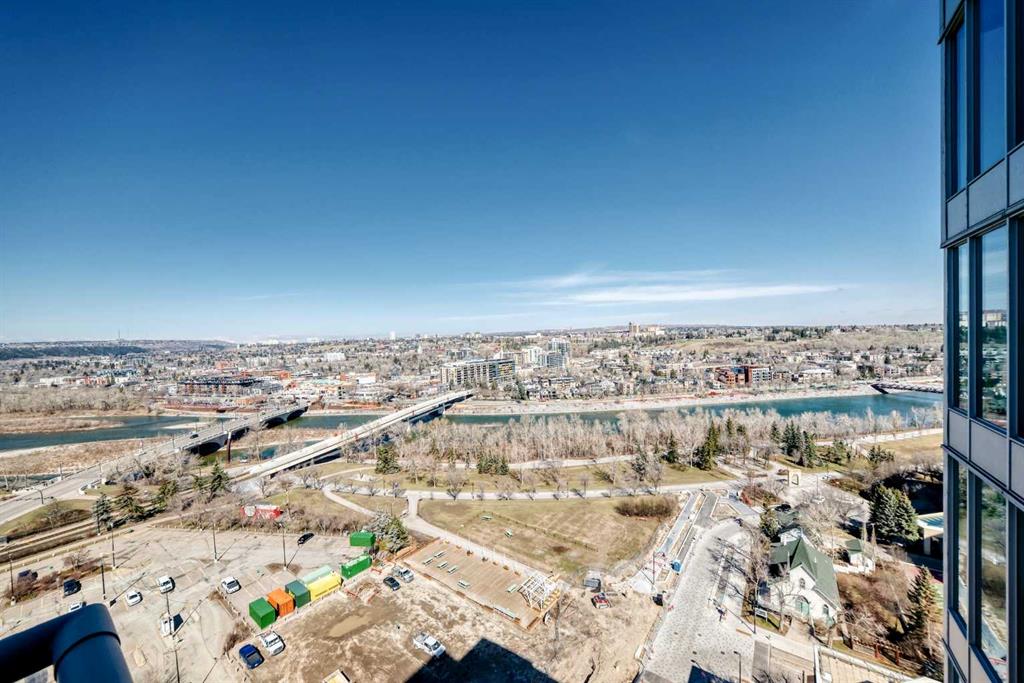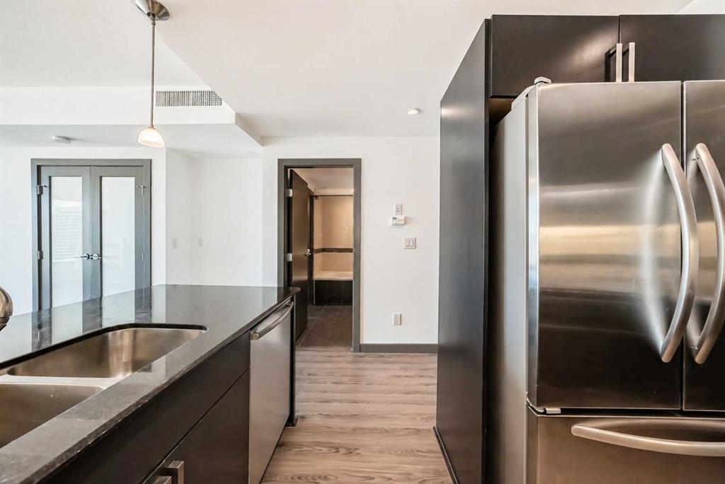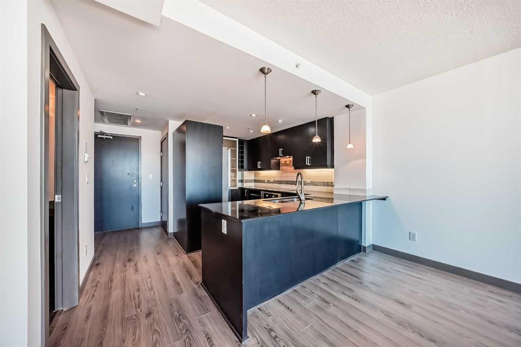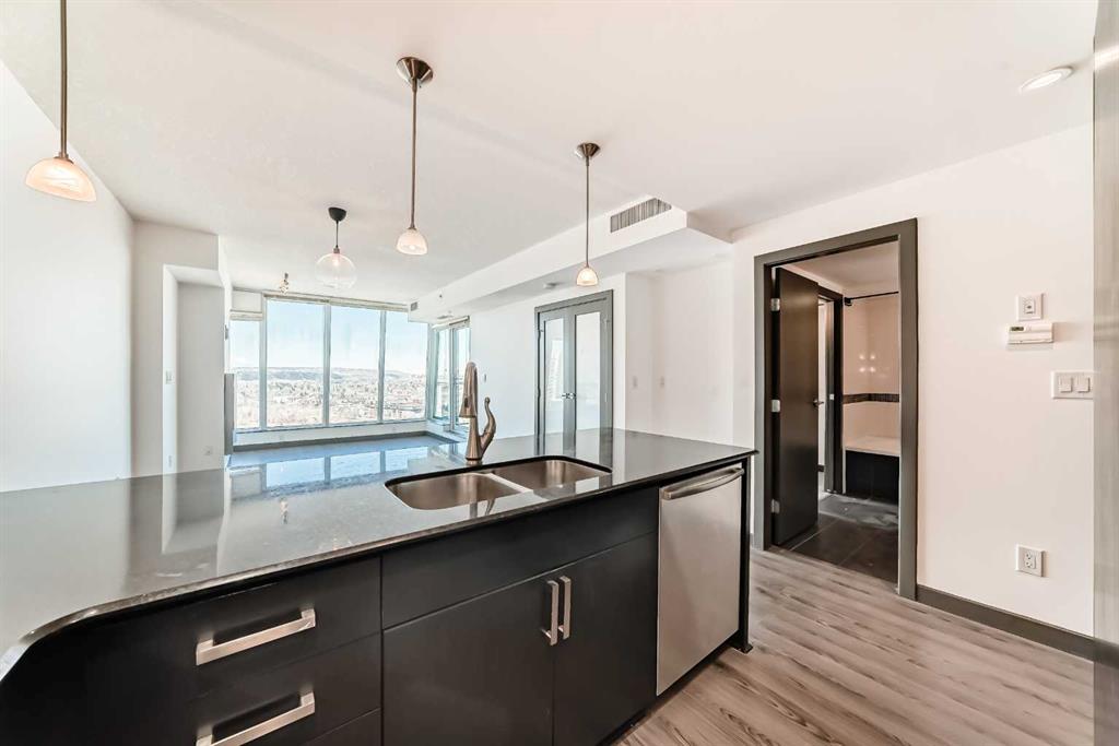 Welcome to Solaire in Eau Claire. Set on the 19th floor, this 1 bedroom, 1 bathroom home offers a bright, comfortable space with wide open west-facing views that stretch to the mountains and over the Bow River. Floor-to-ceiling windows bring in plenty of natural light and make the most of the view, while the open layout keeps the kitchen, dining, and living areas connected and easy to enjoy. Whether you’re hosting a few people or having a quiet night in, the space feels natural and functional. The kitchen is clean and modern, finished with quality cabinetry, streamlined surfaces, and Bosch appliances that are built to perform without overcomplicating things. The living area features a gas fireplace that adds warmth and makes the space feel inviting year-round. The bedroom is set behind glass French doors, giving it a sense of openness while still offering privacy. A walk-through closet leads into a well-designed full bathroom, creating a simple, practical flow. Up on the 19th floor, the views and natural light are a standout—especially in the evening when the sunsets roll in. This home also includes underground parking, adding everyday convenience in a central location. Living here means you’re steps from the Bow River pathways, green spaces, cafés, and restaurants that make Eau Claire such a great place to be. Clean design, a solid layout, and a view you’ll appreciate every day.